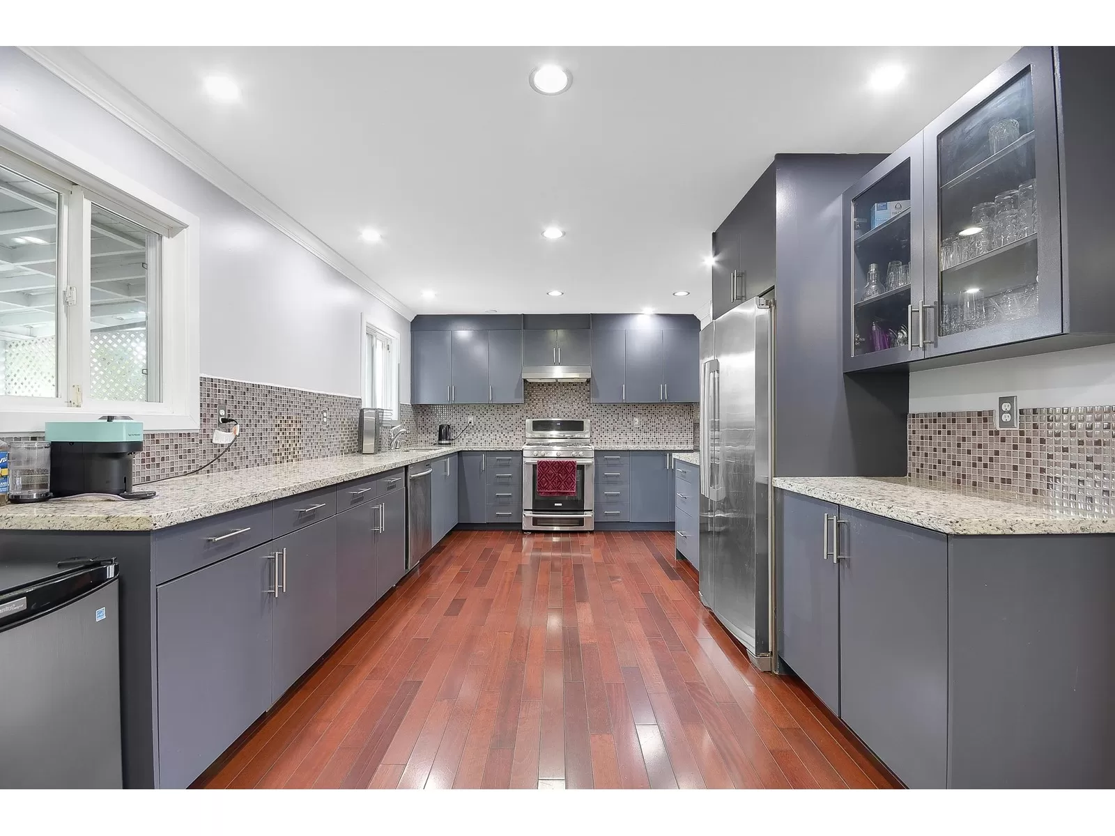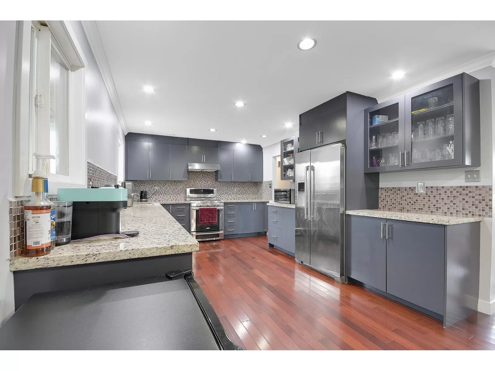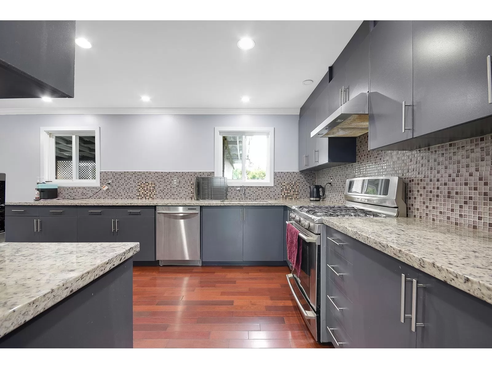 Great home in SUNSHINE HILLS area. Open concept Huge living room, great for entertaining! Home Featuring 5 bdrms & 3 bathrms. Gorgeous kitchen with granite countertops, gas stove and newer stainless steel appliances. newer roof, windows, Engineered wide plank hardwood floors,new hot water tank, Private fenced backyard and covered back deck. You'll enjoy fruit trees. 3 bdrms up with 1.5 bath and 2 bedroom fully finished suite with separate entrance. Option to keep one room for upstairs use. Basement has an extra 7x7 room that can be useful for kids play room. Must see!!! (id:27476)