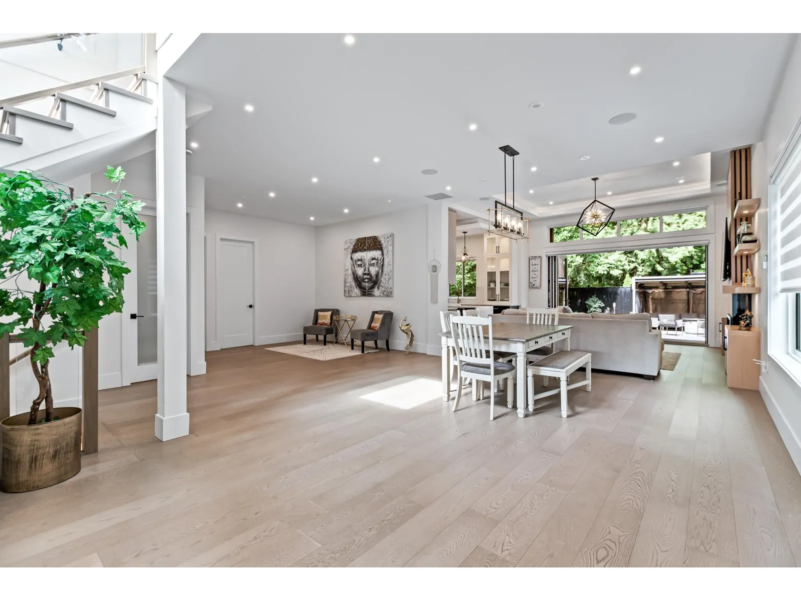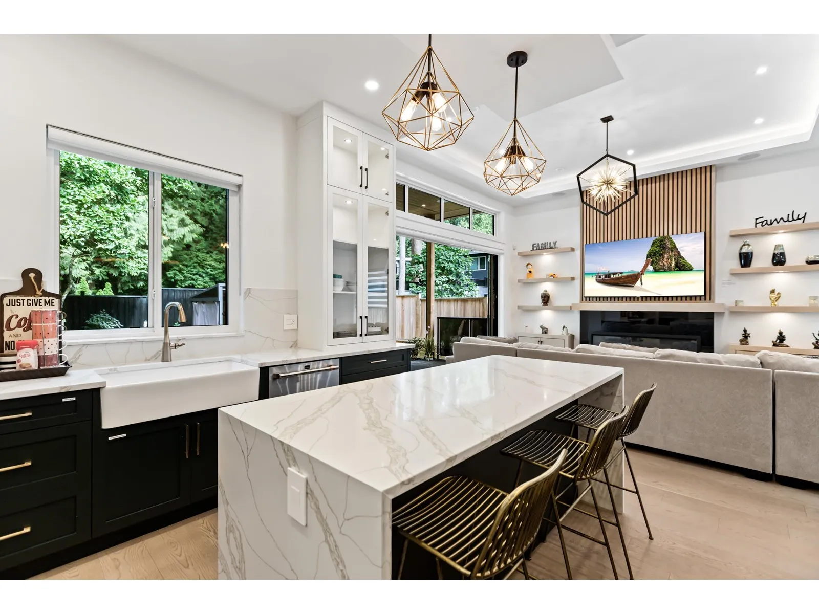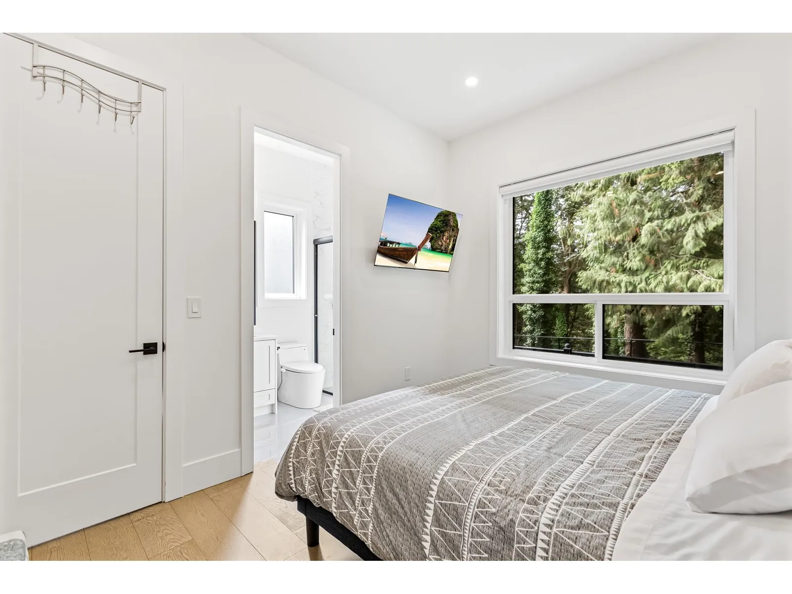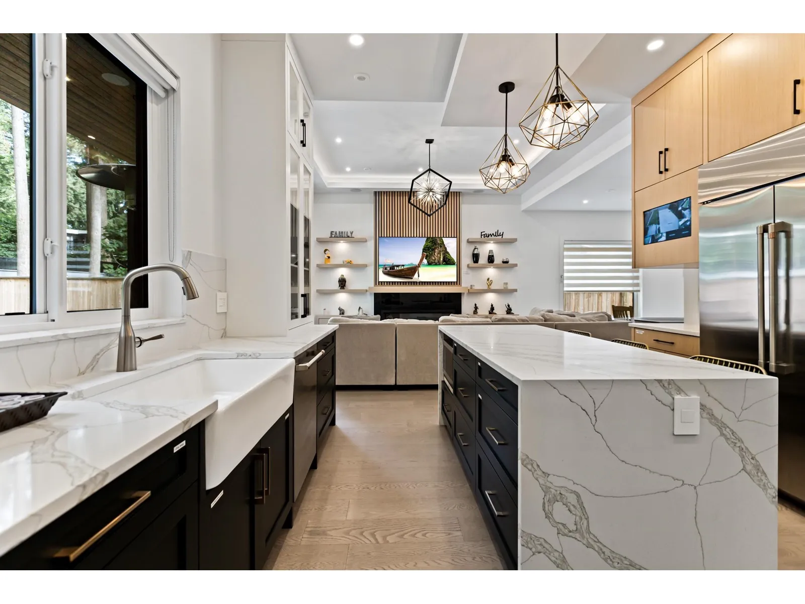 This expansive luxury residence offers over 4,600 sqft of elegant living space, ideally located on a peaceful street with the serenity of a lush forest as your backyard. Start each day surrounded by nature's beauty, while enjoying the convenience of nearby amenities just minutes away. The main level is thoughtfully designed with functionality and comfort in mind, featuring a spacious master bedroom with en-suite, a dedicated home office, and a fully-equipped work kitchen. Upstairs, the primary suite is a private retreat complete with a built-in vanity, a generous walk-in closet, and a spa-like en-suite bathroom that invites relaxation. The lower level is perfect for entertaining or unwinding, boasting a large recreation room with a wet bar and a dedicated theatre room. (id:27476)