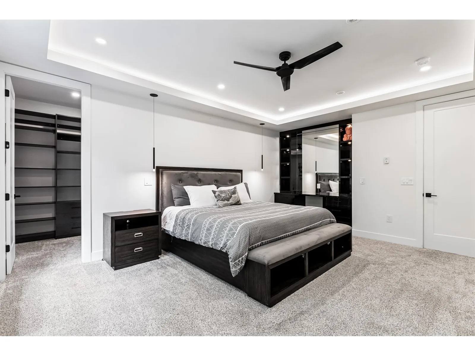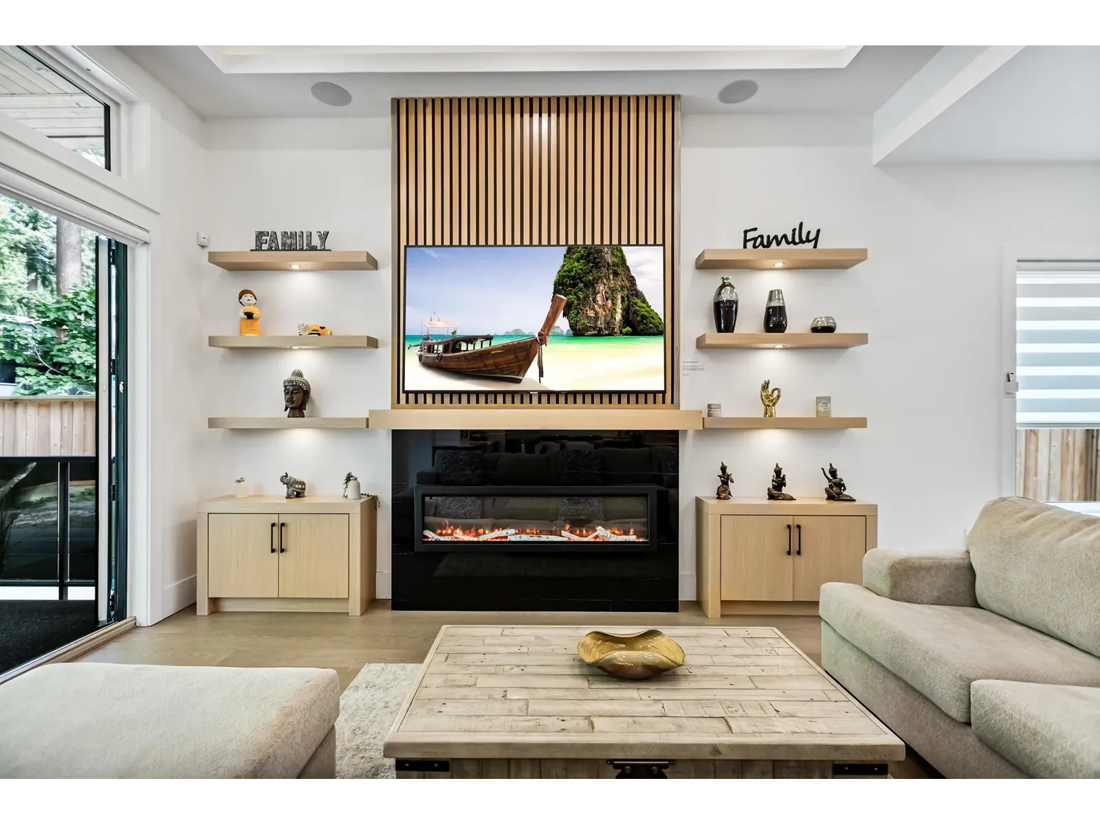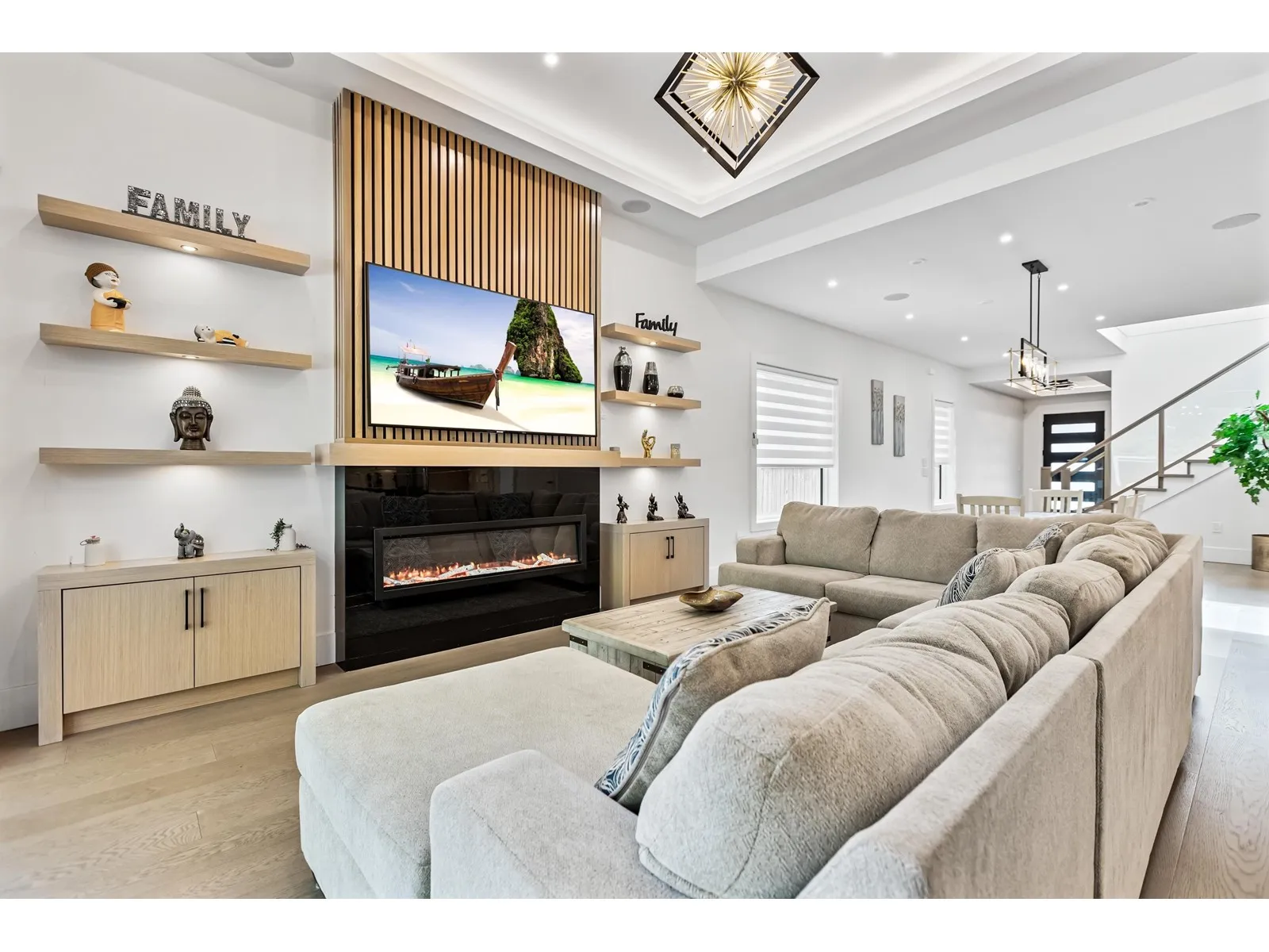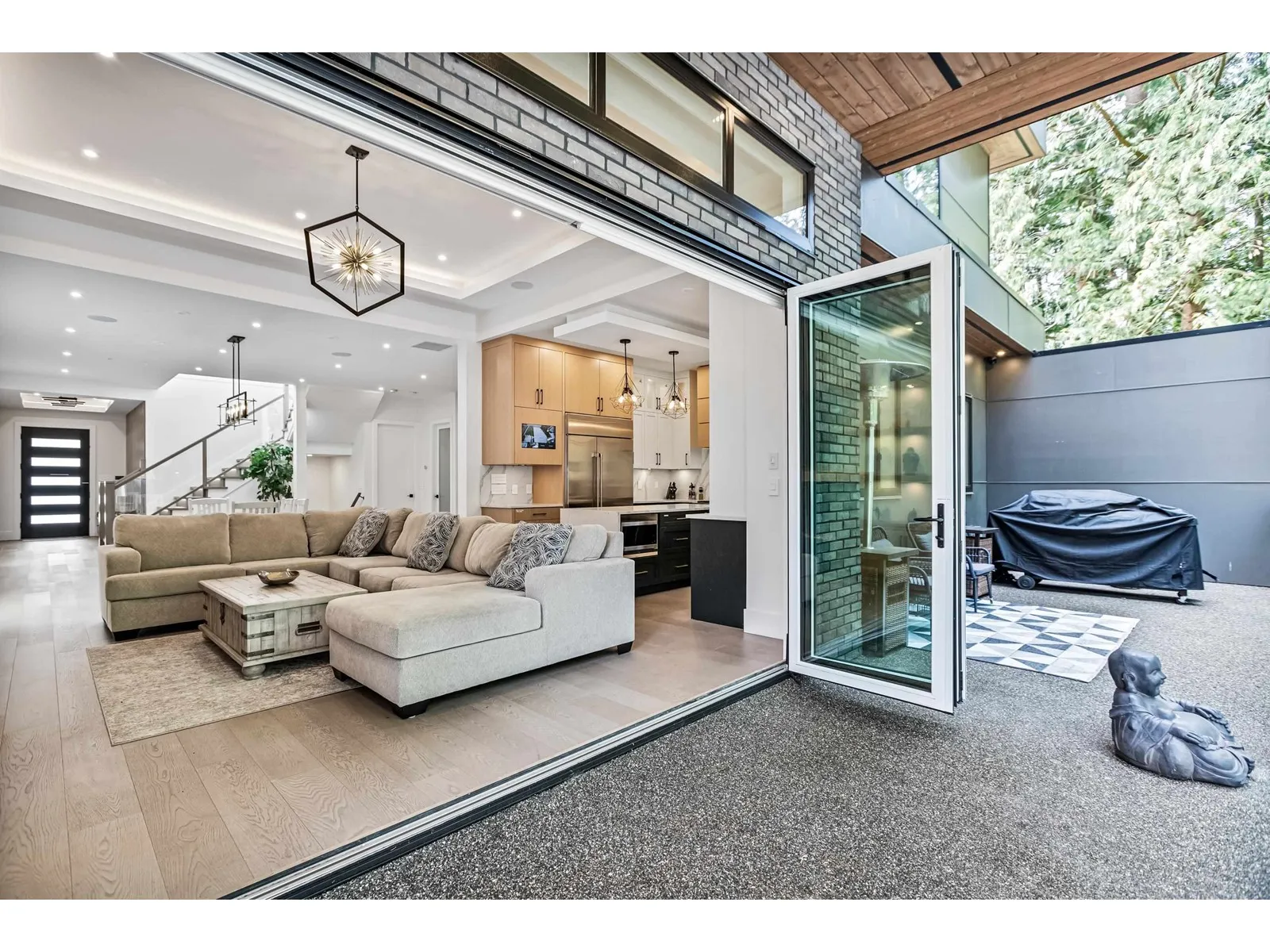 This expansive luxury residence offers over 4,600 sqft of elegant living space, ideally located on a peaceful street with the serenity of a lush forest as your backyard. Start each day surrounded by nature's beauty, while enjoying the convenience of nearby amenities just minutes away. The main level is thoughtfully designed with functionality and comfort in mind, featuring a spacious master bedroom with en-suite, a dedicated home office, and a fully-equipped work kitchen. Upstairs, the primary suite is a private retreat complete with a built-in vanity, a generous walk-in closet, and a spa-like en-suite bathroom that invites relaxation. The lower level is perfect for entertaining or unwinding, boasting a large recreation room with a wet bar and a dedicated theatre room. (id:27476)