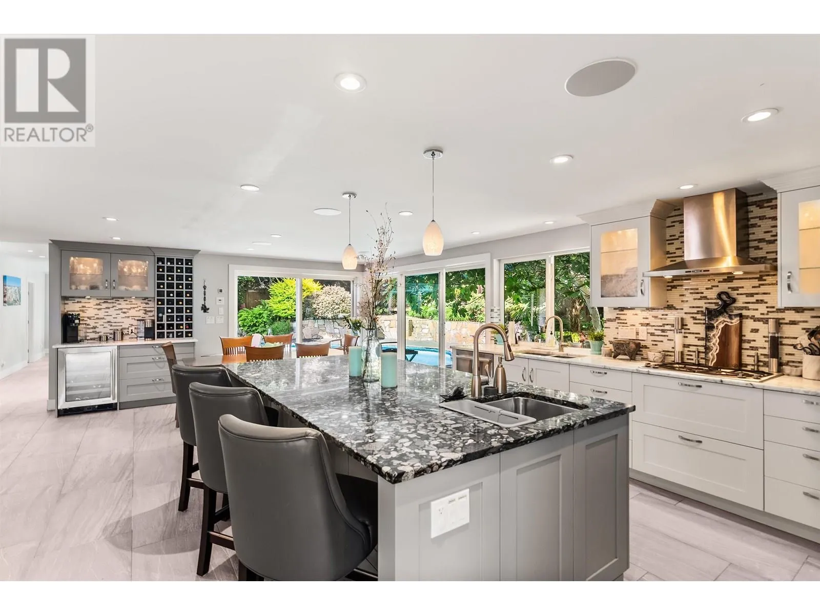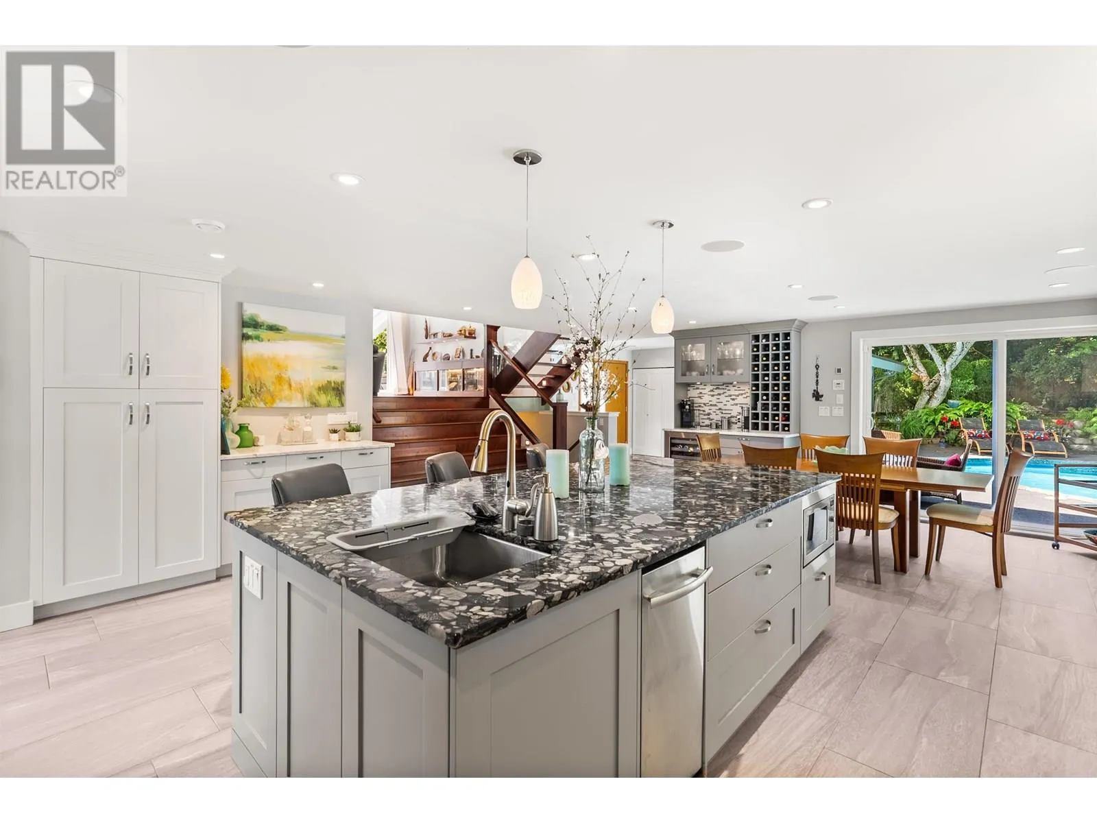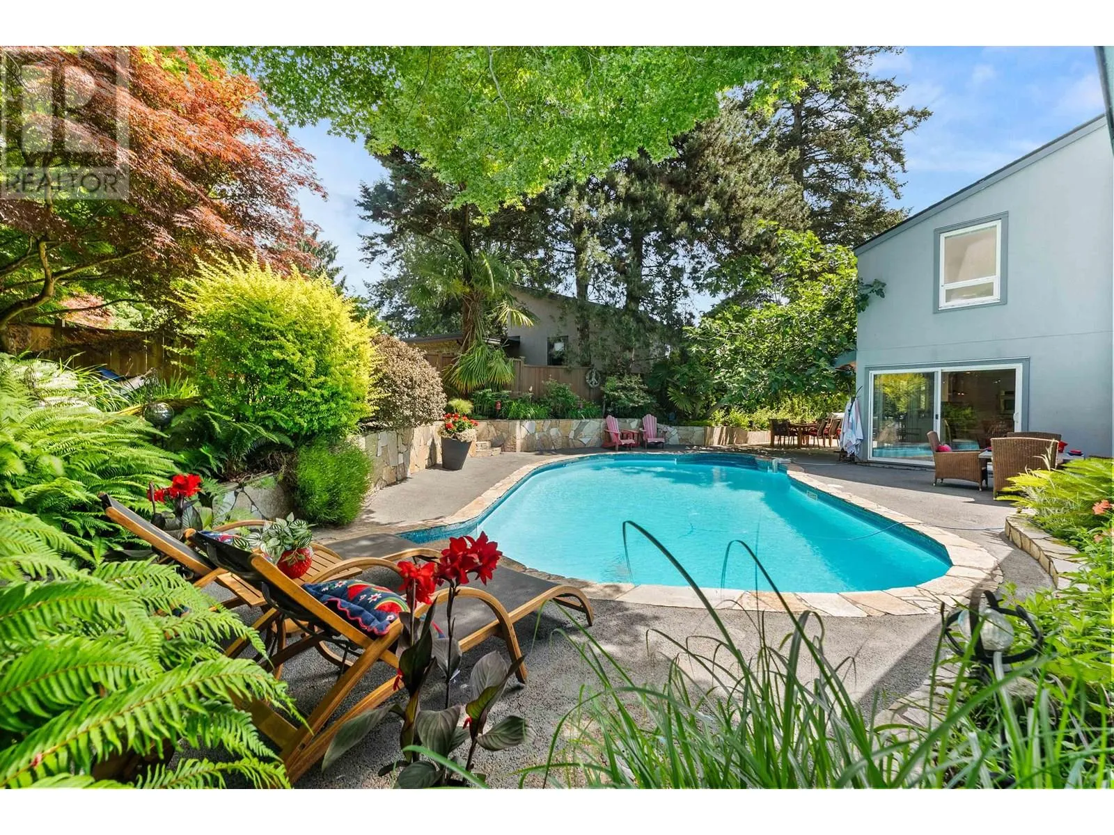 Experience award nominated luxury in this stunning 2,765sqft home, situated on a 10,000+sqft corner lot! Masterfully renovated by Sarah Gallop Design and recognized with two Georgie Award nominations this home is designed for entertainers. The open concept layout features a show-stopping kitchen with JennAir appliances, double ovens, Statuario marble counters and a bold Brazilian black matrix island. The living room stuns with vaulted ceiling, Sapele wood cabinetry, maple h/w floors and gas fireplaces. Enjoy Control4 automation throughout, lights, blinds, TVs and music at your command. Relax and enjoy sunsets on the west-facing sundeck with views of the Georgia Strait, or in your private backyard oasis with a heated pool, hot tub and lush landscaping. A true gem, come and see it today! (id:27476)