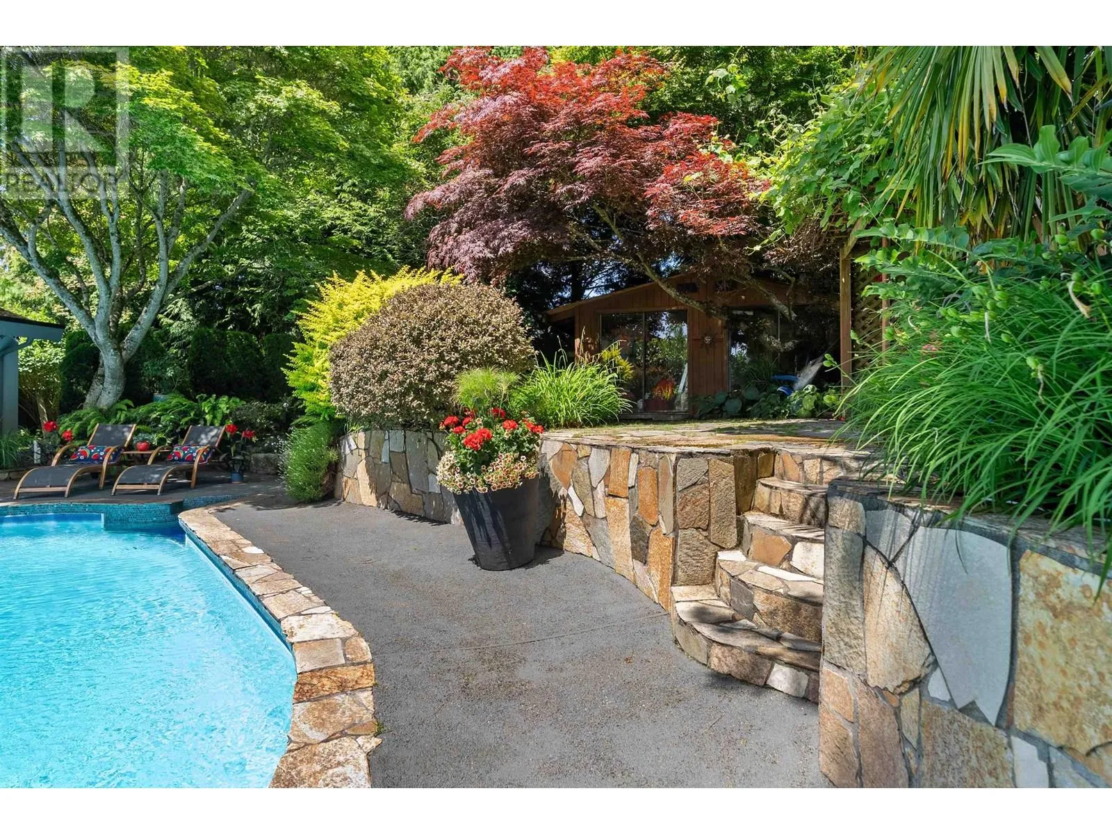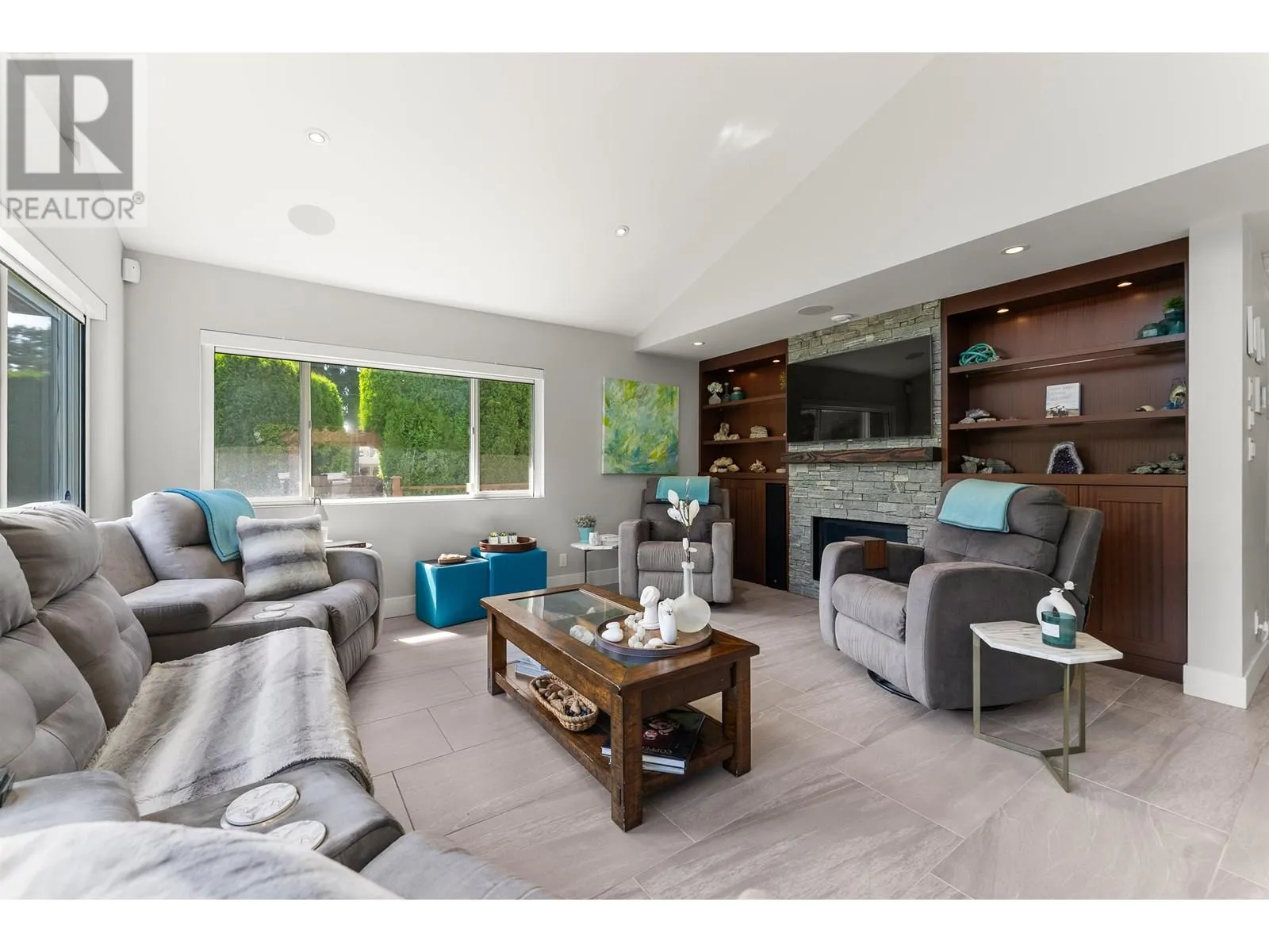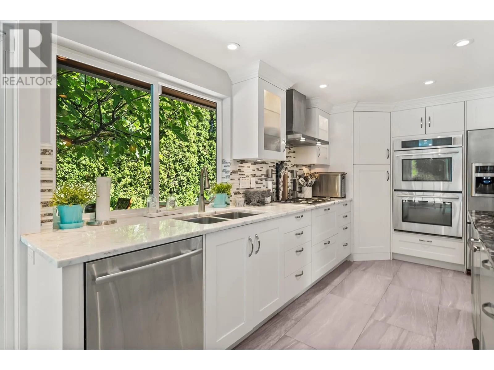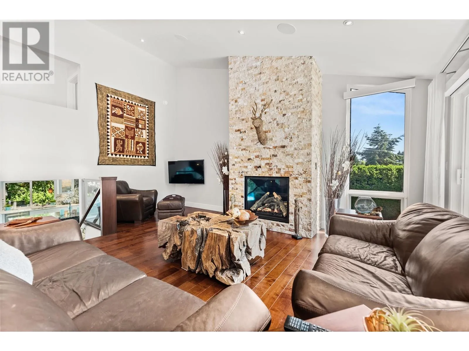 Experience award nominated luxury in this stunning 2,765sqft home, situated on a 10,000+sqft corner lot! Masterfully renovated by Sarah Gallop Design and recognized with two Georgie Award nominations this home is designed for entertainers. The open concept layout features a show-stopping kitchen with JennAir appliances, double ovens, Statuario marble counters and a bold Brazilian black matrix island. The living room stuns with vaulted ceiling, Sapele wood cabinetry, maple h/w floors and gas fireplaces. Enjoy Control4 automation throughout, lights, blinds, TVs and music at your command. Relax and enjoy sunsets on the west-facing sundeck with views of the Georgia Strait, or in your private backyard oasis with a heated pool, hot tub and lush landscaping. A true gem, come and see it today! (id:27476)
