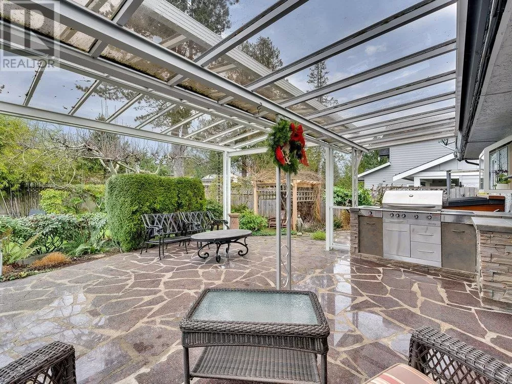 Beautiful updated rancher in Pebble Hill, in Tsawwassen, this home offers the perfect blend of comfort & outdoor living. Situated on an expansive 8,900 square ft lot with mature privacy hedging. The meticulously landscaped garden is a private oasis featuring multiple sitting areas, pergola & underground sprinkler system.The rear outdoor space is an entertainer's dream, complete w glass-covered patio, pergola, gazebo, outdoor kitchen & ample space for hosting family & friends.Step inside to a 3 bed home with an open concept living/dining & updated kitchen w thoughtful design. Hardwood flooring, cozy gas fireplace & skylights create a bright & inviting atmosphere. Double garage+ multiple storage areas!Steps from Diefenbaker Park!! (id:27476)