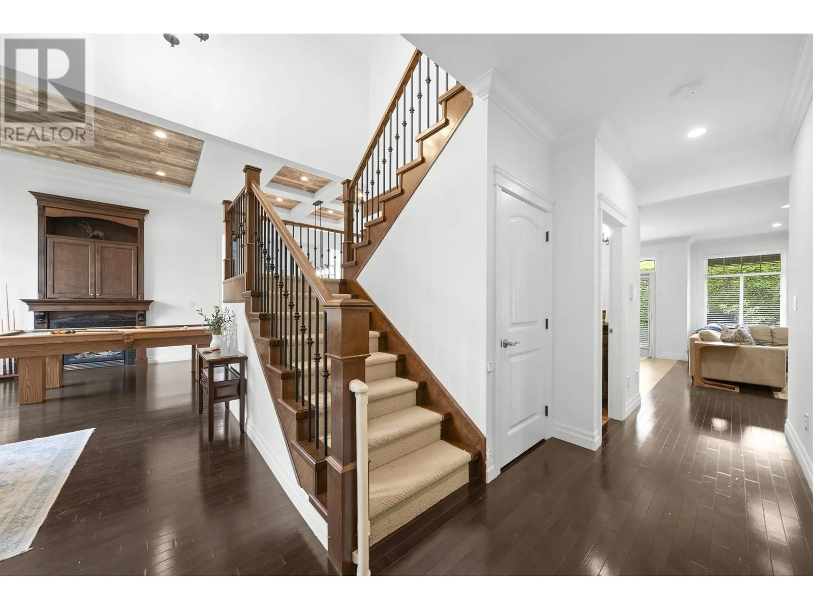 Welcome to South Hampton Estates, Where Timeless Luxury Meets an Exceptional Lifestyle in one of Ladner´s most prestigious golf course communities. This executive home features soaring 18' vaulted ceilings, striking coffered details, radiant heating, rich hardwood floors and abundant natural light throughout. The gourmet kitchen offers solid wood cabinetry, granite countertops, high-end branded appliances including full size fridge and freezer plus a spacious walk-in pantry. Upstairs includes 4 bedrooms, 2 with private ensuites and 2 sharing a Jack & Jill bath. Step outside to a private oasis with mature hedges for the ultimate privacy, a covered patio, double-sided fireplace, and hot tub, perfect for year round enjoyment. Nature trails, golf and the marina are just steps away. With a 2 car garage + extra parking, tile concrete roof, convenient access to Admiral Blvd and proximity to CEFA/Nielsen Grove Elementary, this is where luxury and lifestyle come together. (id:27476)