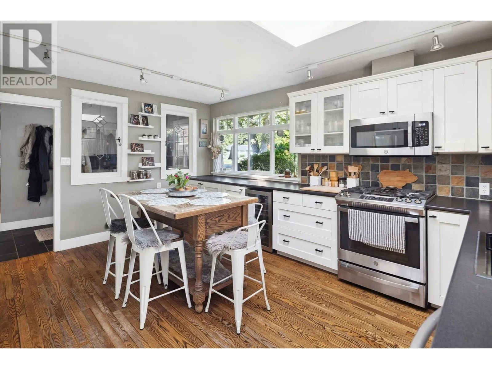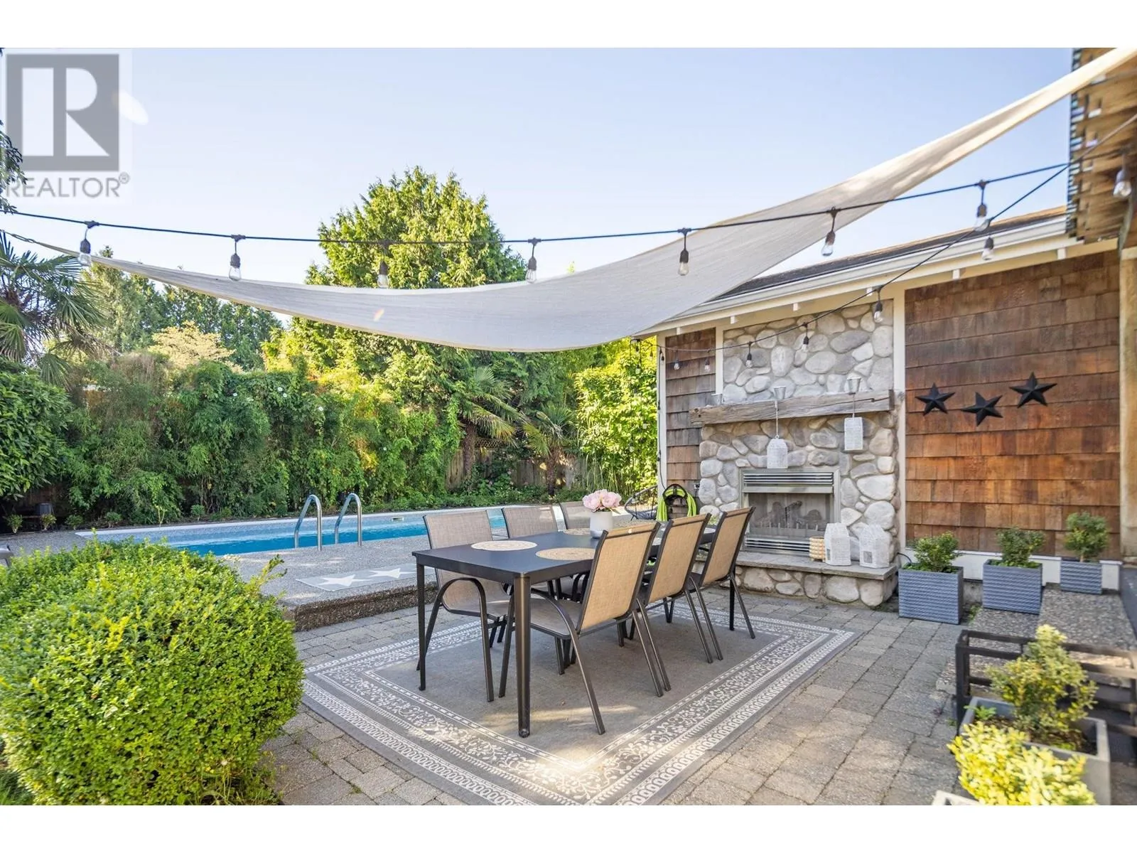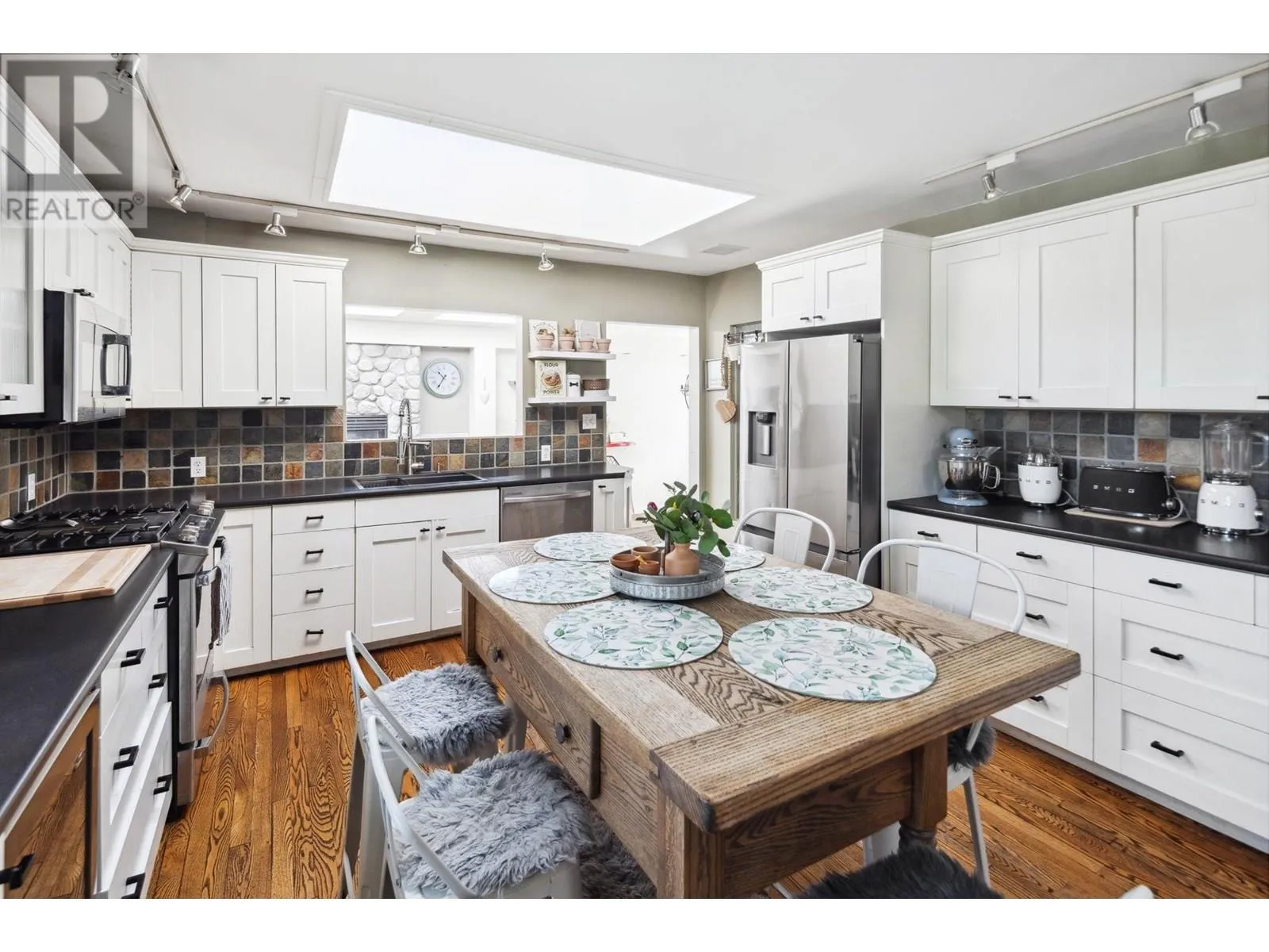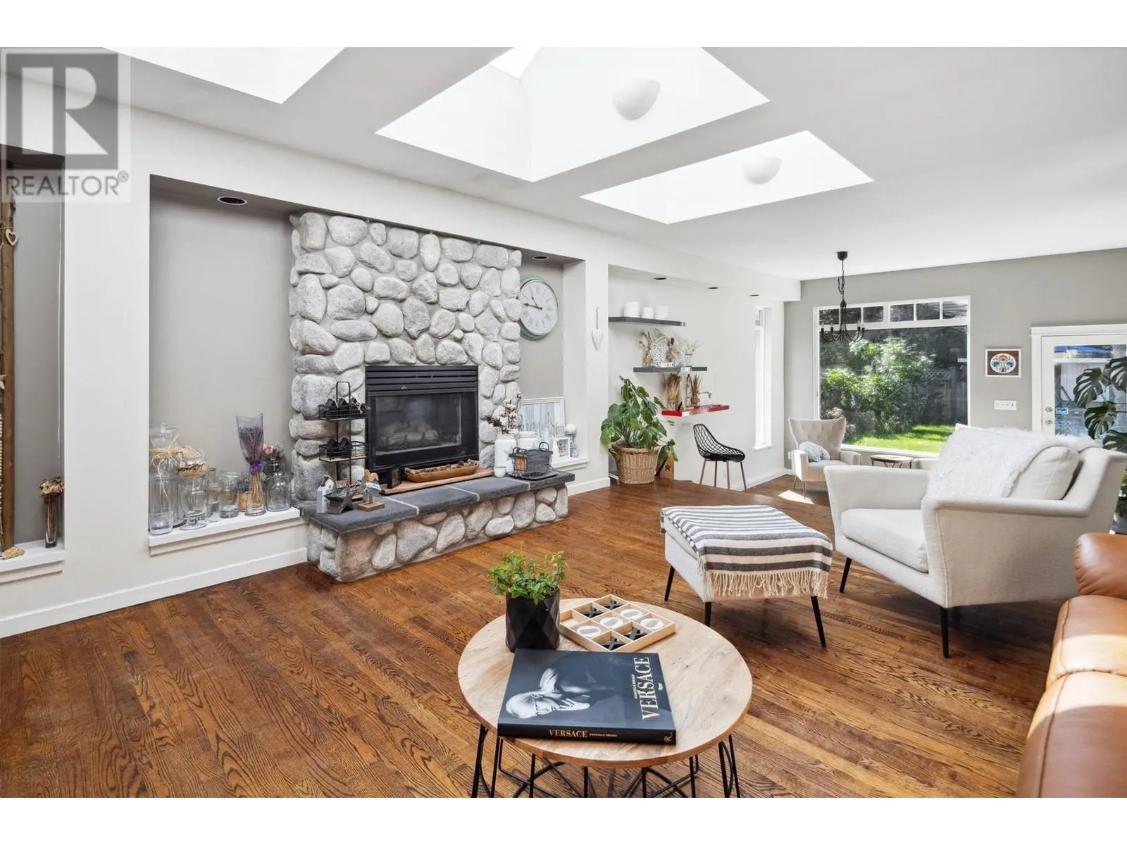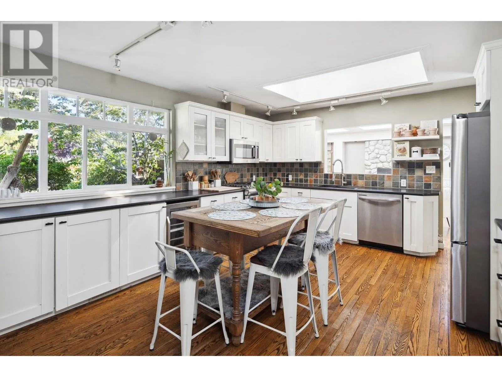 Exceptionally renovated 2,278 sq.ft. 4 bedroom rancher situated on an almost 9,000 sq.ft. flat, private south lot with almost 2,400 sq.ft. of additional outdoor patios/decks. This exquisite home has an entertainer's delight floorplan; the kitchen with white shaker style cabinets, is located at the front and overlooks the living room with a stately fireplace and skylights flooding the home with natural light. The sunken family room offers French doors leading to the patio. The bedrooms are quietly situated in the 'west wing' of this home. Stunning oak & slate floors throughout and so much more! A true Tsawwassen classic! (id:27476)