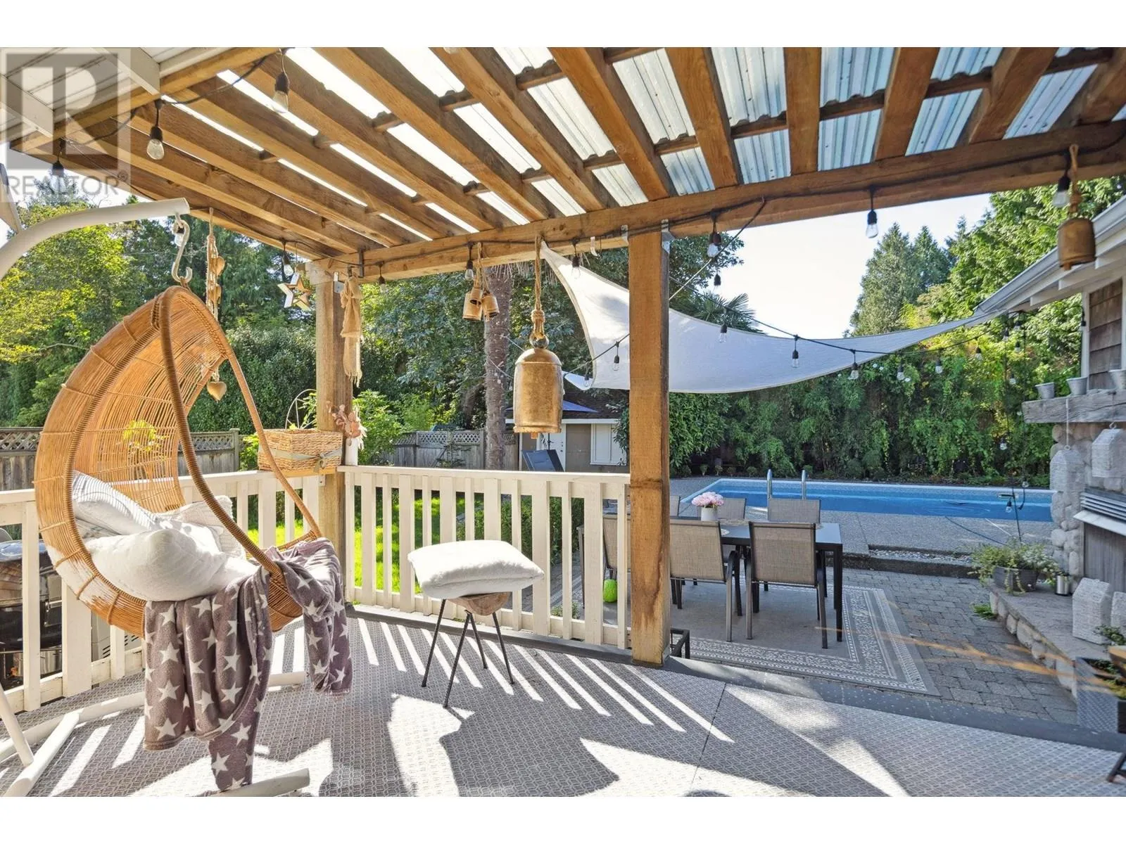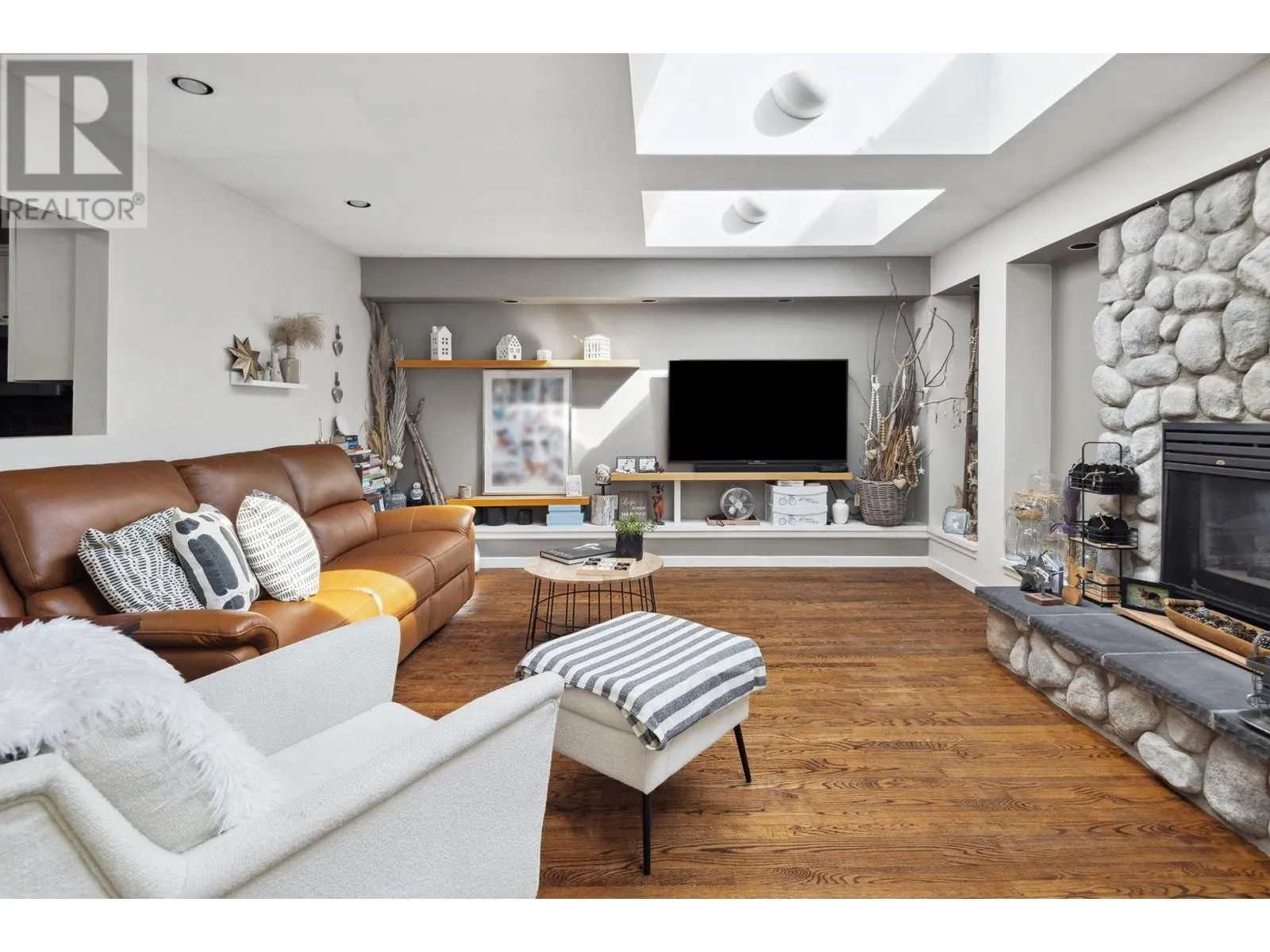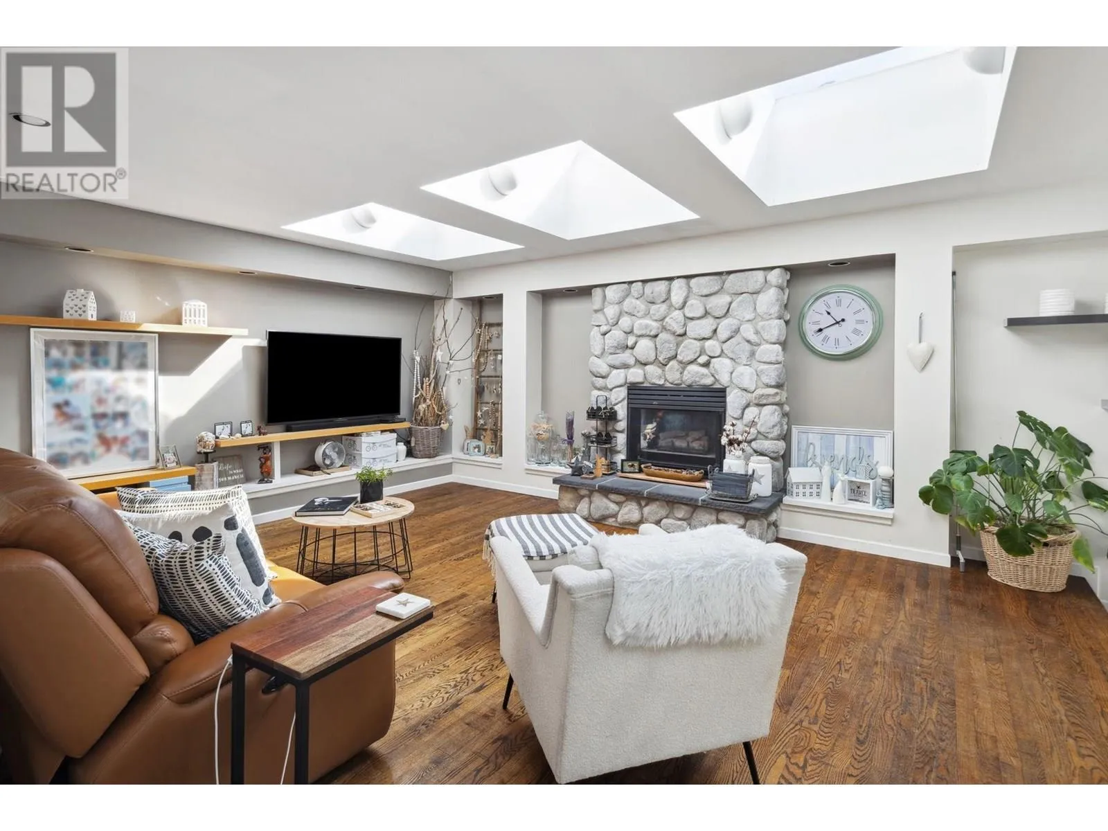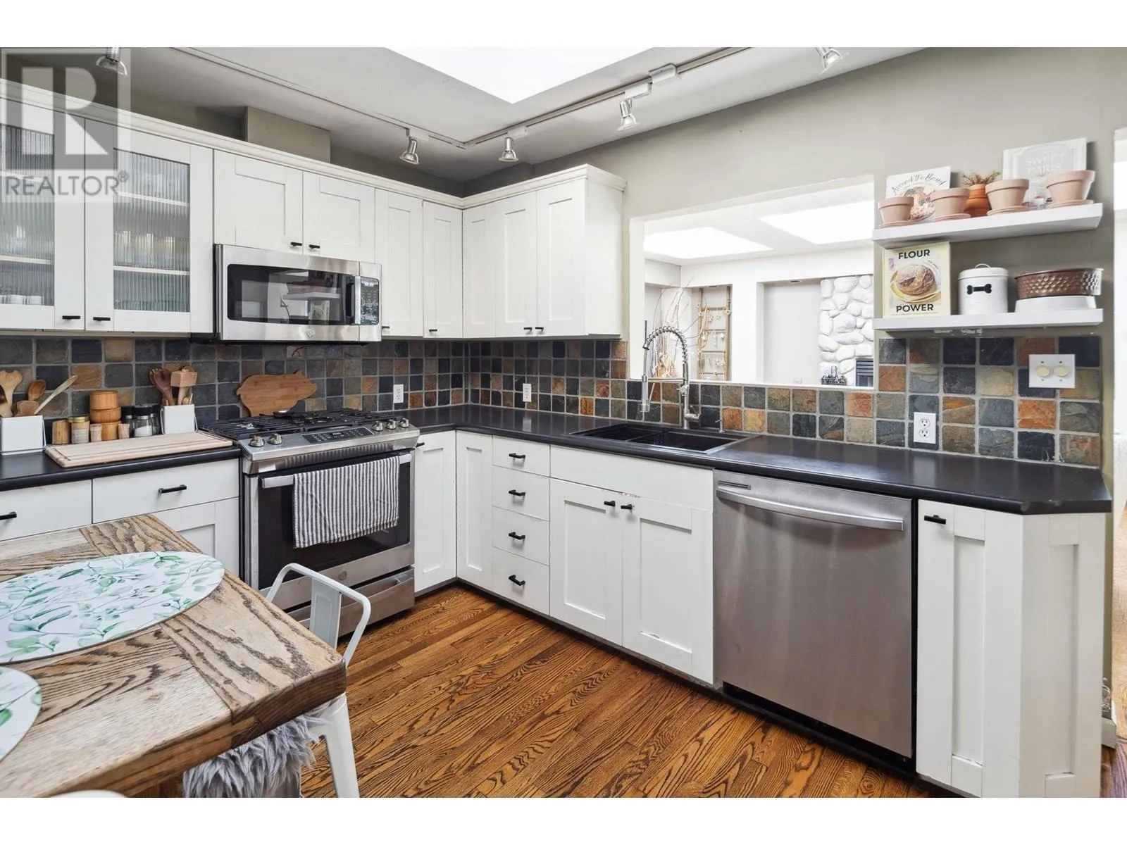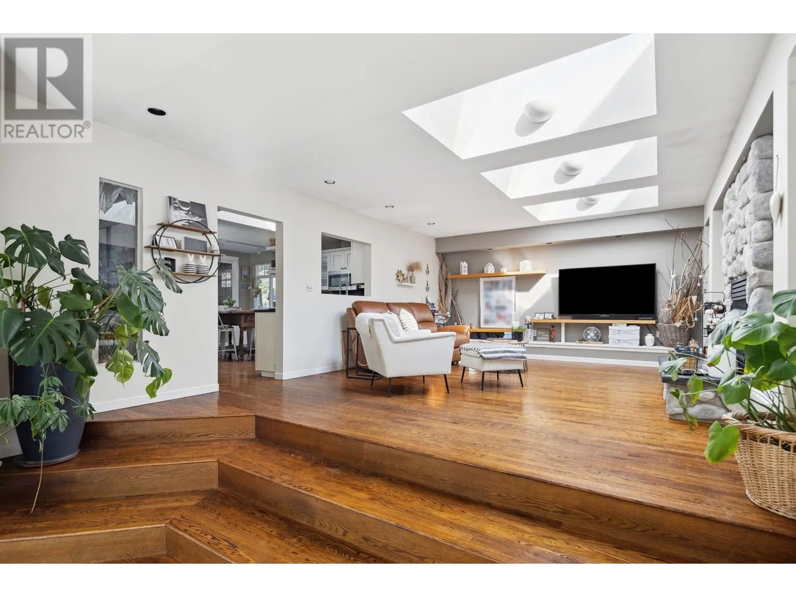 Exceptionally renovated 2,278 sq.ft. 4 bedroom rancher situated on an almost 9,000 sq.ft. flat, private south lot with almost 2,400 sq.ft. of additional outdoor patios/decks. This exquisite home has an entertainer's delight floorplan; the kitchen with white shaker style cabinets, is located at the front and overlooks the living room with a stately fireplace and skylights flooding the home with natural light. The sunken family room offers French doors leading to the patio. The bedrooms are quietly situated in the 'west wing' of this home. Stunning oak & slate floors throughout and so much more! A true Tsawwassen classic! (id:27476)