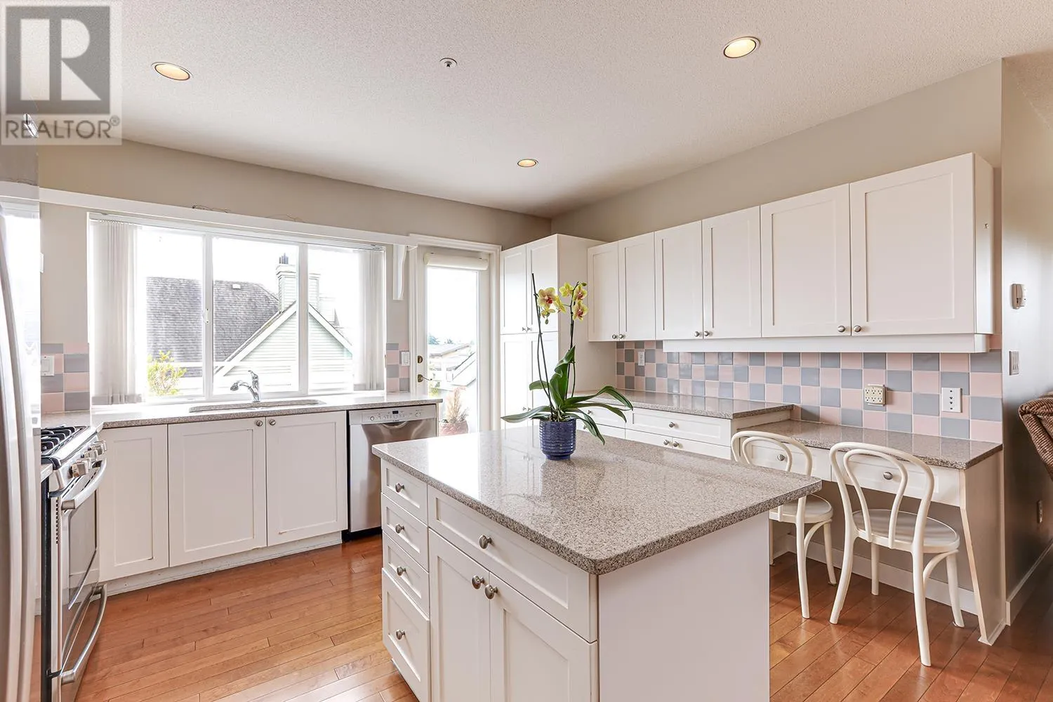 Spacious 1,948 sq.ft. penthouse in the prestigious Shaugnessy -Carl Jensen building. This home offers a luxurious primary suite with a spa-inspired ensuite, a walk-in closet large enough to feel like its own room, and a private deck to enjoy your morning coffee. The generous second bedroom is ideal for guests or a home office. A bright, open kitchen flows into the family room with vaulted ceilings and access to a second balcony. Hardwood floors and expansive rooms easily accommodate house-sized furniture. Perfect for those seeking a low-maintenance lifestyle with no outdoor upkeep. All this in a highly walkable, central location close to shops, restaurants, and everyday amenities. 45yr Roof (2014) Roof and new domestic PEX piping 2017. (id:27476)
