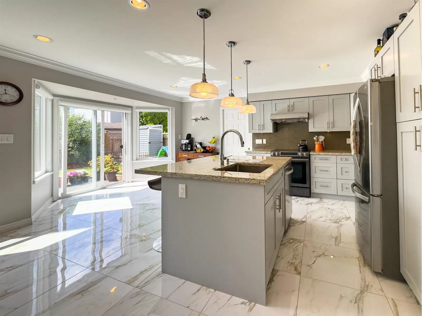 Don't miss this incredible opportunity to own a beautifully renovated home in a highly desirable and quiet neighborhood! This meticulously maintained lovely 3-bed, 3-bath residence sits on a north-facing with plenty of parking. Step into the grand foyer and be welcomed by a spacious living room featuring a cozy gas fireplace. The updated kitchen includes new S/S appliances and opens up to a generous dining area and a bright family room overlooking the private backyard patio. Upstairs offers 3 generously sized bedrooms, including a primary suite with luxurious ensuite featuring a freestanding soaker tub. Recent renovations include fresh interior paint, new windows and blinds. The roof is 10 yrs old & hot water tank 2 yrs old. Walking distance to restaurants, schools, shopping and transit! (id:27476)