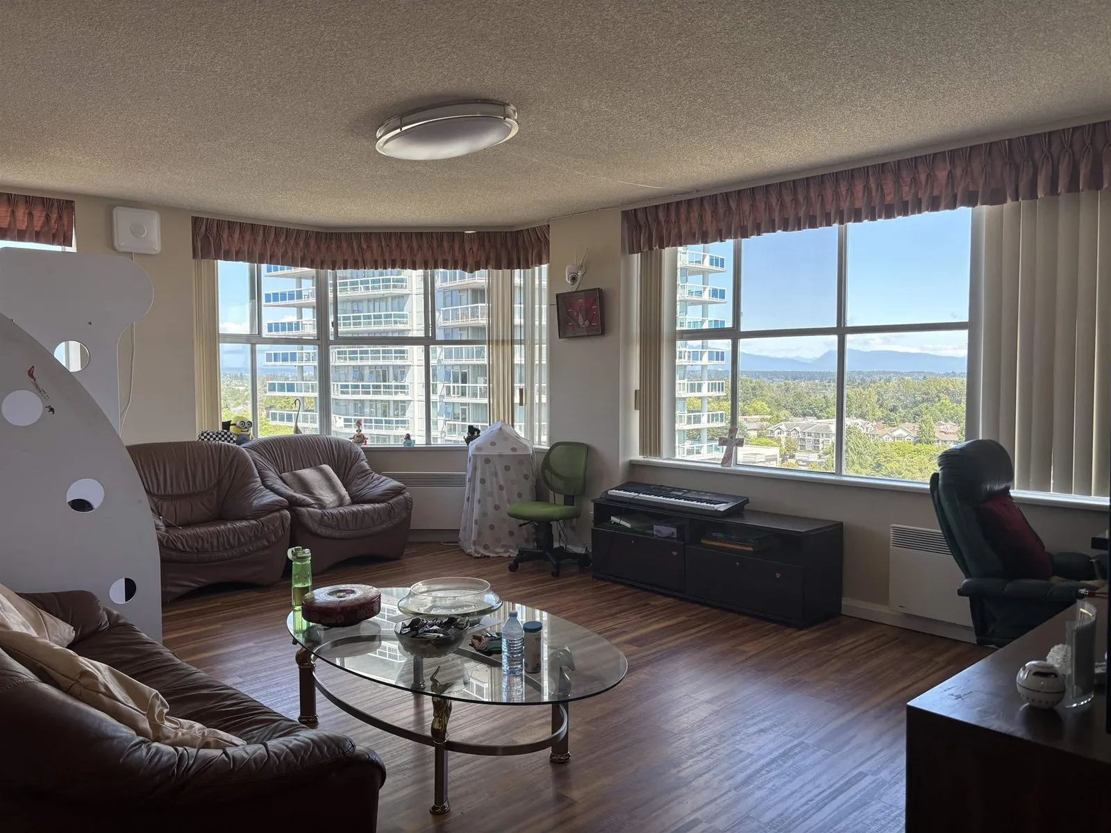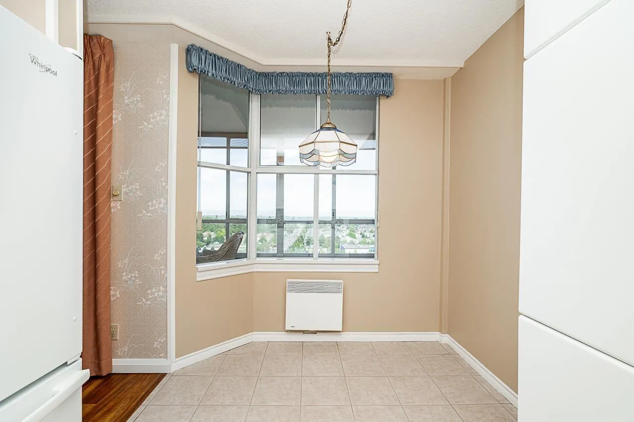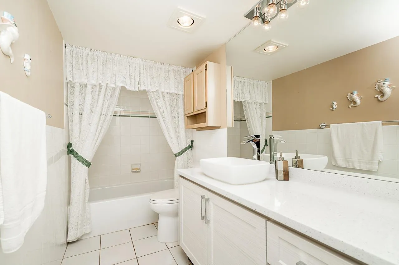RARELY OFFERED larger 2 bedroom home in the very popular Chancellor tower! Wonderful corner unit with PANORAMIC VIEW of city & mountains! Spacious 2 bedroom and 2 bathroom , plus den (which is closed-in balcony) with beautiful view to Mt. Baker. Beautiful white kitchen with upgraded cabinets, newer appliances, tile flooring, and granite countertops. Both bathrooms have also been upgraded with granite counters and tile floors. Well maintained concrete building with lovely gardens, indoor pool, gym, billiard room, secure parking and on-site caretaker. Great location close to shopping, restaurants and public transit. (id:27476)