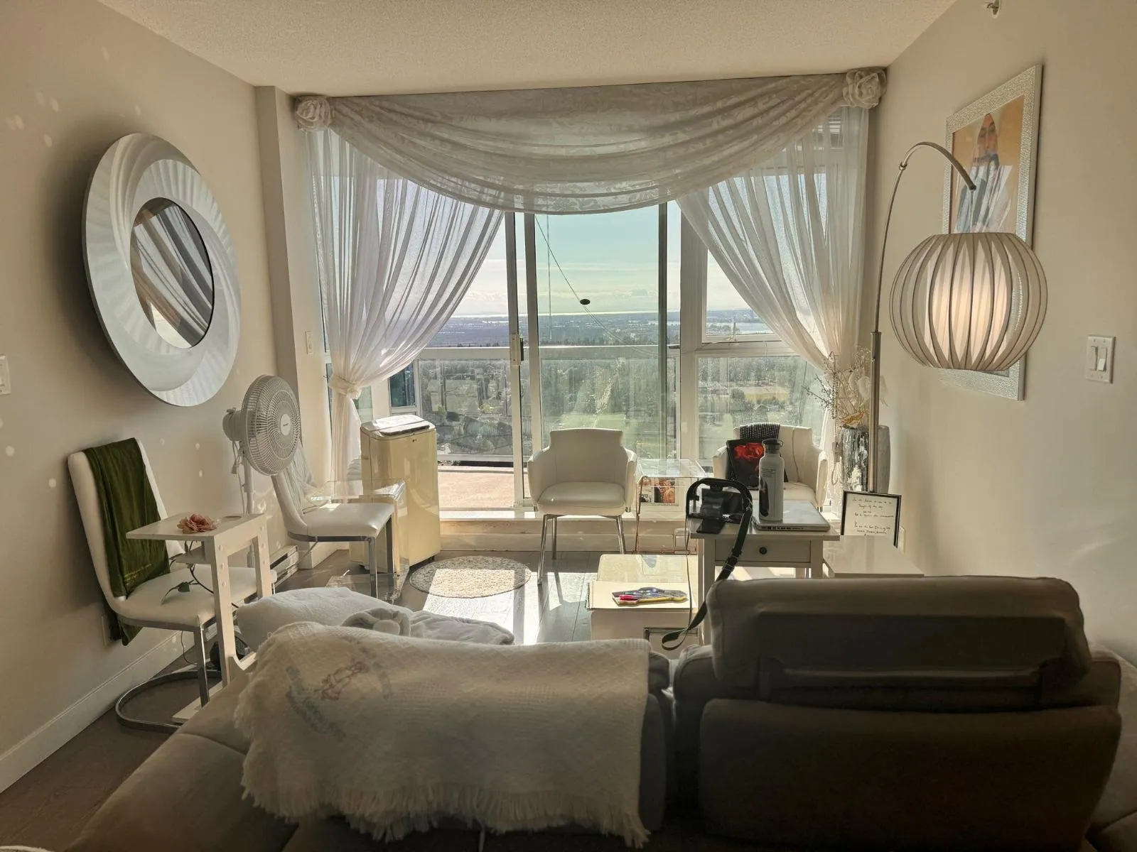 Welcome to Delta Rise! This beautifully maintained 2-bedroom, 2-bathroom apartment offers 821 square feet of modern living space on the 34th floor, with spectacular balcony views of the mountains and city skyline. Located in one of Delta's most desirable neighborhoods-just off Scott Road and 80 Avenue-you're steps from Real Canadian Superstore, transit, parks, restaurants, daycare, and much more. The unit includes a modern open-concept layout, 1 secure parking spot, and a storage locker. Residents enjoy resort-style amenities such as a fully equipped gym, media room, party room, recreation room, kids' play area, raised garden beds, and an outdoor barbecue area with fire pit. Whether you're a first-time buyer, downsizing, or investing, this home offers the perfect mix of luxury, convenience, and community living. Don't miss your chance to own a home in one of Delta's most iconic high-rise developments! (id:27476)