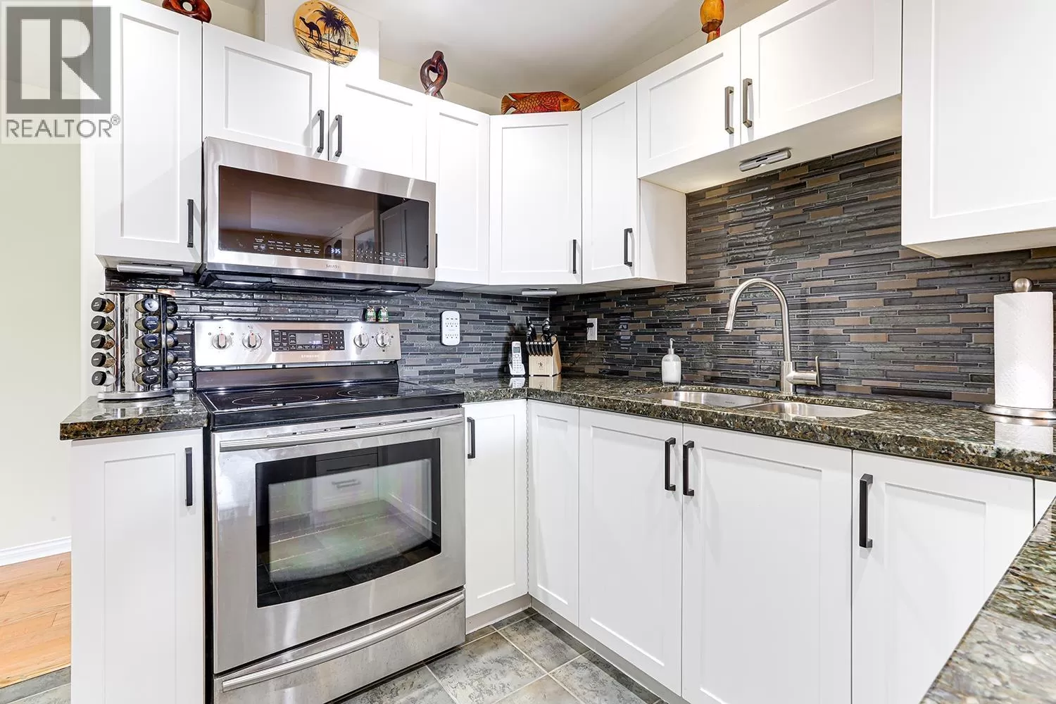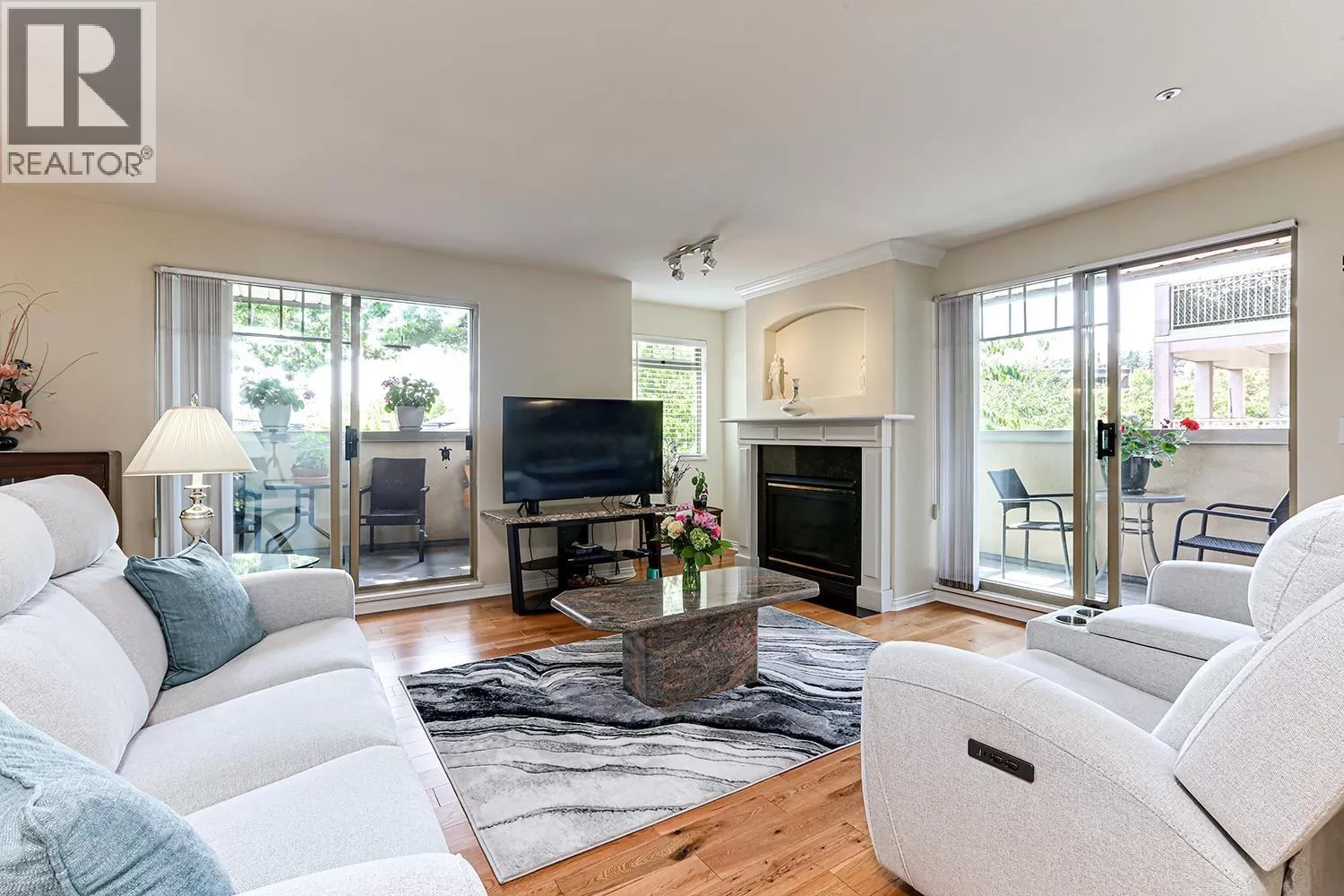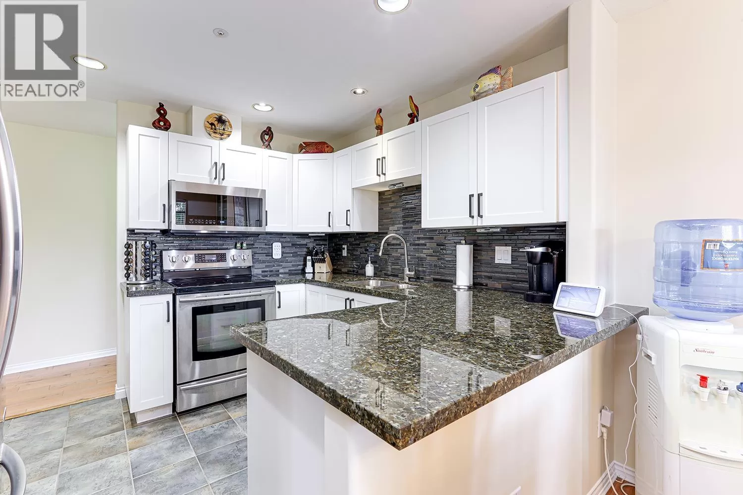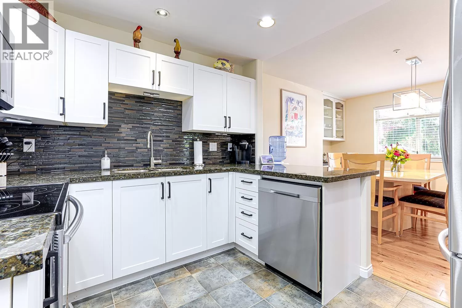 Immaculate, bright & spacious 2 bed/2 bath Corner end unit in Fairway Estates. At 1248 Sq ft, this home features a great floor plan, large rooms for downsizers, 2 patios and lots of windows. Large primary bedroom with 5 pc ensuite with soaker tub/separate shower/double sink. Updated Kitchen including cabinets, gorgeous granite countertops throughout, fresh paint, adjoining dining room and separate, large living room. Strata fee includes gas, hot water and heat. 1 small pet ok. Steps to town center, shopping, beaches, recreation. Nothing to do but move in! (id:27476)