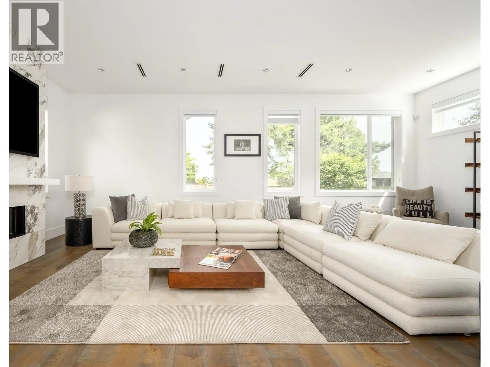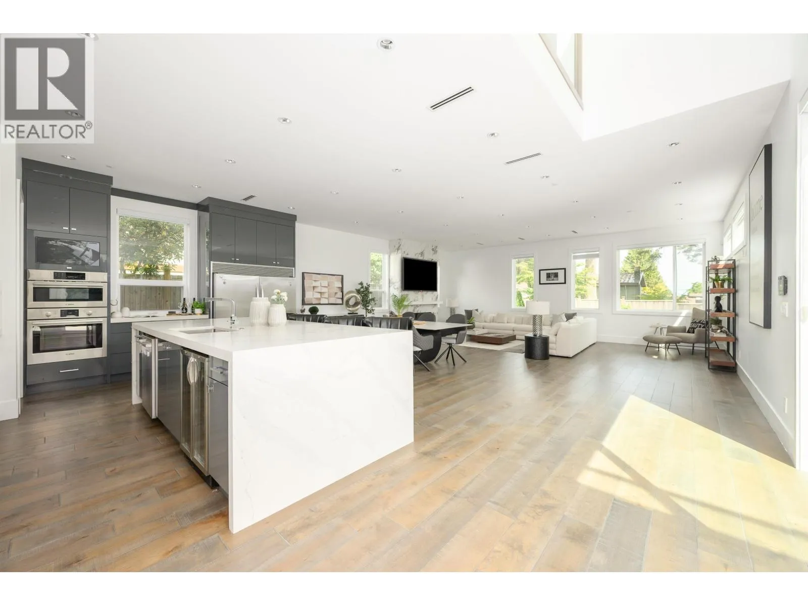 Welcome to Beach Grove living just steps from the infamous Southpointe academy and 5 minute drive to centennial beach. This home offers 5118 SQFT of modern finishings throughout with a top-quality kitchen featuring a premium appliance package, open & airy over height ceilings, formal living and dining room. Enjoy nearly 19´ ceilings and skylights as you enter this luxury SPA inspired home. Upstairs, experience the stunning master bedroom w/walk in closet and ensuite. All secondary bedrooms are OVERSIZED. Main floor delivers an exceptional PRIVATE OFFICE and head downstairs to entertain in your DREAMY Media Room with separate 2 bed nanny quarters. Great outdoor space with a full backyard and a PAVED SIDE COURTYARD. Walking distance to schools, parks, and beach. (id:27476)