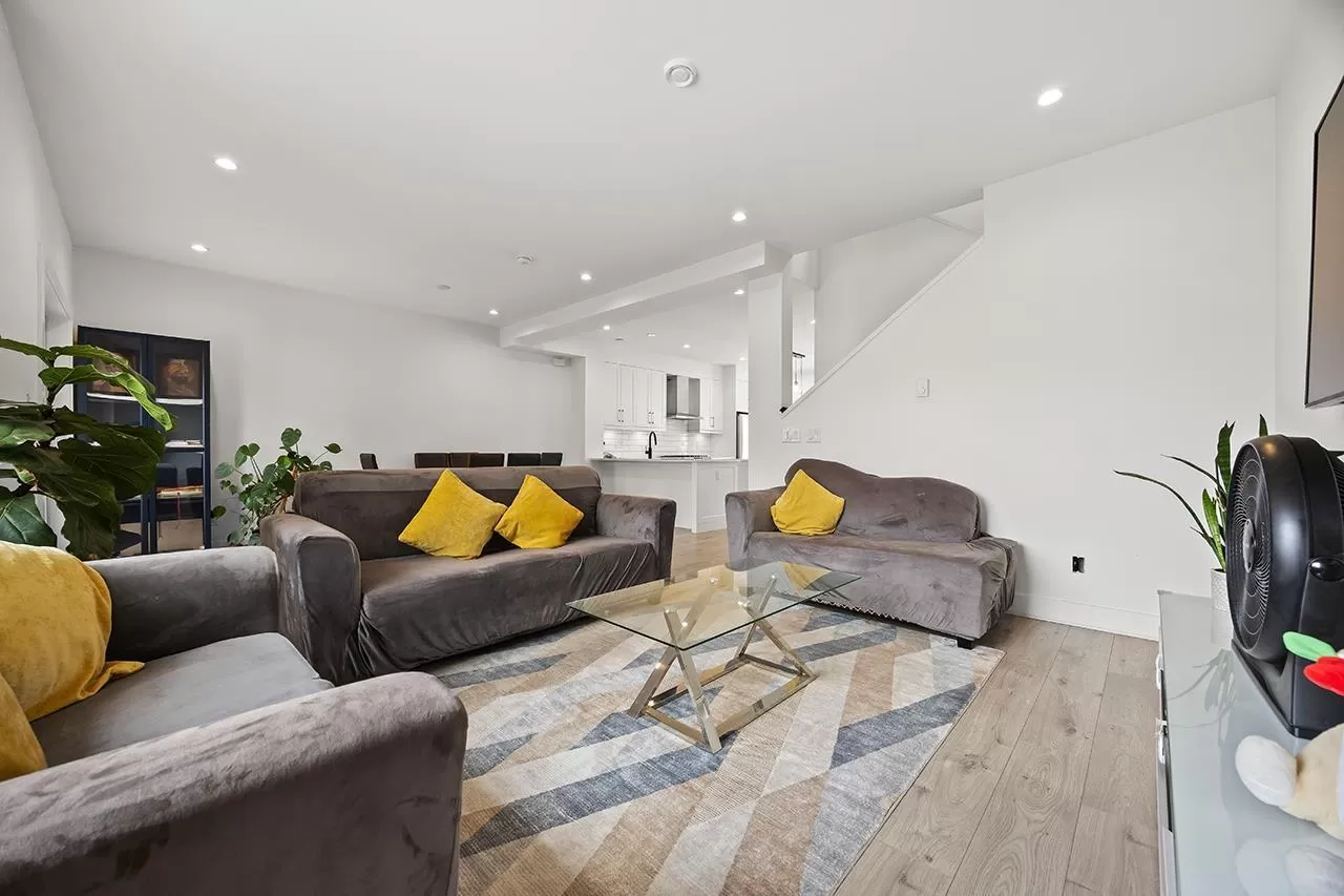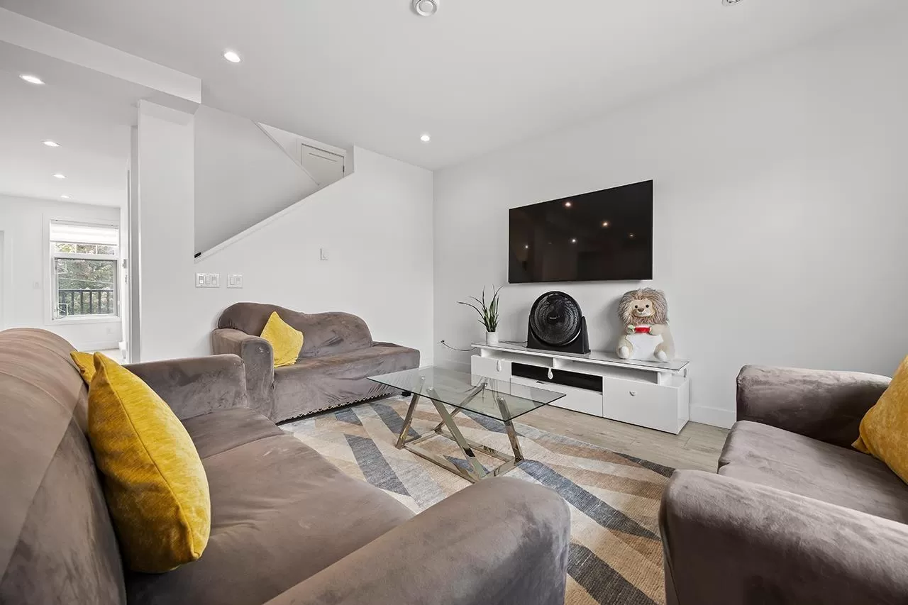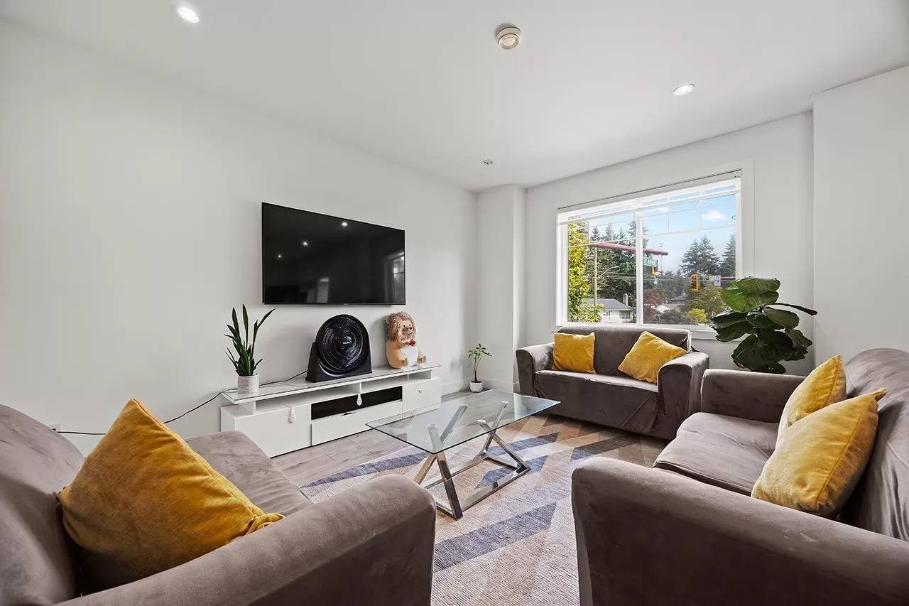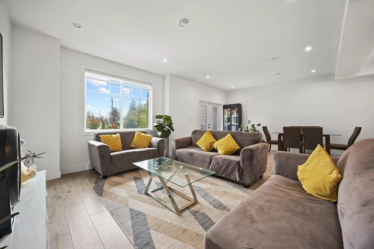 Welcome to Cyrus Hill in the highly sought-after Sunshine Hills community of North Delta! This modern 4-year-old townhouse offers spacious and comfortable living with 4 bedrooms and 3.5 bathrooms. The open-concept main floor features a stylish kitchen with Samsung stainless steel appliances, a 5-burner gas range, quartz countertops, and sleek laminate hardwood flooring. Upstairs you'll find 3 generous bedrooms including a bright primary with walk-in closet and spa-inspired double-sink ensuite, plus laundry for convenience. The lower level includes a 4th bedroom, full bath, and large rec room, perfect for guests or family use. Enjoy the side-by-side double garage and a location directly facing 116 Street, close to transit, shopping, dining, and entertainment. Families will appreciate being in the catchment for top-ranked Seaquam Secondary. A beautiful home in a prime location-don't miss this one! (id:27476)