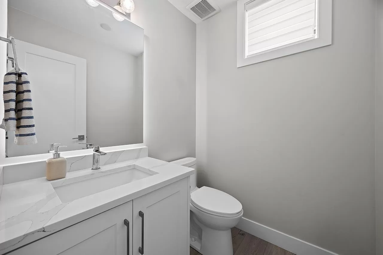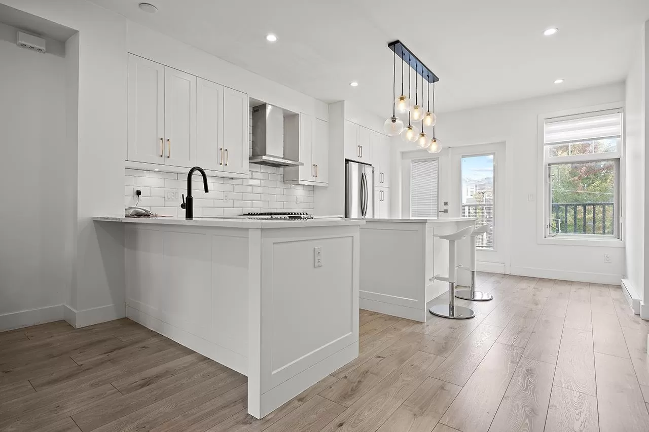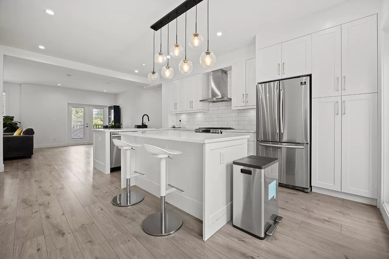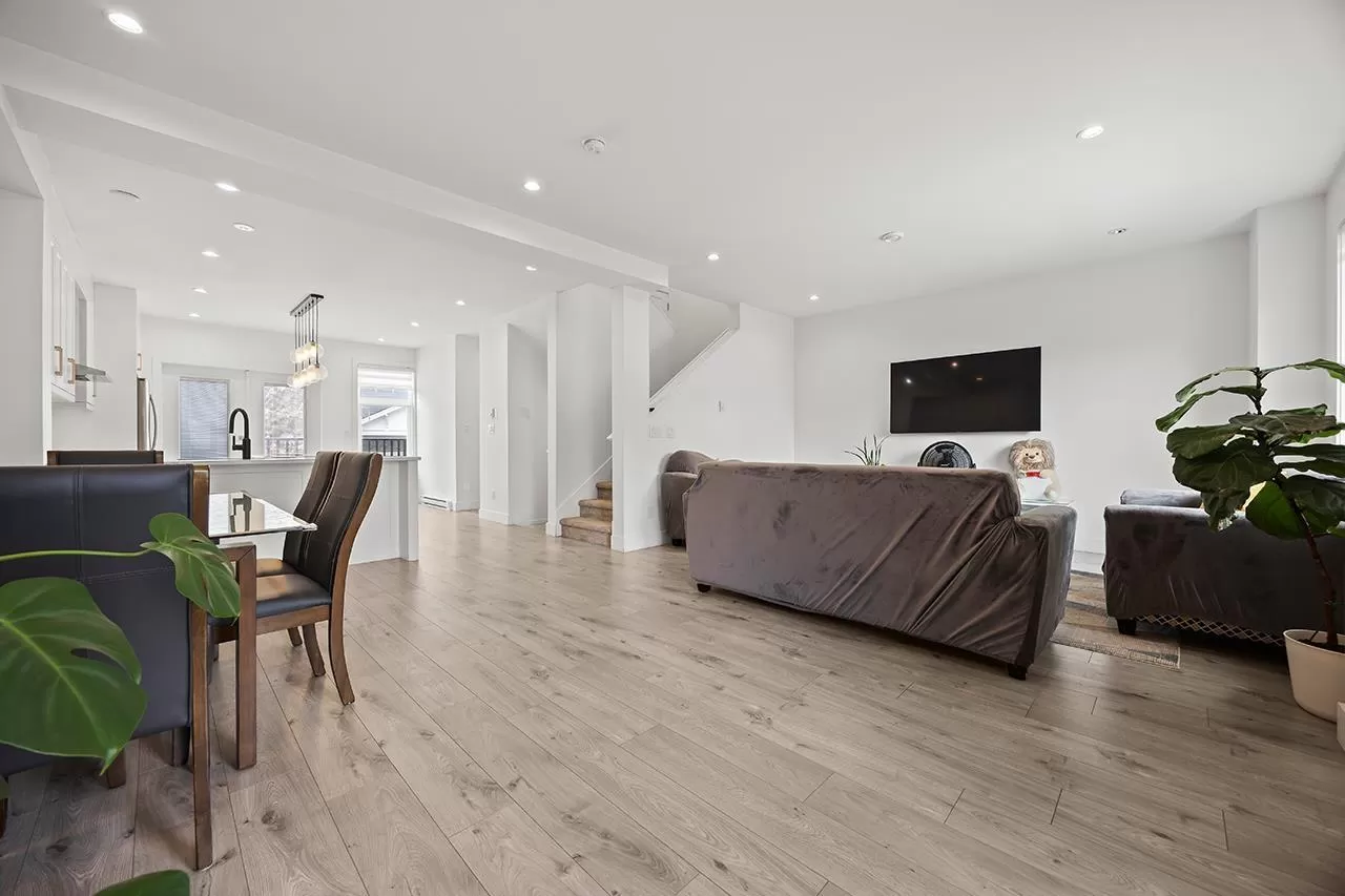Welcome to Cyrus Hill in the highly sought-after Sunshine Hills community of North Delta! This modern 4-year-old townhouse offers spacious and comfortable living with 4 bedrooms and 3.5 bathrooms. The open-concept main floor features a stylish kitchen with Samsung stainless steel appliances, a 5-burner gas range, quartz countertops, and sleek laminate hardwood flooring. Upstairs you'll find 3 generous bedrooms including a bright primary with walk-in closet and spa-inspired double-sink ensuite, plus laundry for convenience. The lower level includes a 4th bedroom, full bath, and large rec room, perfect for guests or family use. Enjoy the side-by-side double garage and a location directly facing 116 Street, close to transit, shopping, dining, and entertainment. Families will appreciate being in the catchment for top-ranked Seaquam Secondary. A beautiful home in a prime location-don't miss this one! (id:27476)