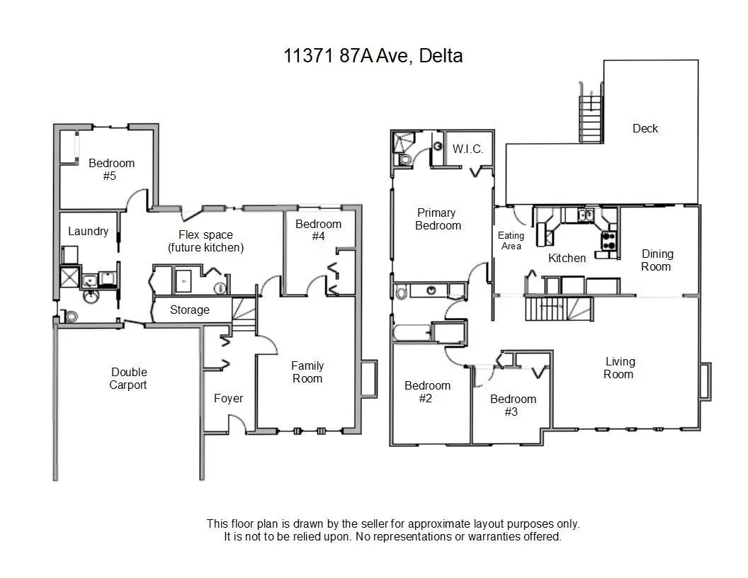 The one you've been waiting for! LARGE, 5 bed/3 FULL bath home (2460 sqft) is owner-occupied and well-maintained. Primary bedrm has WIC, 3-pce ensuite, & room for the king-sized bed. Kitchen & dining rooms open onto sundeck with access to private fenced yard. SUITE potential! Bright lower level has sep entrance, family room, 2 beds, bathroom, laundry room, & flex room (plumbing roughed-in for kitchen or workshop). Outside enjoy low-maintenance yard & covered hot tub for year-round relaxation. Extra storage under the deck. Updates include double glazed windows, furnace, & new attic insulation. Quiet no-through road with easy access to Nordel way, schools, shopping, & North Delta Rec Centre. Incredible value - Hurry on this one! (id:27476)