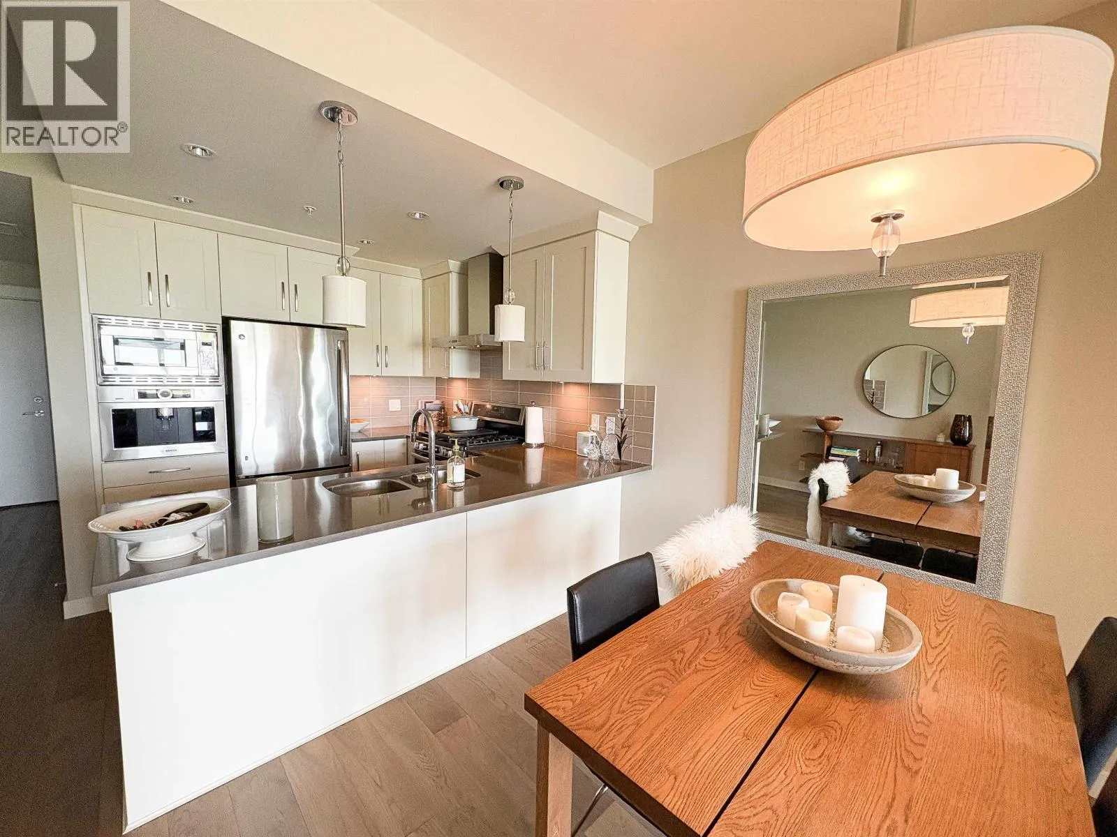 This fourth-floor residence in the highly sought-after concrete building at Tsawwassen Springs offers breathtaking views of the golf course and surrounding mountains. Originally designed as a display unit, it boasts numerous upgrades, including hardwood floors, soaring ceilings, and a gourmet kitchen featuring quartz countertops, stainless steel appliances, and a built-in Bosch cappuccino machine. The open-concept living and dining area flows seamlessly to a spacious 12´ x 12´ balcony, complete with natural gas heating and BBQ hook-up-perfect for year-round entertaining. Featuring two bedrooms and two bathrooms, the home includes a luxurious primary suite with heated floors, in-suite storage, and geothermal heating and cooling for year-round comfort. Enjoy resort-style living (id:27476)