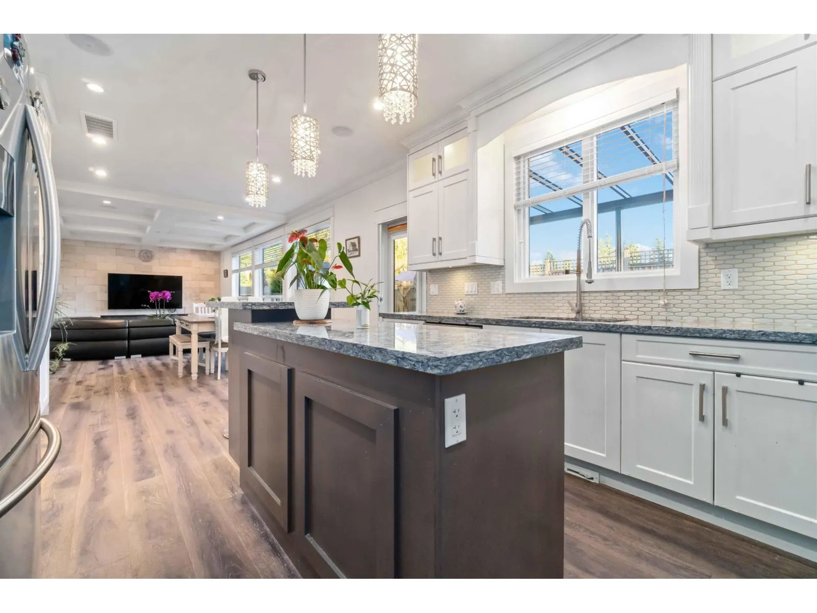 An executive custom built home in Stegavik Court, one of Delta's Most sought after neighbourhood. This beautiful home sits on a nicely situated lot that offers breathtaking 180 degree unobstructed panoramic view from the MASTER of the Fraser River. This open concept 6 bed, 6 bath home boasts all the latest in home design. Main floor features living rm with real lime stone fireplace, dining rm, kitchen w/ SS appliances, quartz counters, hardwood flooring, high ceilings, built in speakers in/out, security cameras, A/C. BSMT features spacious THEATRE/BAR room + 2 BDRM LEGAL suite with separate entrance as a MORTGAGE helper and BONUS storage SHED. Excellent location minutes to Richmond, Vancouver, Burnaby, White Rock. School Catchment: Brooke Elementary / Sands Secondary, MUST SEE! (id:27476)