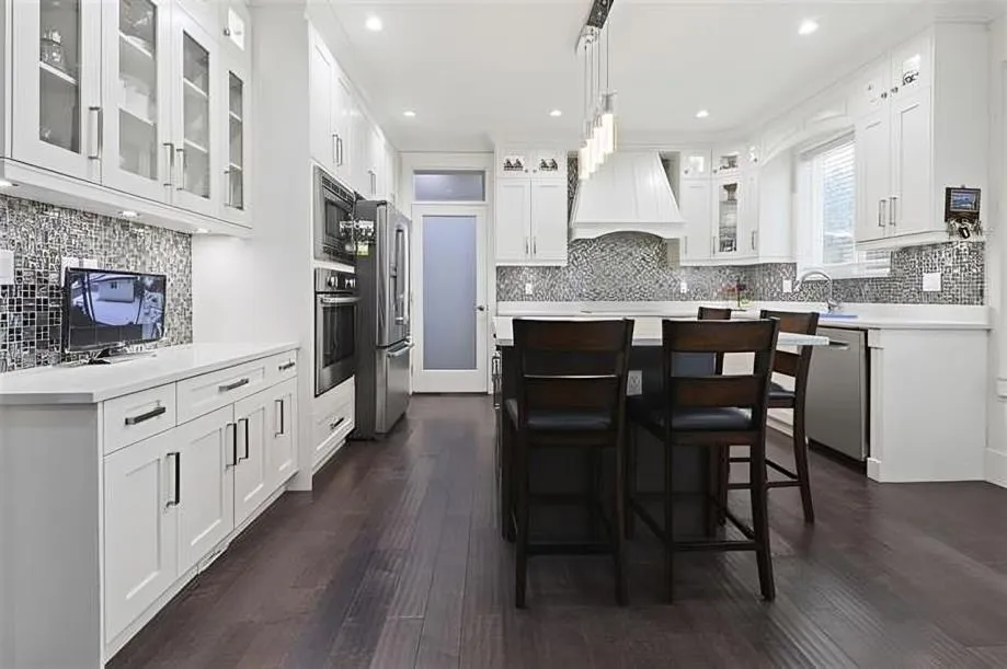 Luxury custom built home on big 6000 SQFT lot. This 3 level home has high end finishes and offers 8 bedrooms, 6 bathrooms. This home features a legal 2 bedroom in basement, dream kitchen and spice kitchen on main, top of the line appliances, granite countertops, large centre island prefect home for entertaining. Spacious living and dining room. Good size theatre room in the basement, no money spared. Home has radiant heat, AC and 2 master suites upstairs with 2 additional bedrooms. Huge attached 450 SQFT garage and 240 SQFT shed in the back garden. Great location close to shop and transit (id:27476)