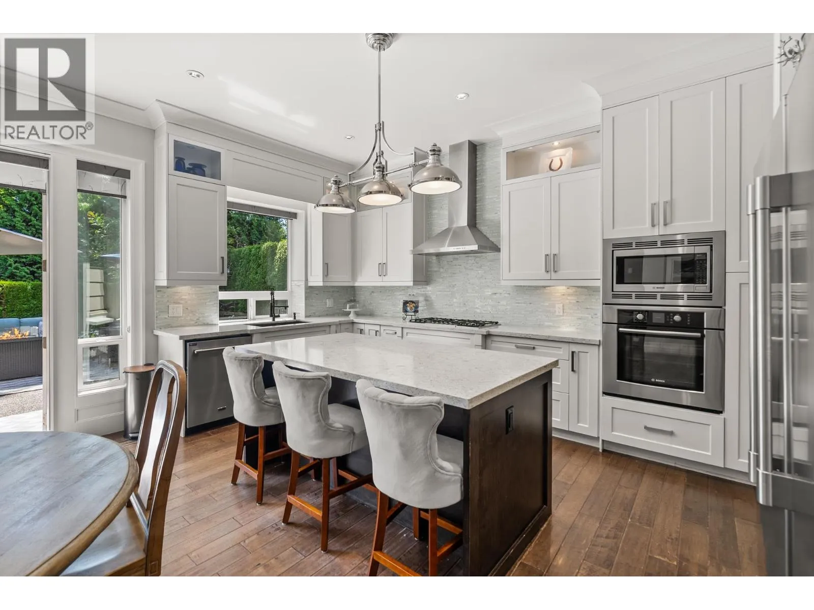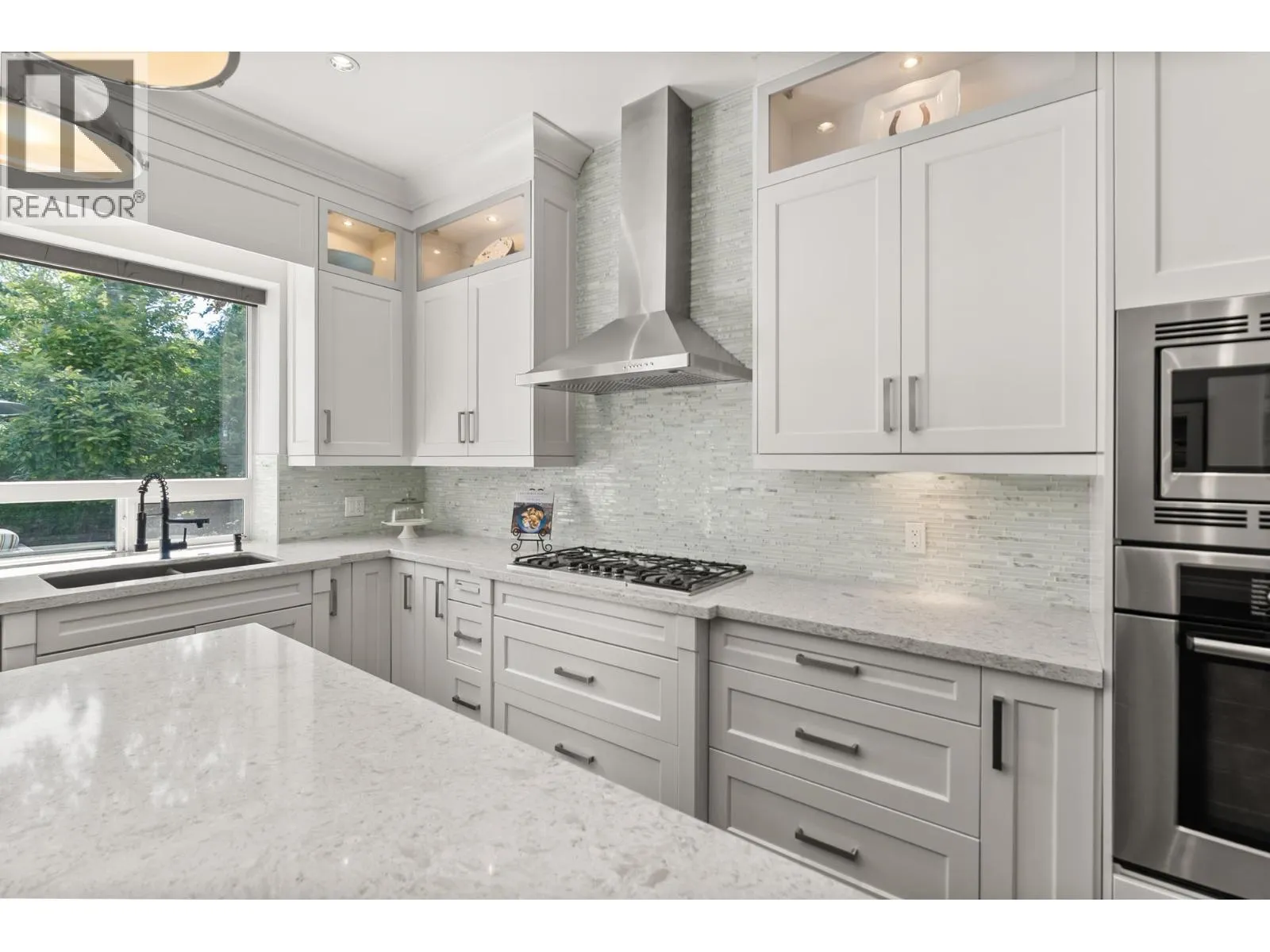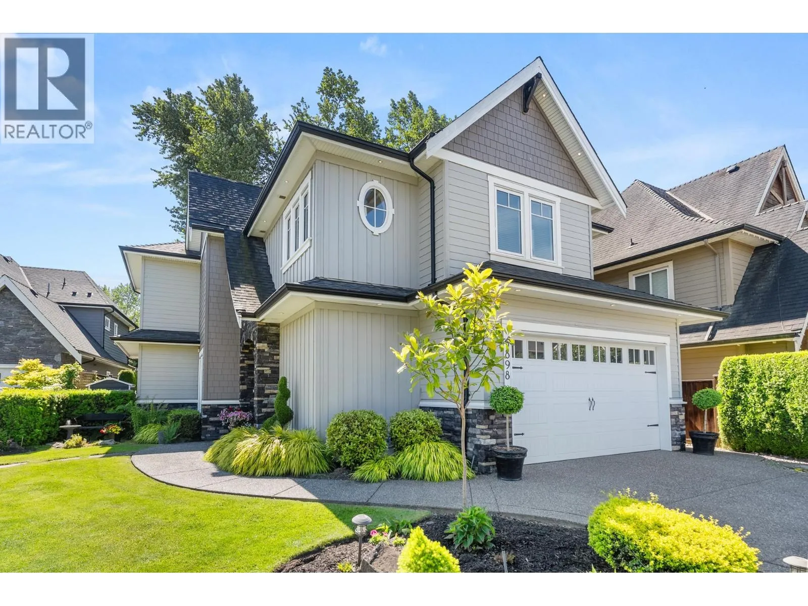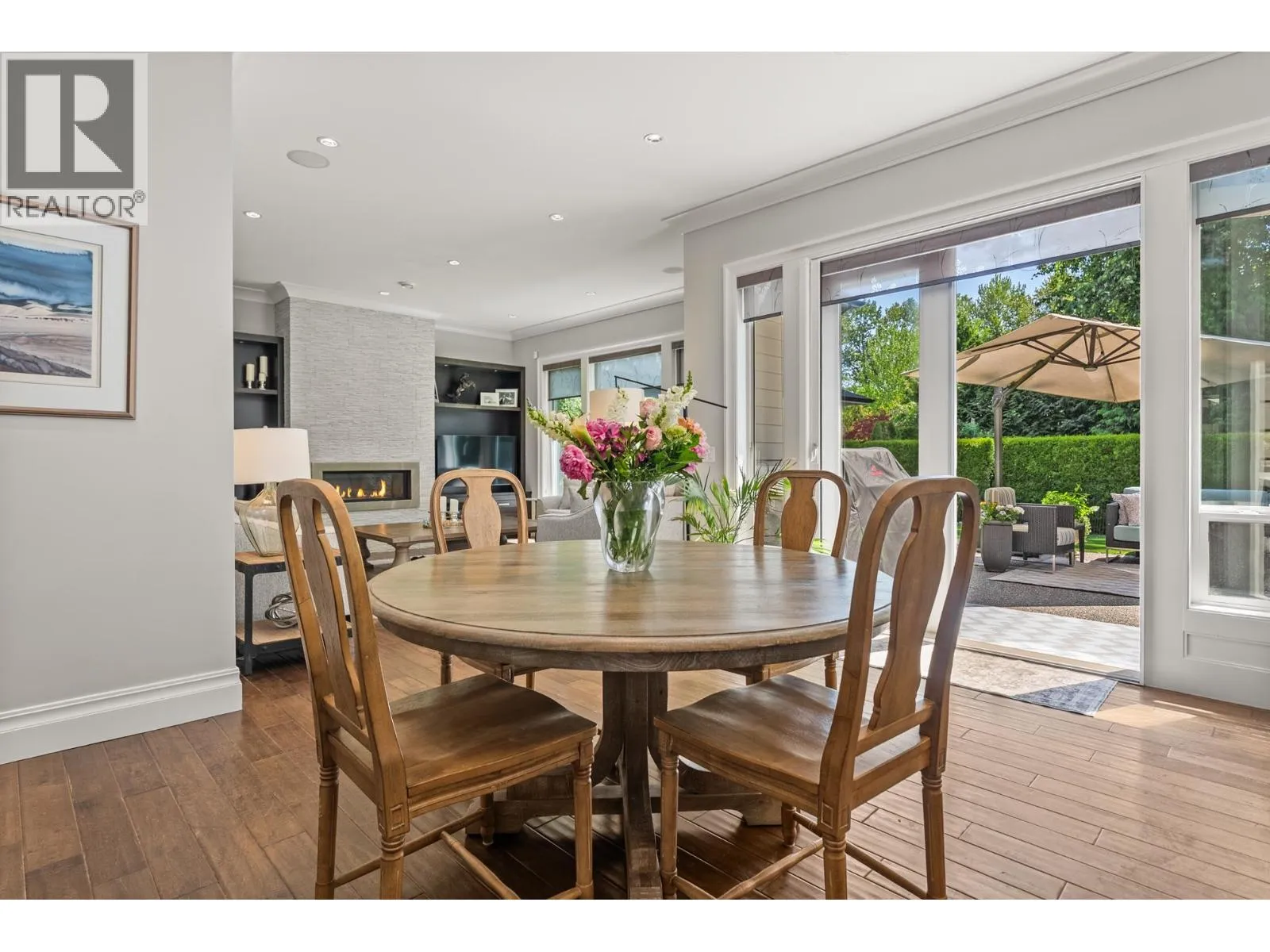 Elegantly situated on a cul-de-sac in Southamton Estates, this sophisticated 4-bedroom + den residence exudes luxury. Boasting 10' ceilings, engineered hardwood floors, and crown moldings, the home features a gas fireplace + HRV system for ultimate comfort. The dream kitchen is adorned with full-height cabinets, quartz countertops, and high-end stainless steel appliances, including an oversized side-by-side fridge and 5-burner gas range. The meticulously landscaped backyard offers a private oasis with a putting green + entertaining area. All bedrooms showcase ensuites, while the property also offers a partial view of the Cove Links golf course. Walking distance to Neilson Grove Elementary, marina, + parks. (id:27476)