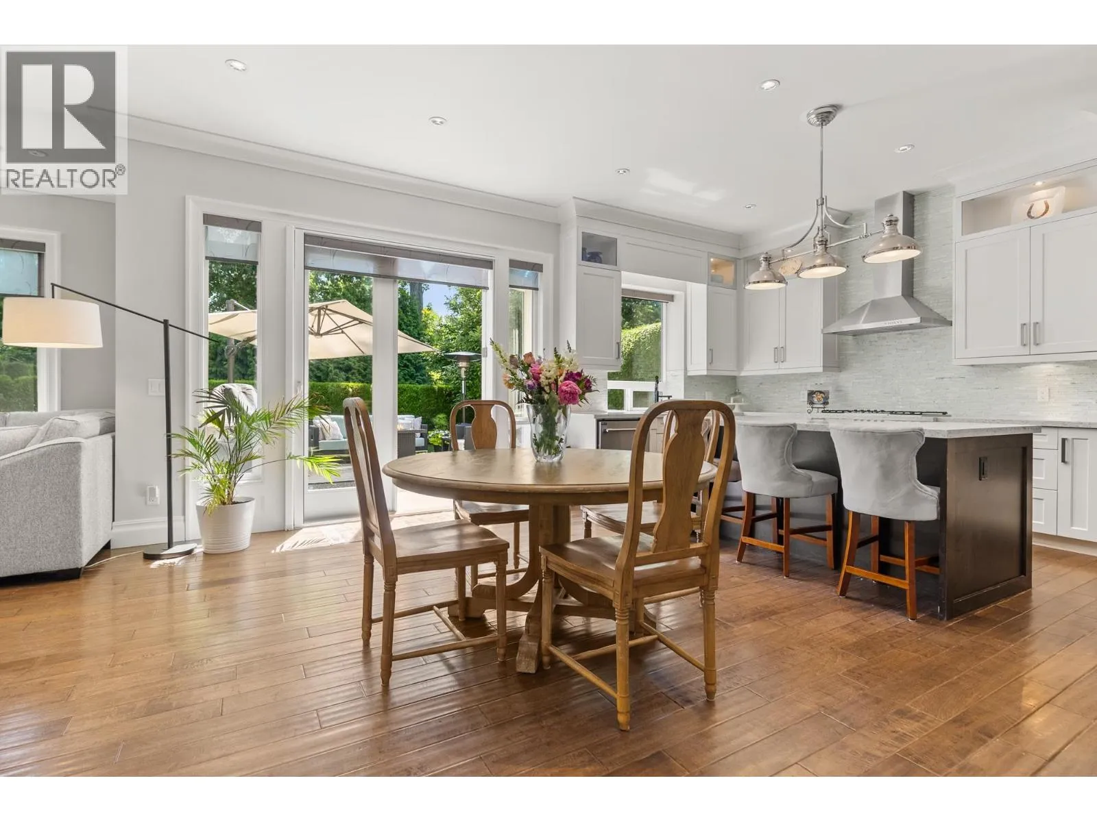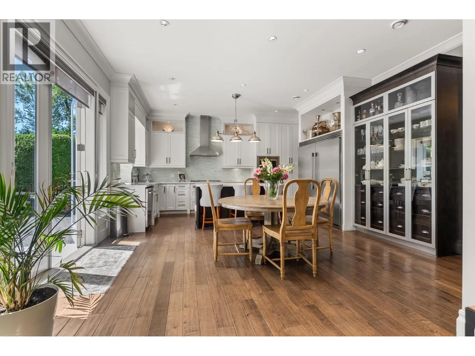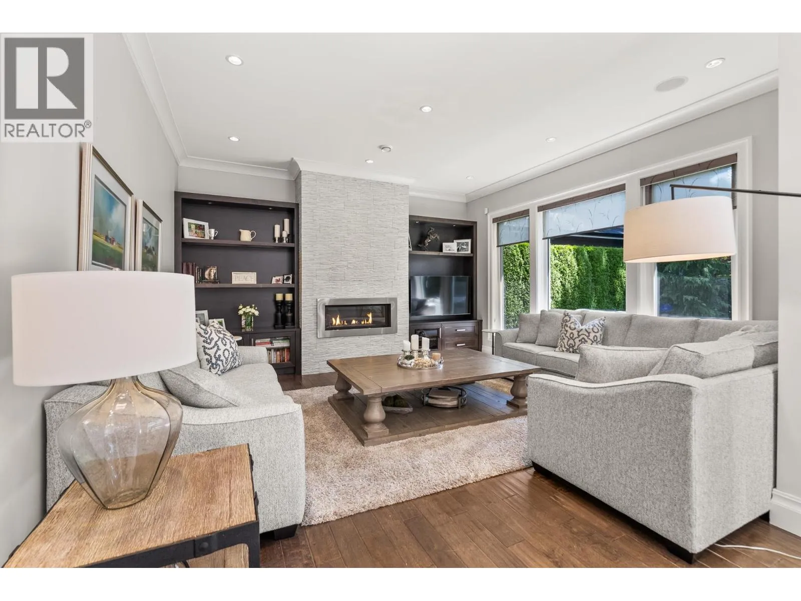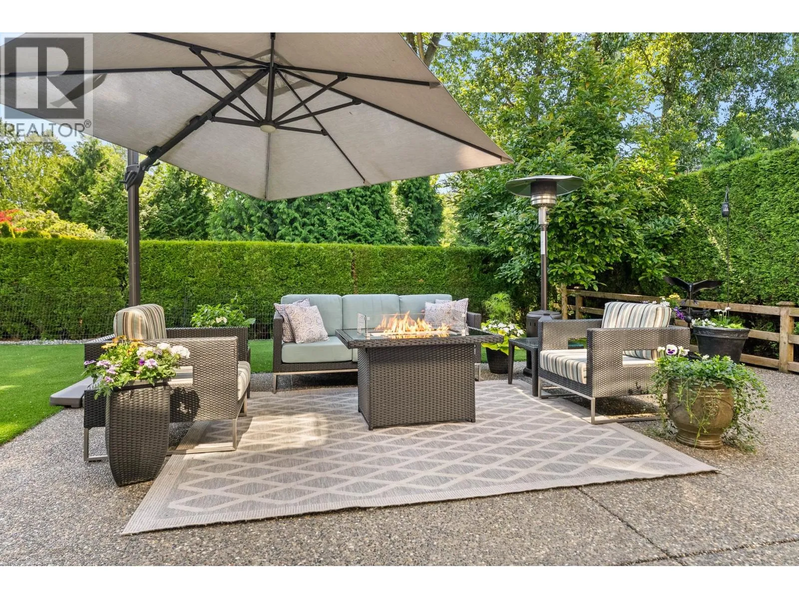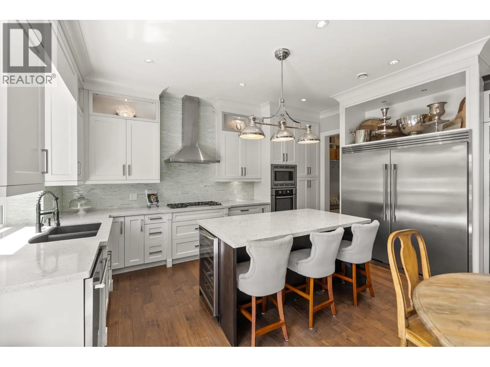 Elegantly situated on a cul-de-sac in Southamton Estates, this sophisticated 4-bedroom + den residence exudes luxury. Boasting 10' ceilings, engineered hardwood floors, and crown moldings, the home features a gas fireplace + HRV system for ultimate comfort. The dream kitchen is adorned with full-height cabinets, quartz countertops, and high-end stainless steel appliances, including an oversized side-by-side fridge and 5-burner gas range. The meticulously landscaped backyard offers a private oasis with a putting green + entertaining area. All bedrooms showcase ensuites, while the property also offers a partial view of the Cove Links golf course. Walking distance to Neilson Grove Elementary, marina, + parks. (id:27476)