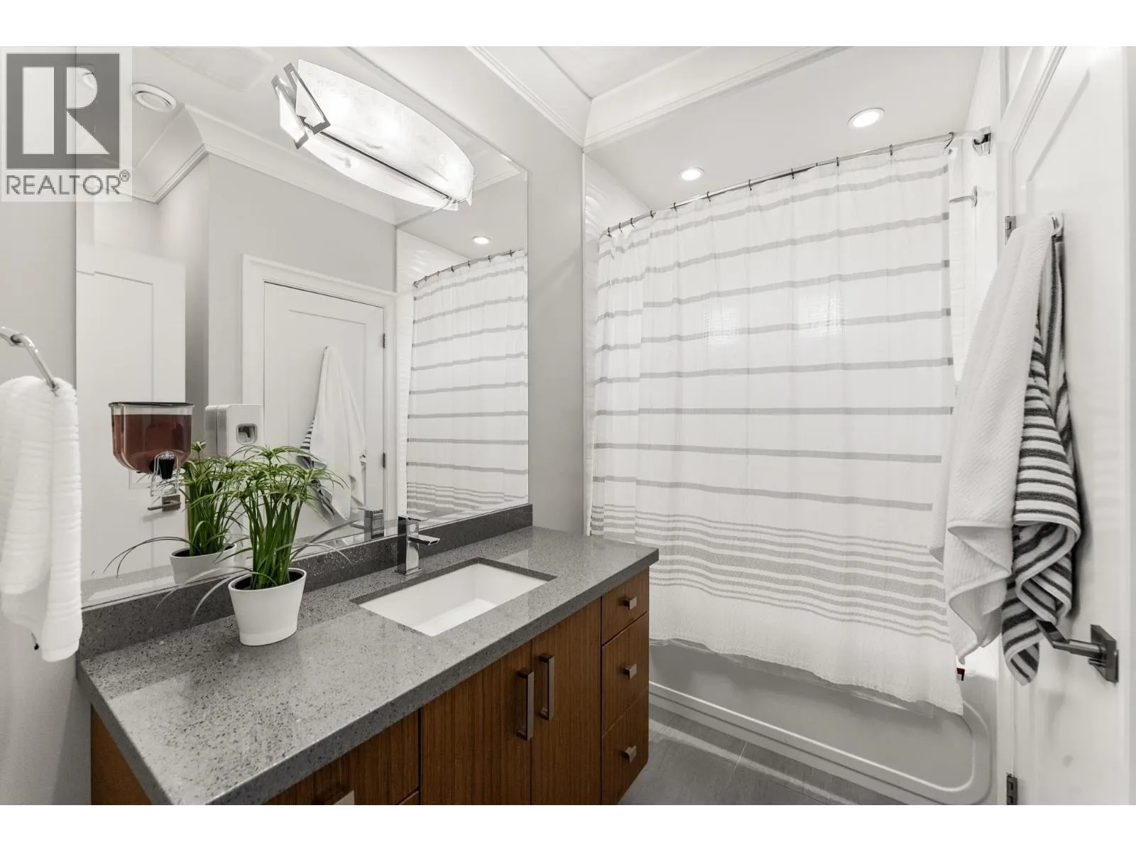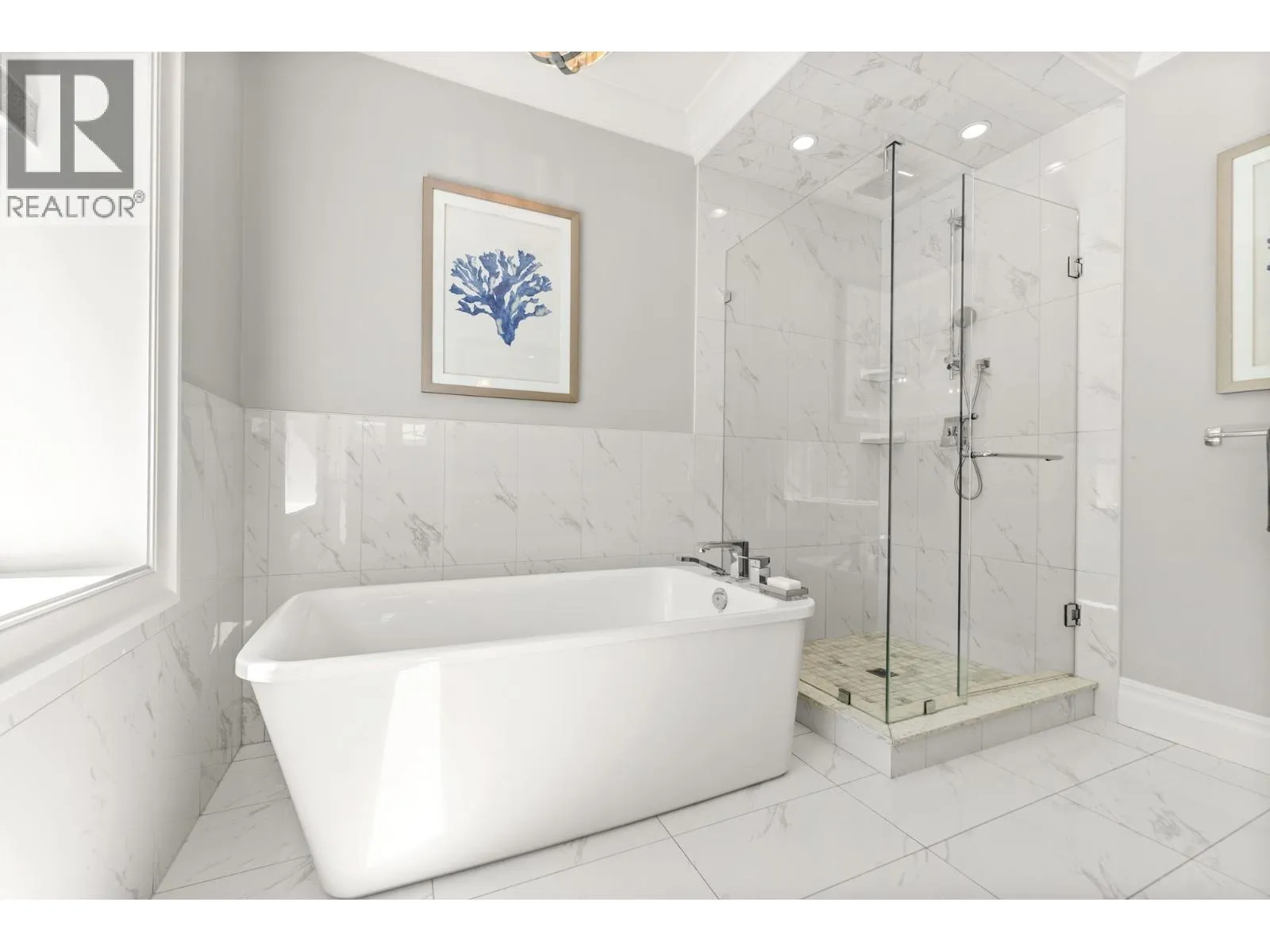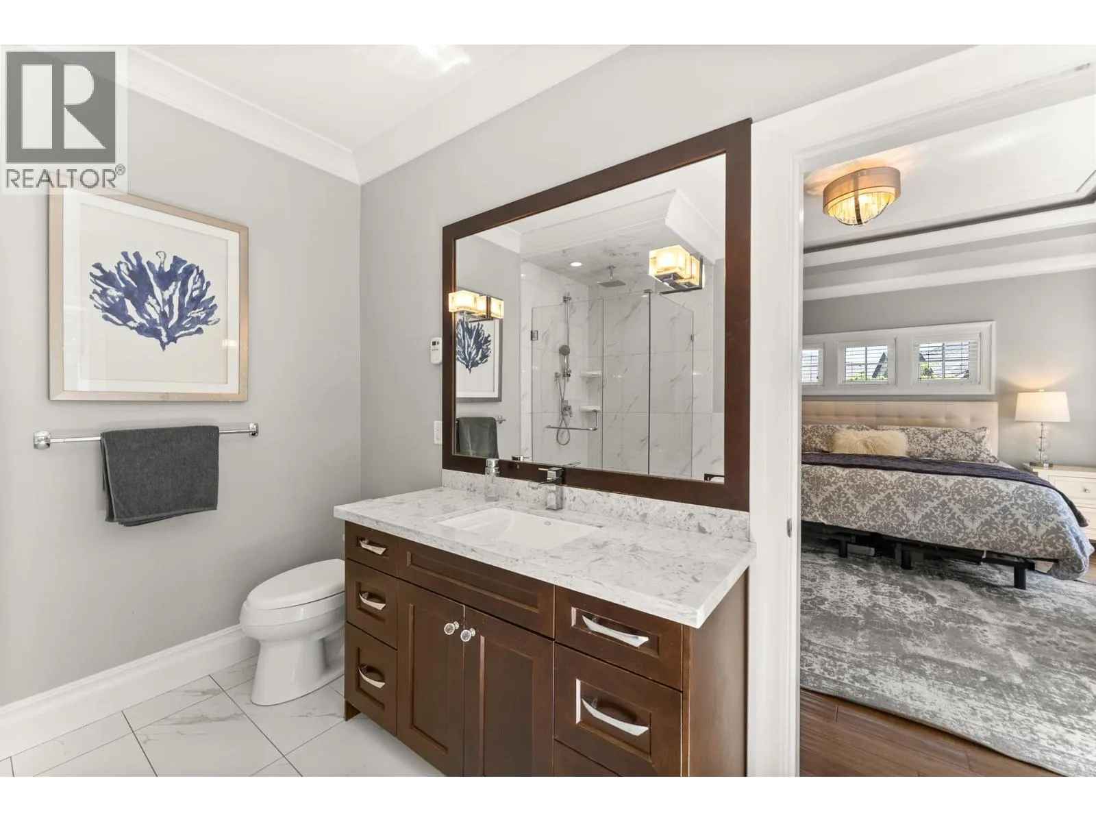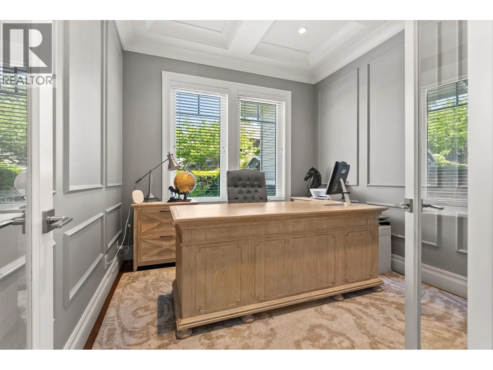 Elegantly situated on a cul-de-sac in Southamton Estates, this sophisticated 4-bedroom + den residence exudes luxury. Boasting 10' ceilings, engineered hardwood floors, and crown moldings, the home features a gas fireplace + HRV system for ultimate comfort. The dream kitchen is adorned with full-height cabinets, quartz countertops, and high-end stainless steel appliances, including an oversized side-by-side fridge and 5-burner gas range. The meticulously landscaped backyard offers a private oasis with a putting green + entertaining area. All bedrooms showcase ensuites, while the property also offers a partial view of the Cove Links golf course. Walking distance to Neilson Grove Elementary, marina, + parks. (id:27476)