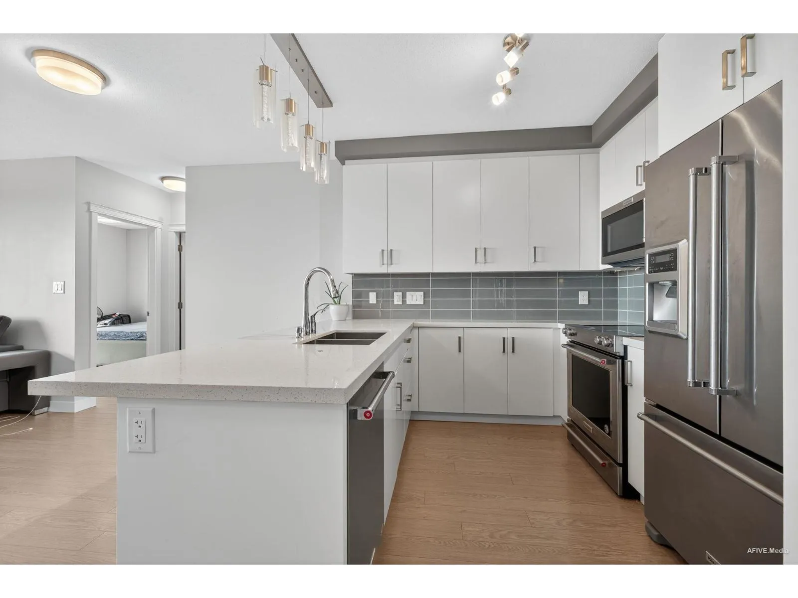 Enjoy spectacular panoramic views in every direction from the18th floor of the Delta Rise. This 2 bedroom & 2 full bath condo+ 2 parking is located close to EVERYTHING. Delta's premier high rise & offers AMAZING amenity package with a HUGE rooftop courtyard with grilling, garden & play spaces, a club house, theatre room, library & gym. This condo offers 821 sq ft of well designed sq. ft that takes full advantage of the views.The kitchen/living/dining rooms are spacious & open concept with the living room area opening onto a MASSIVE view balcony perfect for everyday enjoyment. The kitchen has sleek quartz counters including an eat at bar area.Unbeatable location-just steps to shopping, dining, and transit.Opportunities like this don't come often, call today before it's gone! (id:27476)