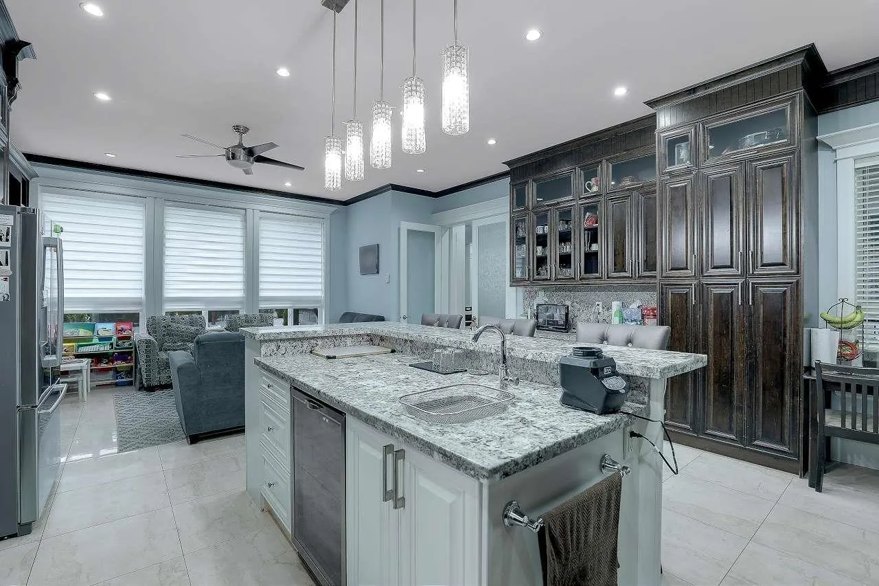 This beautifully crafted custom home shows like a 10. Offering 7 bedrooms and 7 bathrooms, including a self-contained 1-bedroom legal suite (currently rented) along with a bedroom on the main floor with it's on ensuite, this residence features high-end finishings-2x6 construction, a grand entry with soaring ceilings, and elegant Italian marble tiles. Detailed with wainscoting, crown moldings, and a main floor bedroom with full ensuite, it also boasts a chef's kitchen with Bosch appliances and a gas range. The basement includes a rec room with wet bar and separate entry, a media room, and an additional bedroom, ideal for entertainment or extended family. Enjoy the comfort of radiant hot water heating, a south-facing backyard, and peace of mind with a backup generator. Come see now! (id:27476)