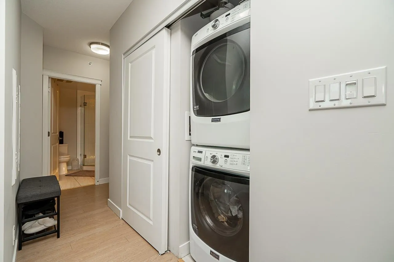Prime Central Location!! DELTA RISE. Welcome to this Epitome of Urban living in the heart of Delta city. This beautiful 2 bedroom and 2 full bath home offers open concept modern living floor plan and a well equipped Gourmet style Kitchen. Enjoy a breath taking view of Mountains and City from the comfort of your living room or your wrap around balcony. This unit has its own in-suite Laundry and 2 full bathrooms. Building offers a modern GYM, a Library and large Amenities room to entertain your guests. Walking distance to shopping centers, restaurants and transportation. This unit offers one parking stall and one storage locker. Book your showing now before its gone!! (id:27476)