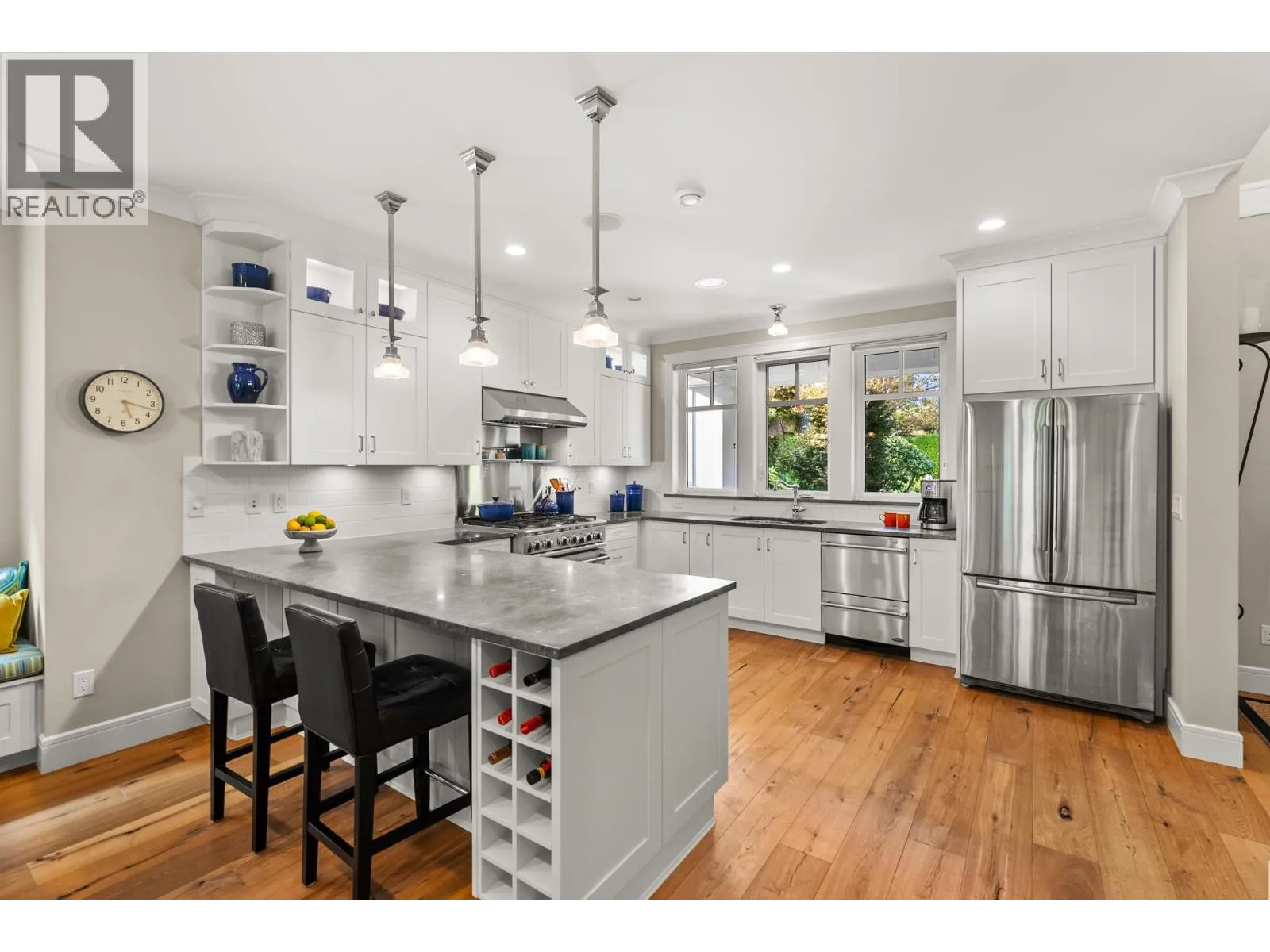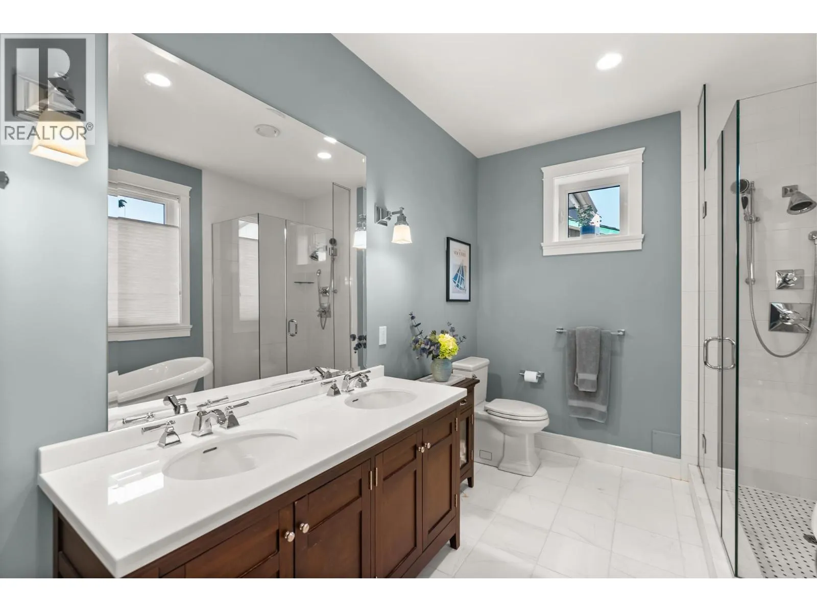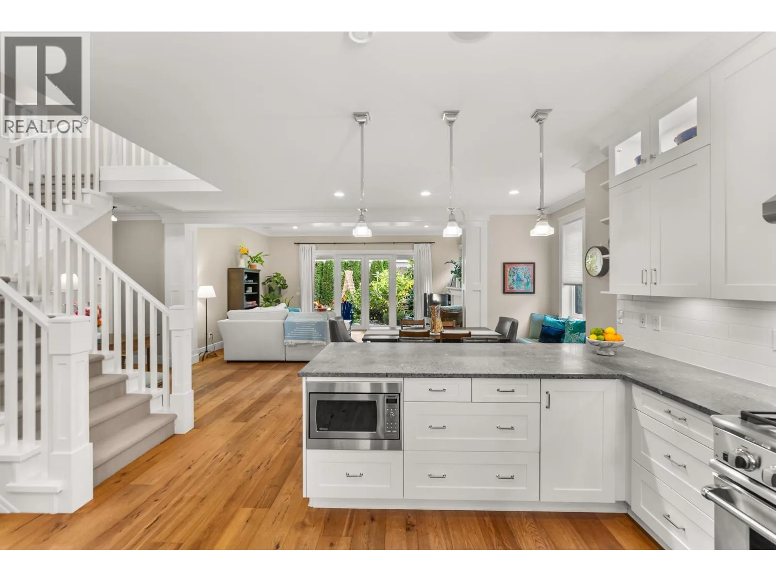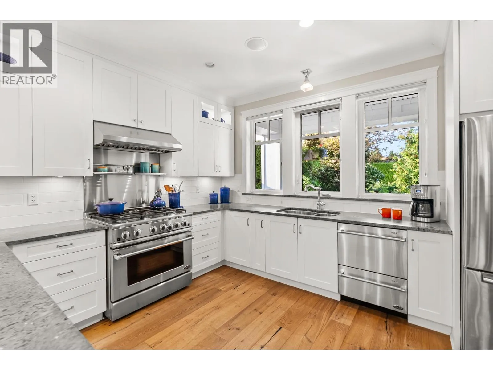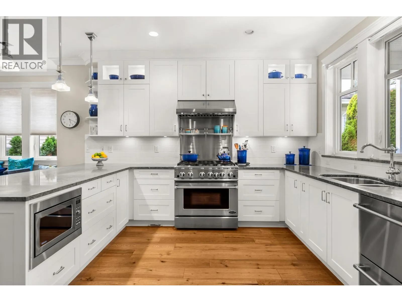 Step into timeless elegance with this custom built home, where luxury details meet everyday comfort. The beautifully landscaped front gardens set the tone while the private south-facing backyard offers a breathtaking retreat. Inside, the open-concept design is filled with natural light, featuring 10ft ceilings. Duchateau engineered hardwood and Rejuvination lighting fixtures. The chef's kitchen is a true showstopper with marble counters, shaker cabinetry and DCS appliances including a 6-burner gas range. The primary bedroom on the main is your sanctuary, complete with his & her closets and a spa-like ensuite featuring marble finishes and a deep solar tub. Euroline windows, exquisite millwork, solar panels and meticulous care throughout make this home as efficient as it is beautiful. (id:27476)
