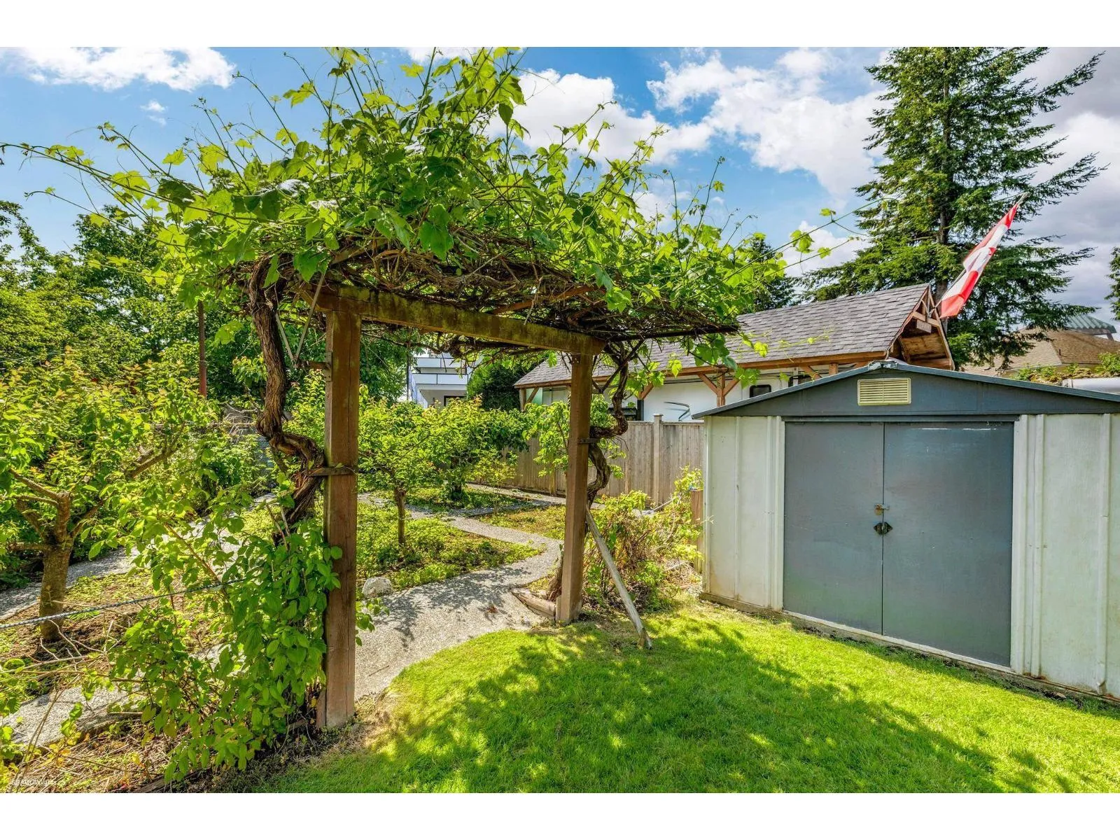 Investor alert! Solid 4 bedroom 2 bath family home in desirable Nordel location. Located on a quiet street on a nice lot with fruit trees including a mini orchard, irrigation system & storage shed. This home also offers great suite potential with a separate entrance & basement bathroom rough-in. 2 gas fireplaces, covered deck, high efficiency furnace, sub panel with 220 in the garage & EV ready! Perfect investment property at over 8000 sqft eastern exposed yard, covered deck, peek-a-boo view from main floor of the ocean & north shore ski mountains. Potential land assembly in the future or hold and build your new duplex or renovate current home and add suite & coach house. Close to great schools, shopping & Transit! (id:27476)