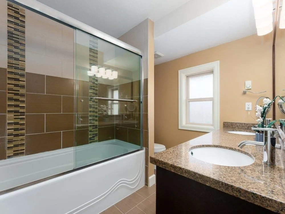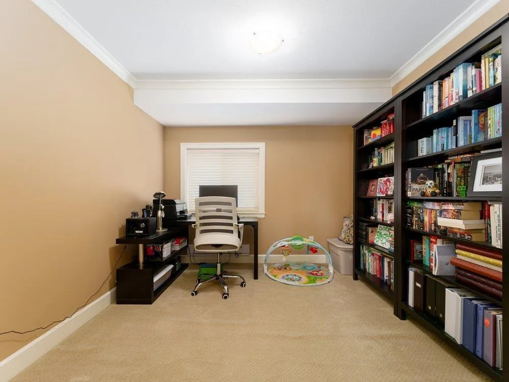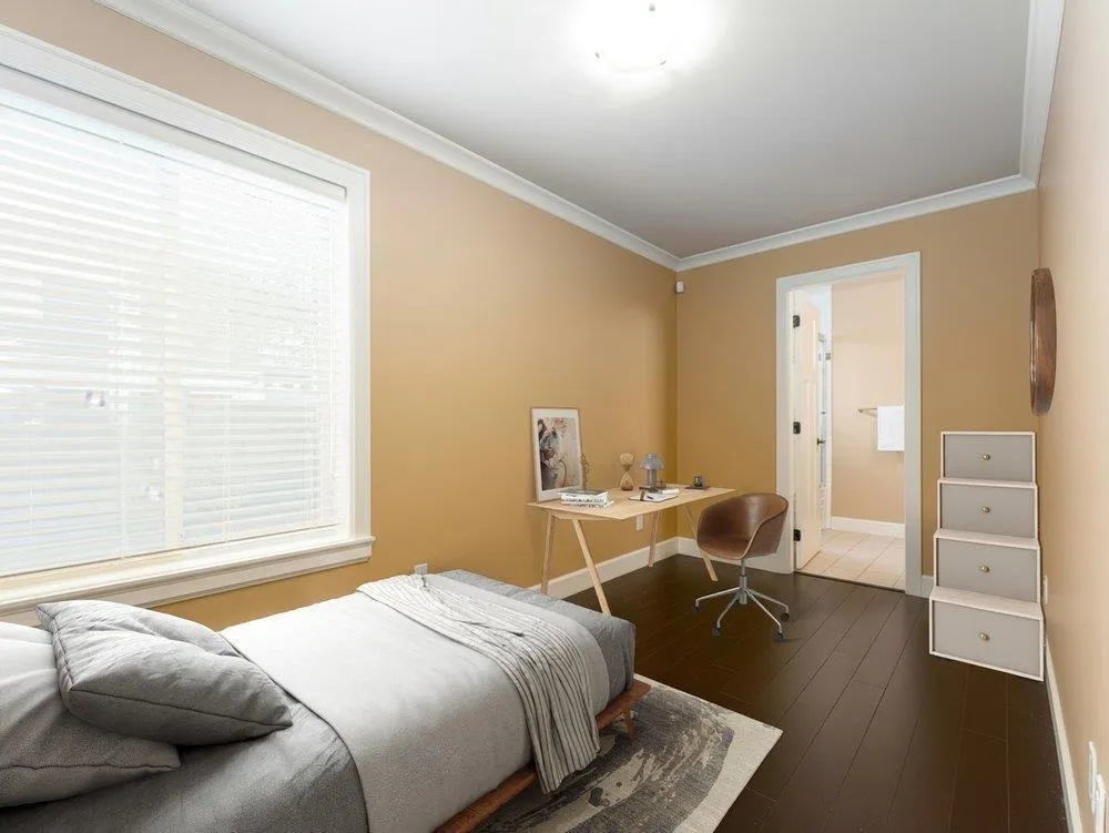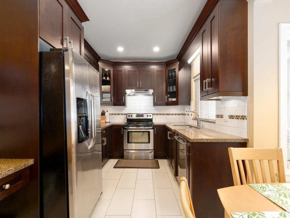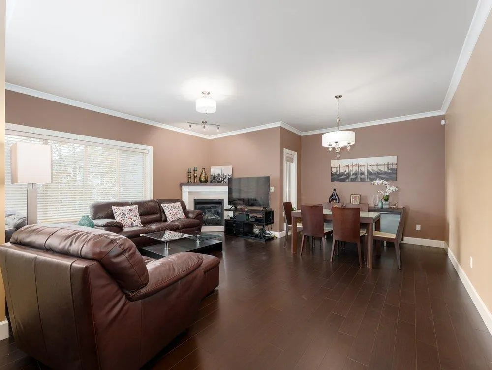 Delta's Point. Seldom available 4 bedroom 4 baths BACK UNIT offers 2,000sf of house-like spacious living on 3 levels. Living & dining areas feature airy 9' ceiling & crown-moldings plus a gas fireplace for the cozy ambience. The area can easily accommodate house-sized furniture. The large balcony just off the living room is perfect for the BBQ. Kitchen features granite countertops with undermount sink, maple shaker cabinets & stainless steel appliances. There is even a window in front of the kitchen sink. Primary bedroom has a large walk-in-closet plus a 5 pc ensuite bathroom. The 4th bedroom/flex room on the ground floor has a 3 piece ensuite with separate entrance that opens on to the private, fenced backyard. Side-by-side double garage. Steps to shopping & transit. Convenient location. (id:27476)