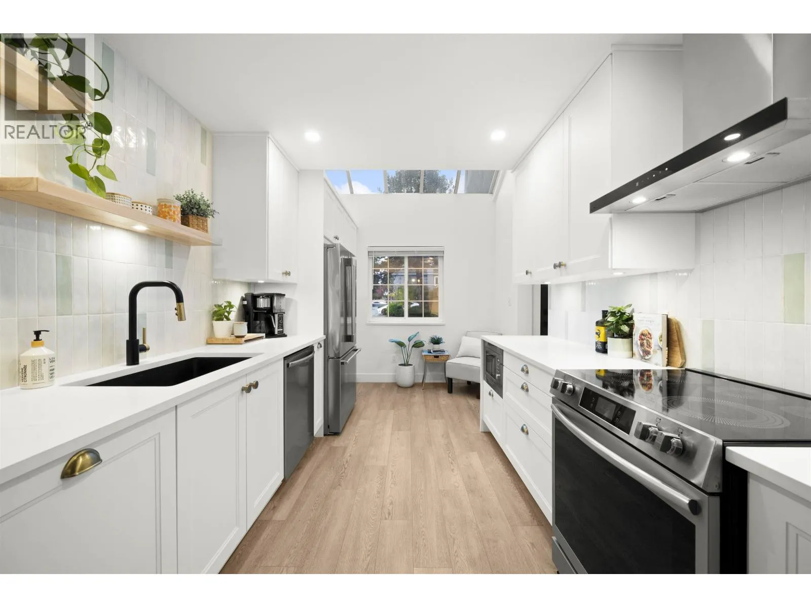 Willowlane Court: A boutique 16unit complex in the heart of Ladner.Rarely do you find an exquisitely renovated 2-level,End unit,3 bed/2.5 bath home offering 1590 sq.ft.of thoughtfully curated living.Every detail has been carefully chosen: custom millwork, designer lighting, a stunning renovated kitchen w/lrg skylight, artisan tile, open shelving+premium appliances. Updated baths, upgraded plumbing,HW on demand + a new gas FP add seamless comfort.The main level opens to a private W-facing yard w/lush landscaping + hot tub.Upstairs offers generous bedrooms, a primary with WIC, en-suite+ balcony, and side-by-side laundry. With a single car garage, 1 parking pad+ powder on main, this rare offering blends timeless style, privacy+exceptional walkability-Steps to transit, schools + downtown Ladner. Open House Saturday, December 6 1:00 PM- 3:00 PM. (id:27476)
