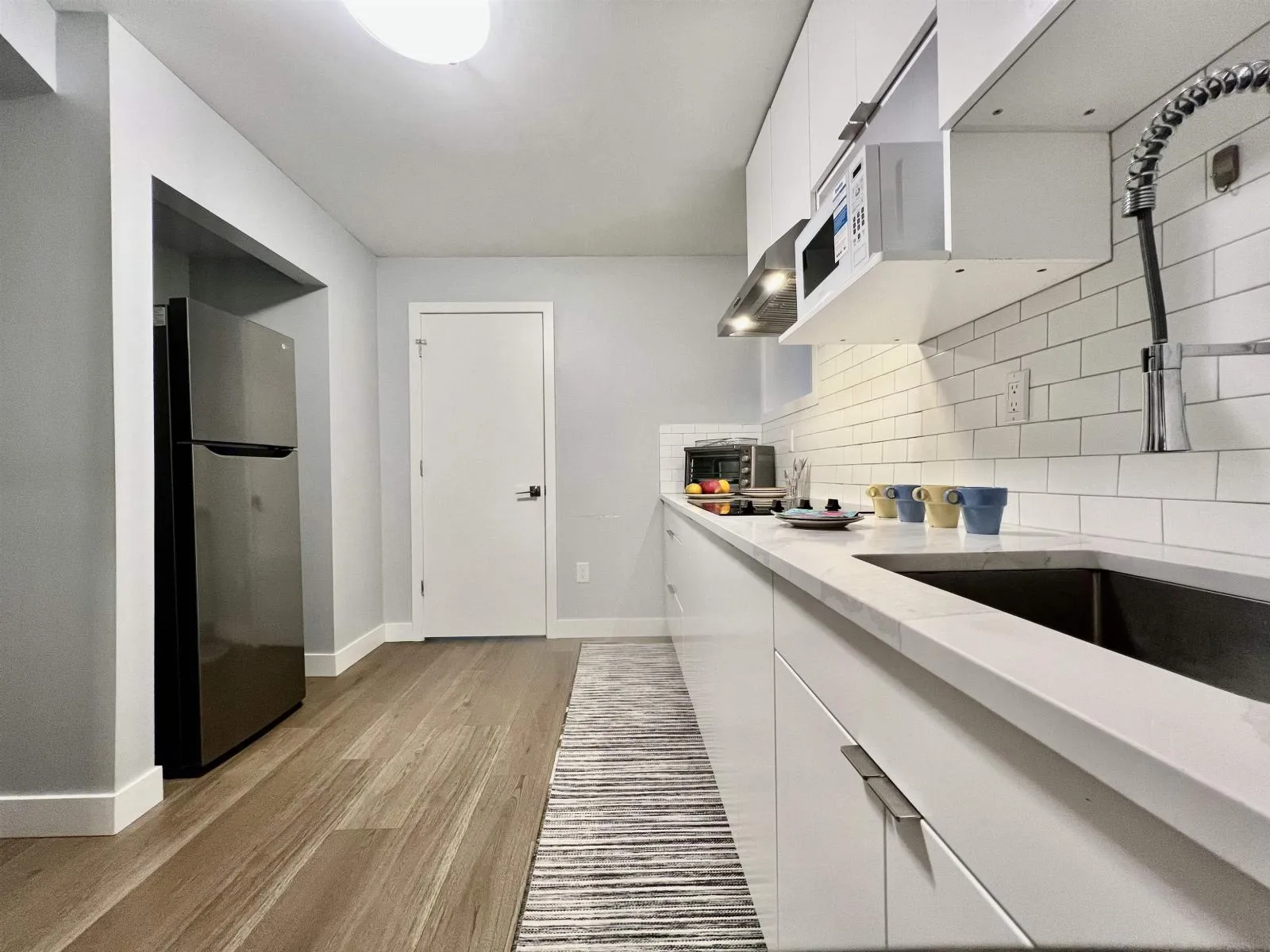 Newly renovated beautiful North Delta Sunshine Hills ground level semi-basement for rent - furniture (optional) Location: - Quite street - 5 mins walk to buses - 10 mins Walk to Heath and Seaquam Secondary (with IB program) - 4 mins drive to Walmart/Save-on-food and Sungod Recreation Centre - 7 mins drive to KPU Surrey and Highway 91 Features: - 900 sqft, 2 BRs, 1 living rm, 1 kitchen, 1 Bath with Separate entrance - Laundry in-suite - Street parking - Landlords live upstairs Lease: - C$1,700/month - Water, heat, electricity and Wi-Fi all included - Min. 1 year lease - Tenant Insurance needed - Available now Potential tenants: - No Smoking/No Pet/No Party/No Sublease - Reference, income, and credit checks will be required for successful tenants. (id:27476)