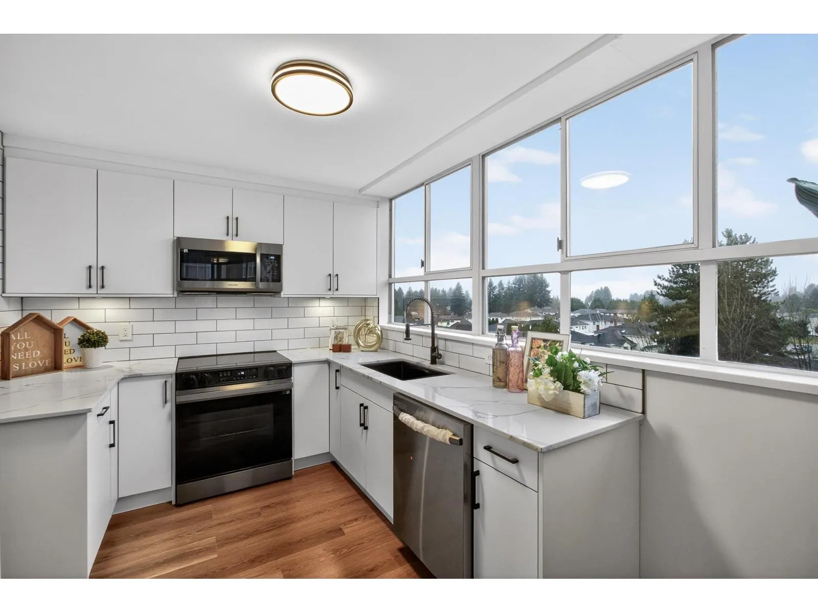 Welcome to your new home at Chancellor Place. Tucked away in the back quiet corner, you will find this bright, stunning, fully renovated unit with an open concept living, dining, kitchen area perfect for entertaining. Over 900 sq ft of living space which includes one bed, one bath plus flex room. Enjoy beautiful sunsets from your enclosed balcony/office. Situated next door to Sun Farms fresh fruits and vegs and within a block to Cactus Club, Timmy's, The Keg, liquor store, banks, schools, pub and plenty of fast food joints and Indian restaurants. Chancellor Place offers Underground Parking, Storage locker, Gym, Indoor Pool and Beautiful Gardens. Easy access to all the major highways. (id:27476)