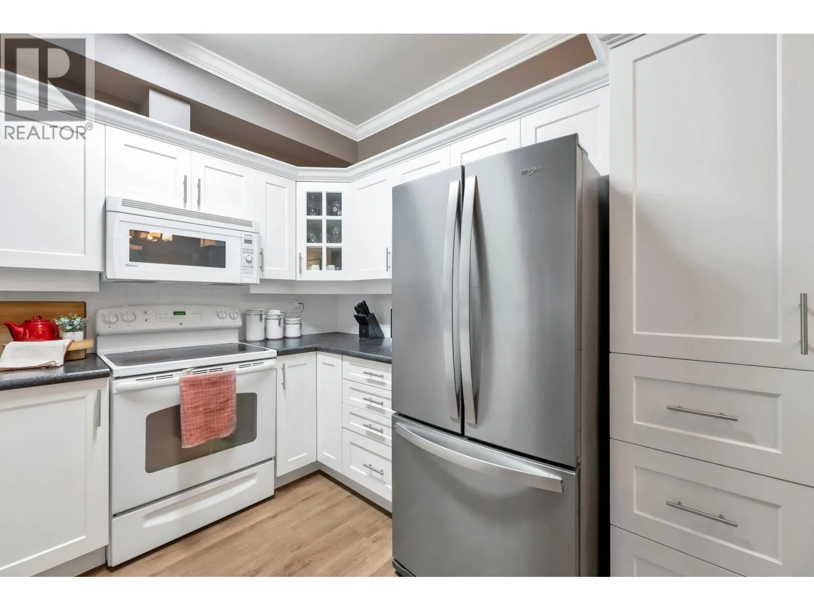 Adlington Court! Rarely available 2 bedroom, 2 bathroom plus dedicated den condo, an exceptional find, as true den spaces are seldom offered. The versatile den is perfect for working from home, crafts, kids´ room, or guest space. Recent updates & features include new building piping, laminate flooring, Hunter Douglas blinds, & crown moulding throughout. The spacious primary bedroom features two closets and a private ensuite, while bright living and dining areas offer 9-foot ceilings. A large updated kitchen with eating area, cozy gas fireplace, and gas BBQ hookup add comfort. Enjoy an east-facing balcony, secure parking, and a storage locker, with gas included in the maintenance fee. Walk to shopping, amenities, and transit. Nothing to do but move in, Call Today! (id:27476)