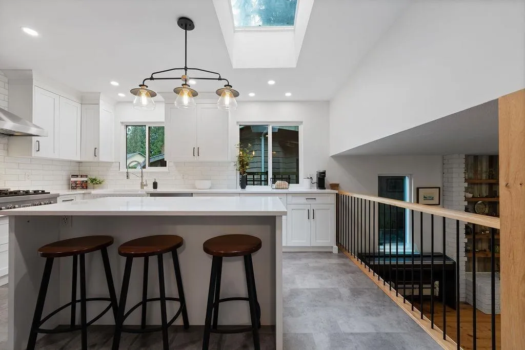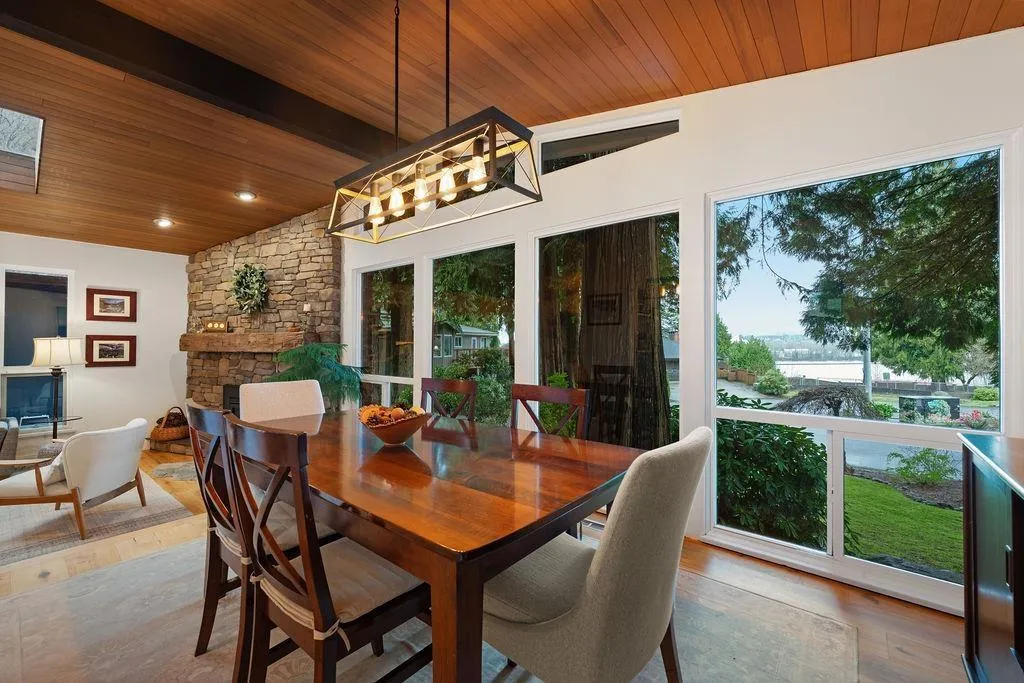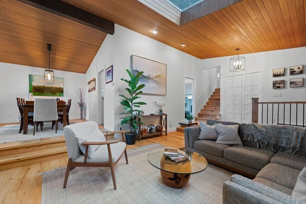 Your West Coast Oasis with stunning city, mountain & river VIEWS awaits! Perched on a quiet cul-de-sac, this extensively upgraded home (w/ $200K in renos!) offers approx 2,426sf of living space on an oversized 13,000+ sf lot, backing on to a private ravine. Experience Whistler retreat vibes w/ vaulted cedar plank ceilings, skylights drawing in natural light, upgraded thermal windows, elevated dining room w/ views, & a beautiful brick wood-burning fireplace. A well-appointed kitchen features SS appliances, casual breakfast nook, and overlooks the lower-level family room w/ access to an expansive backyard. Plus, a covered breezeway leading to a large double garage, RV Parking, & a rear workshop/shed. This is truly a one-of-a-kind GEM property that cannot be missed - book your showing today! (id:27476)