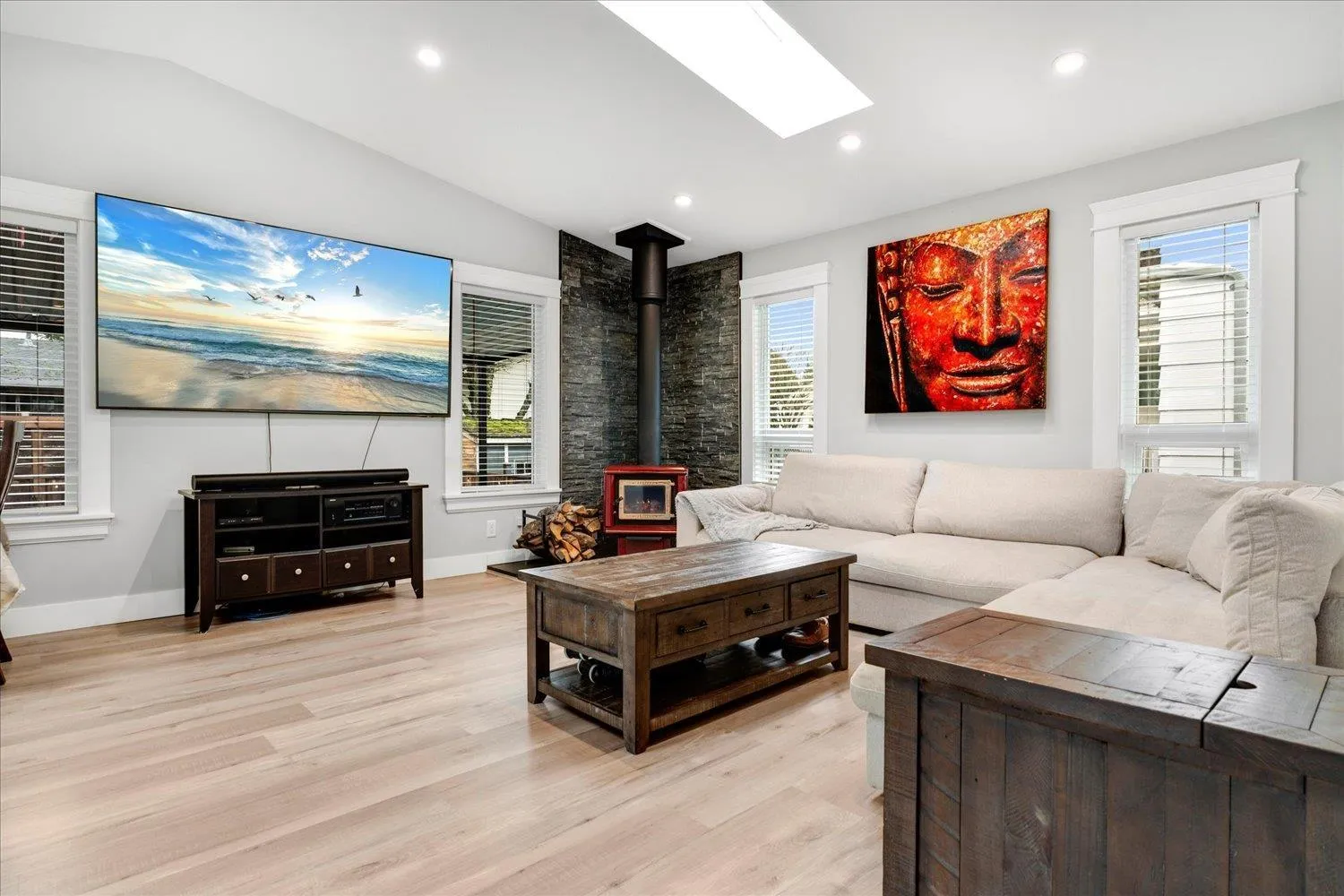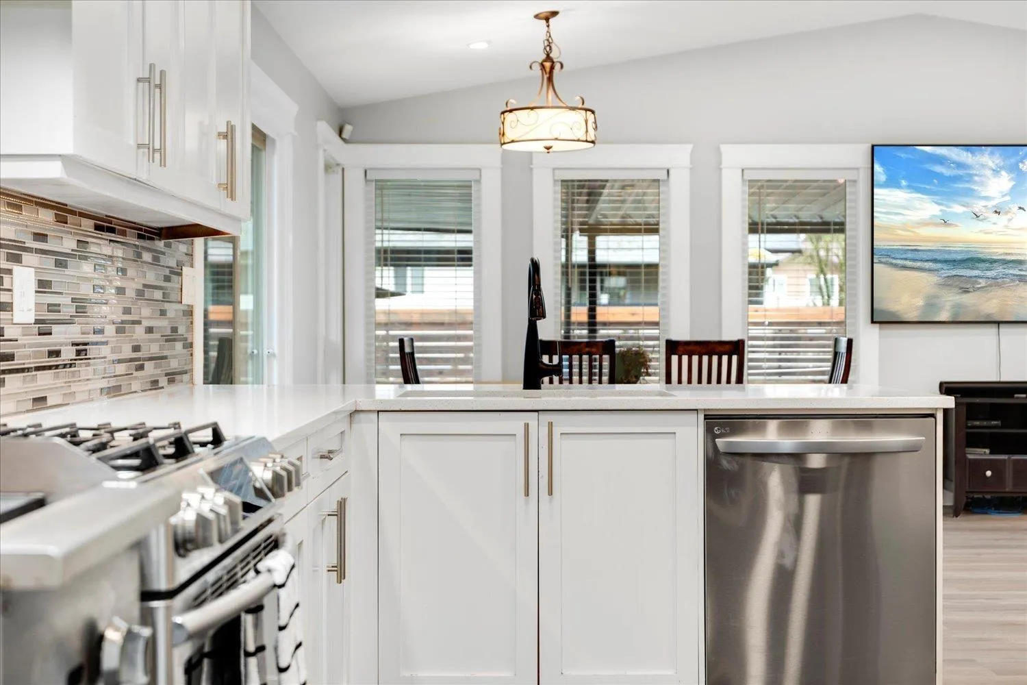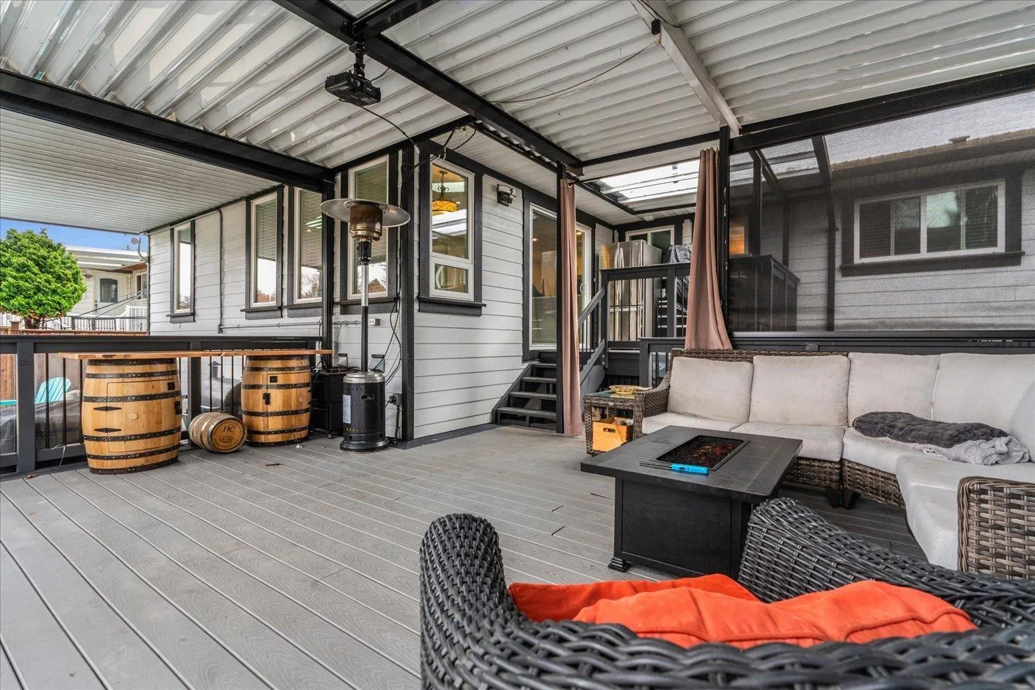 Located on a quiet cul-de-sac, this tastefully updated 5-bed, 3-bath family home starts w/ a bright living room featuring a custom feature wall w/ NG fireplace that leads into your office/den. Step into the custom kitchen w/ shaker cabinets, quartz counters, glass mosaic backsplash, undermount sink & gas range w/ griddle. Enjoy the bright family & dining room addition w/ vaulted ceilings & cozy wood stove, perfect for gatherings. Upstairs, 3 bedrooms + updated baths. The lower level offers a 1-bed suite + 1 additional bedroom. Summer days are made for the low-maintenance saltwater pool, or enjoy the covered trex deck w/ roll up shades. Exterior is finished w/ Hardie-plank siding, stone & permanent holiday lights. Walking distance to Chalmers Elementary, Burnsview Secondary & Chalmers Park (id:27476)