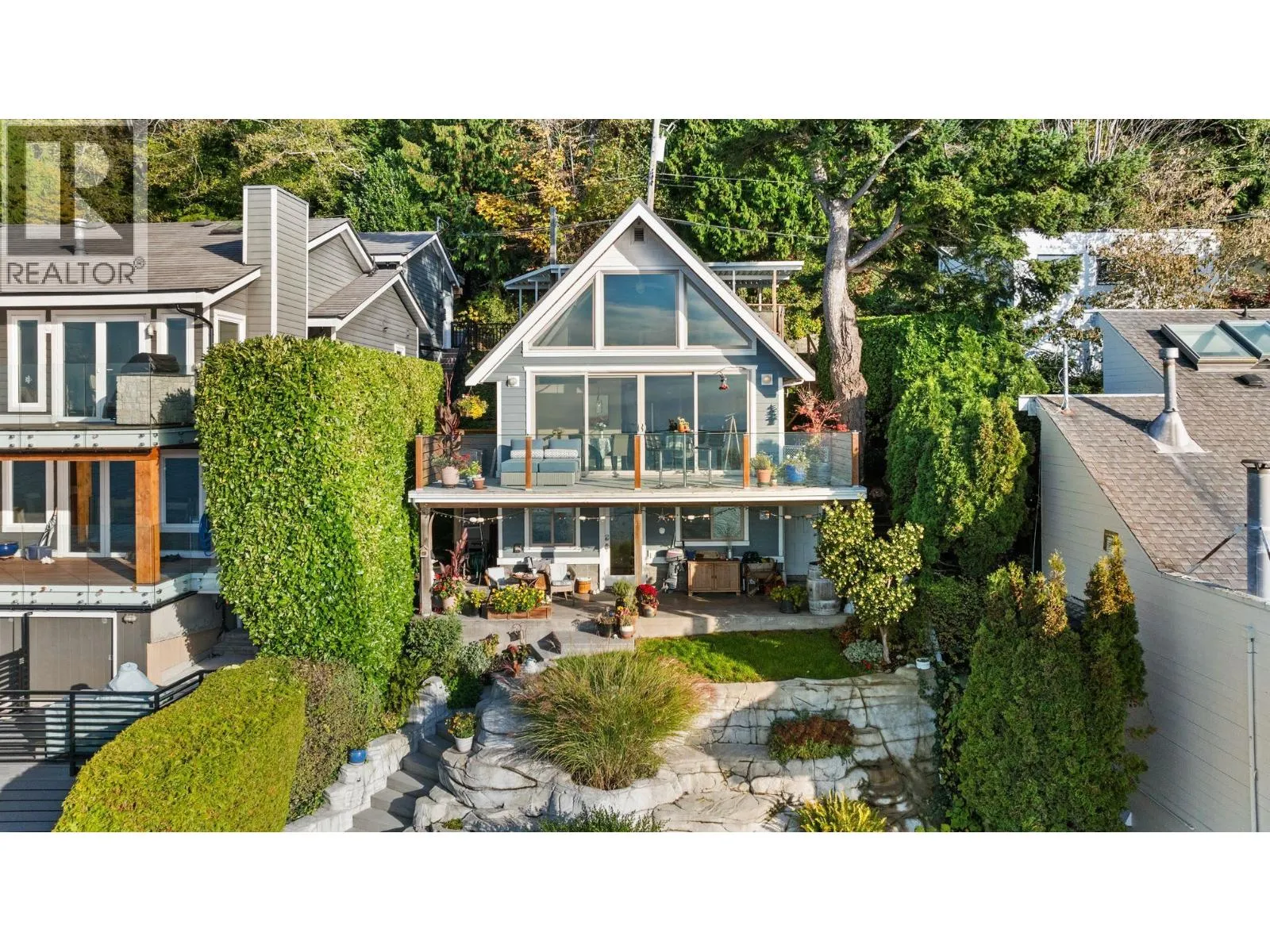 TSAWWASSEN BEACH WATERFRONT - A rare, romantic beachfront escape where ocean, sky, and sunset take centre stage. The main living space is framed by cathedral ceilings, decorative timber beams, and floor-to-ceiling windows opening to a glass-paneled deck at the water's edge. Beautifully updated with metal roof, new siding, reclaimed wood accents, new windows & doors, and upgraded electrical. One bedroom with full bath on the main and a second bedroom below with full bath and heated walk-out patio. Terraced concrete landscaping creates private outdoor living with lighting and hot tub. Moor your boat out front, launch a kayak from your seawall, and live the beach --quietly, beautifully. (id:27476)