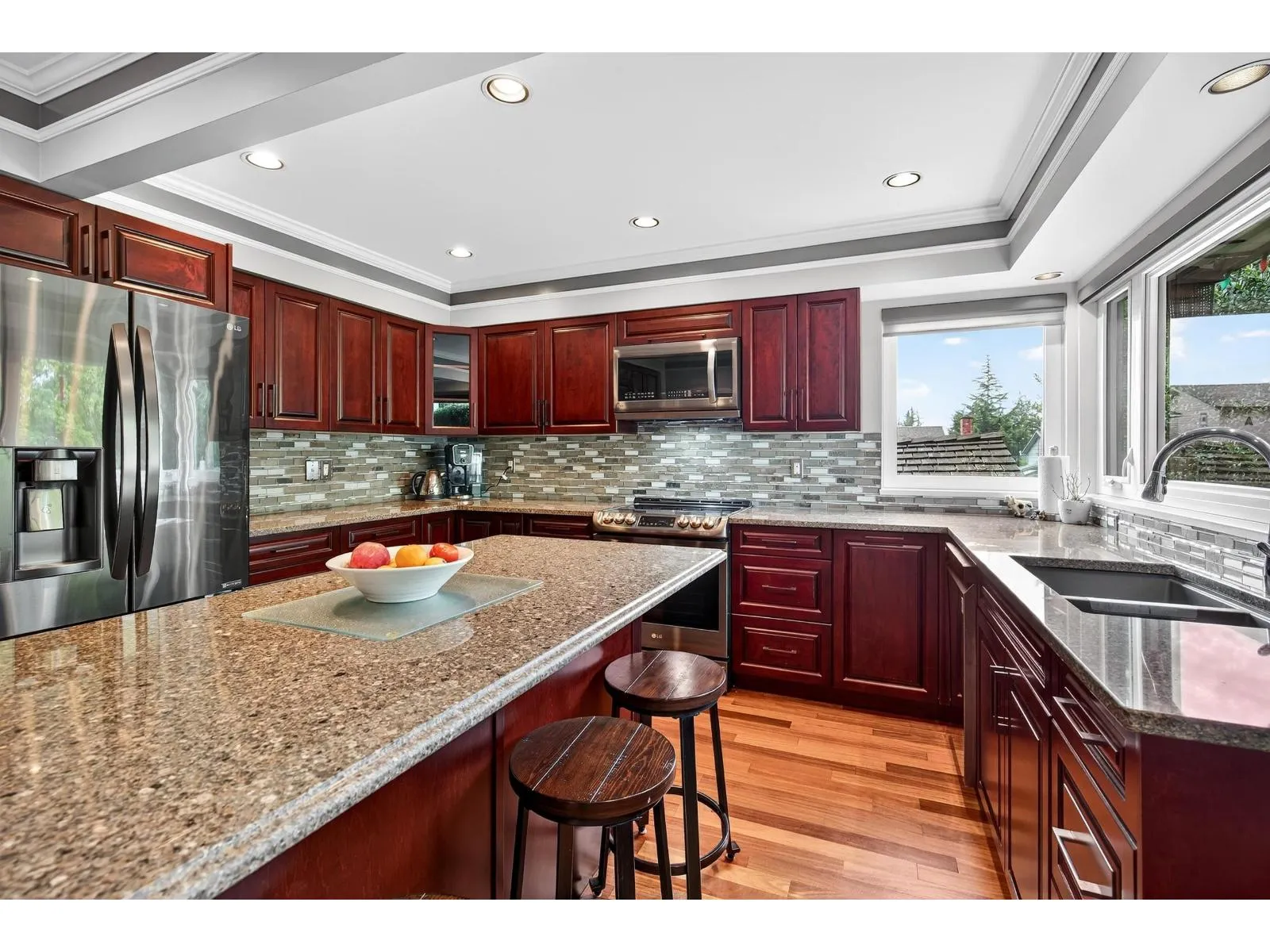 Perfect family home! Meticulously maintained and fully renovated 3-level split. Walk into a stunning foyer with high ceilings and staircase. Renovated kitchen w/ cherry cabinetry, quartz counters, and ss appliances, eating area overlooking the family room. Spacious dining area and living room, bright and inviting with hardwood floors and cozy stone fireplace. Upstairs, the primary suite includes a massive walk-in closet and 4pcs ensuite, plus three additional bedrooms and a 4-piece bath. Outside, enjoy a private oasis with lush landscaping, koi pond, sitting areas and garden shed. Double Garage, tons of parking and just a 7 min walk to Chalmers Park & School Grounds, ice rinks, swimming pool, playgrounds, trails and so much more. (id:27476)