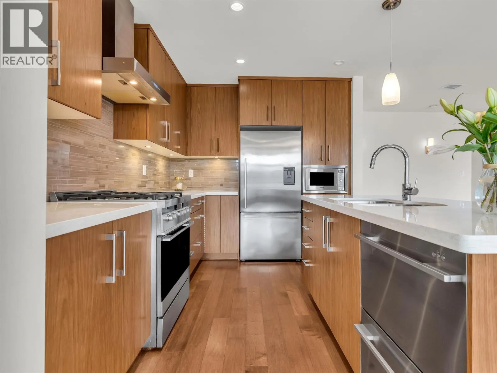 TSAWWASSEN SPRINGS - GOLF RESORT LIVING at its FINEST! This stunning, rare & super spacious 1650 sq ft, 3 bedroom suite HAS IT ALL with 9 ft ceilings, high-end kitchen with top of the line Fisher Paykel appliances, entertainment sized living/dining room, large master bedroom with walk in closet, separated 2nd bedroom with ensuite, 3rd bdrm for home office/den + a well organized laundry/storage room. The sun soaked oversized 22.5 X 12 ft south exposed balcony provides gas hook up for BBQ & patio heater + 180 degree views of the resort, bluff & Gulf Islands to the west. Concrete construction, geothermal heating/cooling & EV parking all within a 5 minute walk to golf course, driving range, fitness centre, Pat Quinn´s Restaurant, Nat´s Coffee & Newman´s Fine Foods. Come & enjoy the lifestyle!! (id:27476)