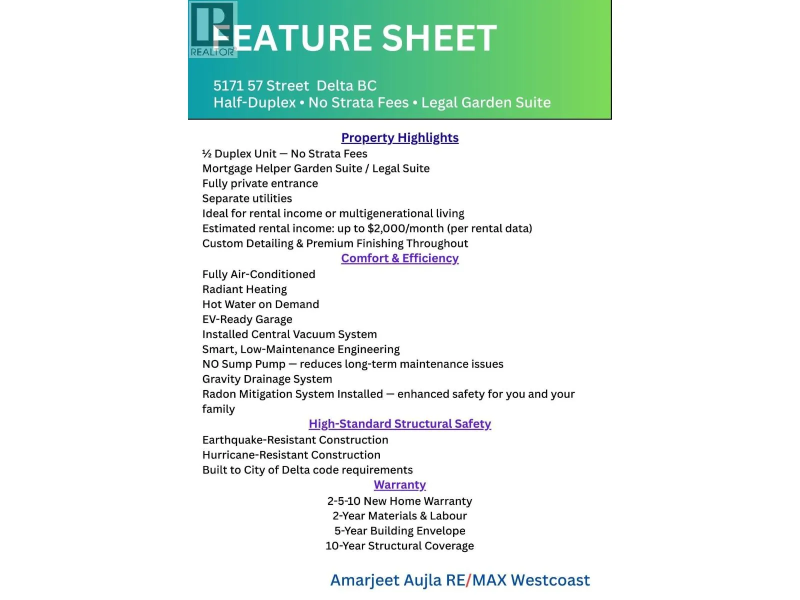 This brand-new 2,000 square ft residence offers the space and feel of a detached home-no compromises. Thoughtfully designed with modern finishes, generous room sizes, this home compares directly with detached properties while delivering exceptional added value. A detached garden suite with this 1/2 Duplex provides approximately $1,900/month in rental income, making it ideal as a mortgage helper, in-law accommodation, or private home office. This additional income significantly reduces the effective cost of ownership and sets this property apart from similarly priced homes. Getting a small community feeling in Ladner with modern features like Central Vacuum, fully Air Conditioned, EV Ready, Radiant heating, Close to schools shopping, BC Ferries, 15 minutes to Richmond. Move in ready! (id:27476)