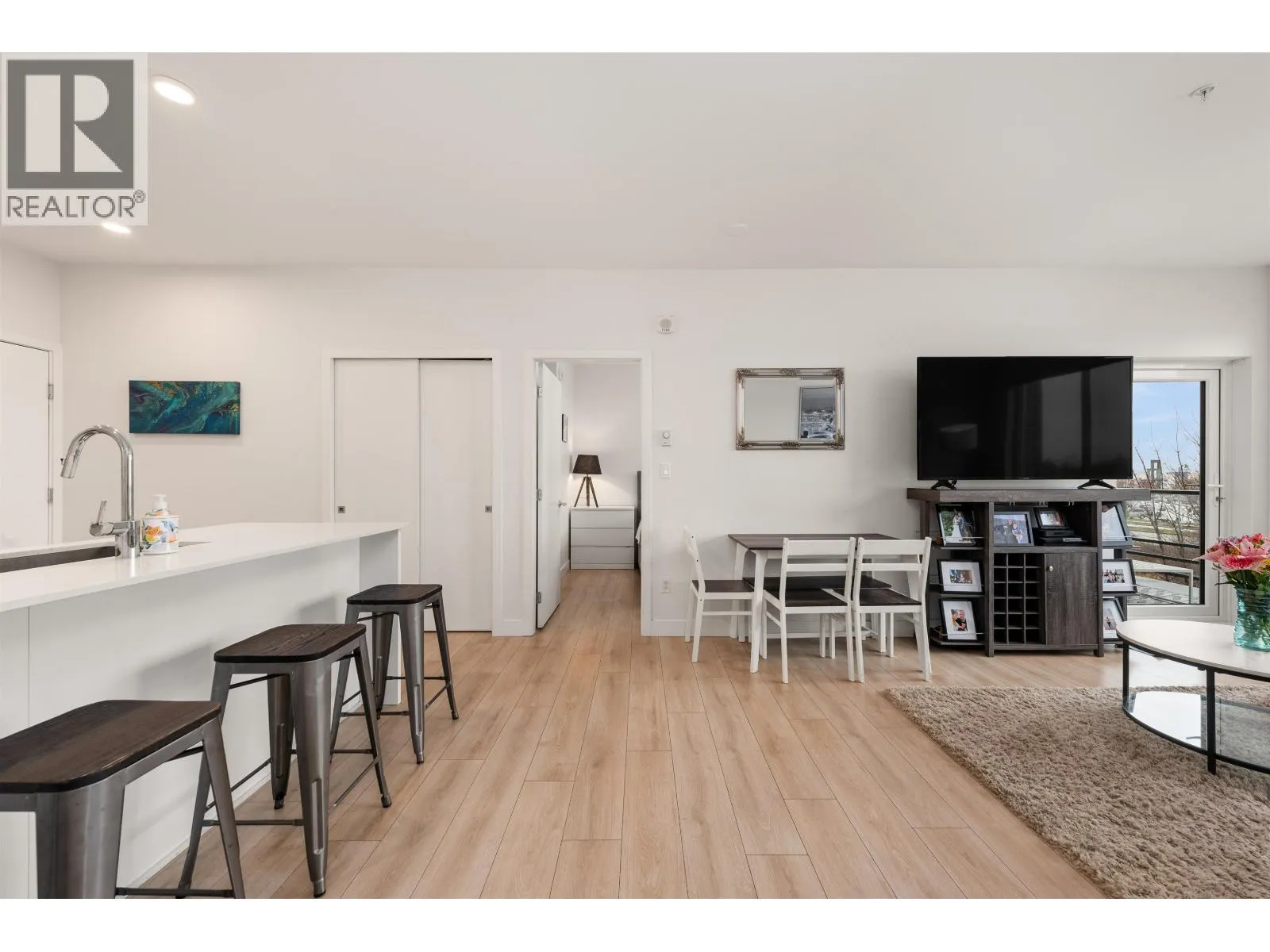 Welcome to Peregrine South, nestled in the vibrant Tsawwassen community. Discover a bright and airy second-floor condo, featuring two bedrooms and two bathrooms, complemented by an east facing patio for serene evenings. Functional floorplan with an open-concept kitchen, with bar seating for three, stainless steel appliances-including a double-door fridge-and elegant quartz countertops alongside a chic, oversized single under-mount sink. Eight-foot ceilings enhance the sense of space and luxury throughout. Enjoy the convenience of a full-size stacking front-load washer and dryer, 1 secure underground parking, and a dedicated bike storage locker. Residents have access to exceptional amenities, including a fitness centre and clubhouse. Steps to the water, and shopping come see for yourself! Open House Saturday Jan 31st, 2026 and Sunday Feb 1st, 2026 (id:27476)