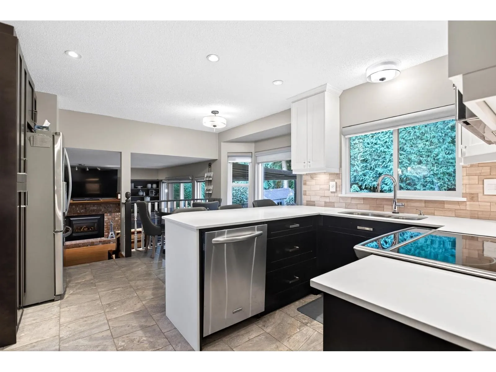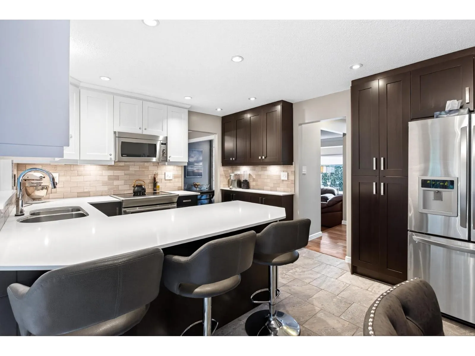 Come home to your peaceful oasis in a quiet cul-de-sac, once you are here you never want to leave. Perfectly situated on a private greenbelt with a sunny south-facing backyard. This beautifully renovated 4 level split home features solid hardwood floors, a newer kitchen with quartz countertops, high-end appliances, Atlas custom cabinetry, & a convenient butler bar. Enjoy a massive, covered sundeck and patio with a 50-year guarantee-ideal for BBQs and entertaining. Extended side yard offers space for a pool or? Renovated main bath includes dual sinks, skylight, and custom storage cabinets. Den off the entry, custom windows with built-in screens, LED décor switches and dimmers. Unfinished bsmt is roughed in for bath & f/p. Two mature apple trees complete this move in ready oasis. Act Now! (id:27476)