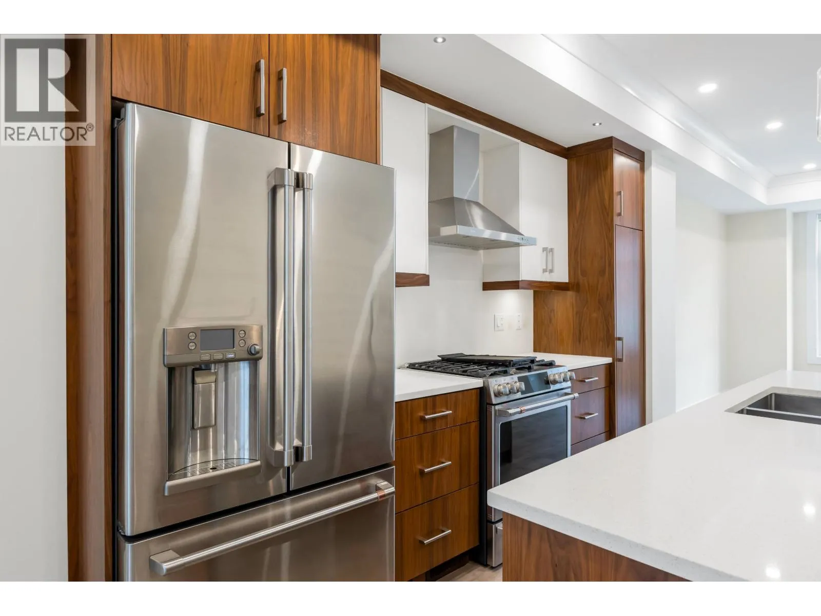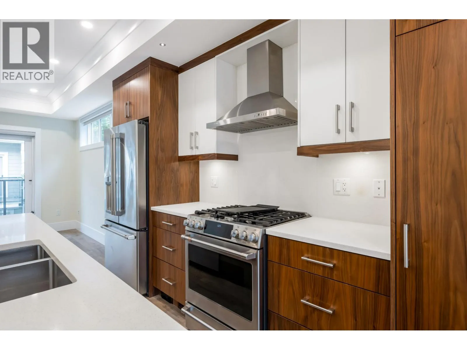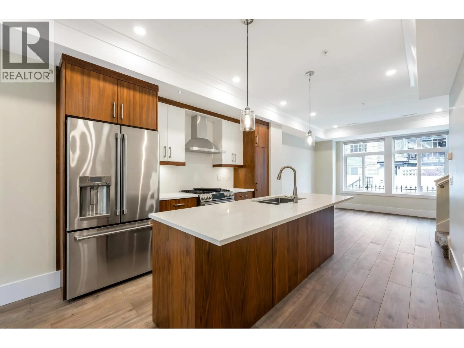 Welcome to Aura, a collection of contemporary spaciously planned townhomes in the heart of Ladner Village. Offering quality construction built by Maskeen Group. Featuring gourmet kitchen with designer GE Cafe stainless steel appliances, quartz counters and large center island, 3.5 spa-like bathrooms, 3 bedrooms plus den that can easily be a 4th bedroom plus on demand HW and Geothermal heating and cooling system. A double garage with plenty of storage, deck off kitchen and private yard, makes this a perfect family home. Prime location just minutes to all amenities, town center, parks and transit. Private and quiet corner unit. (id:27476)