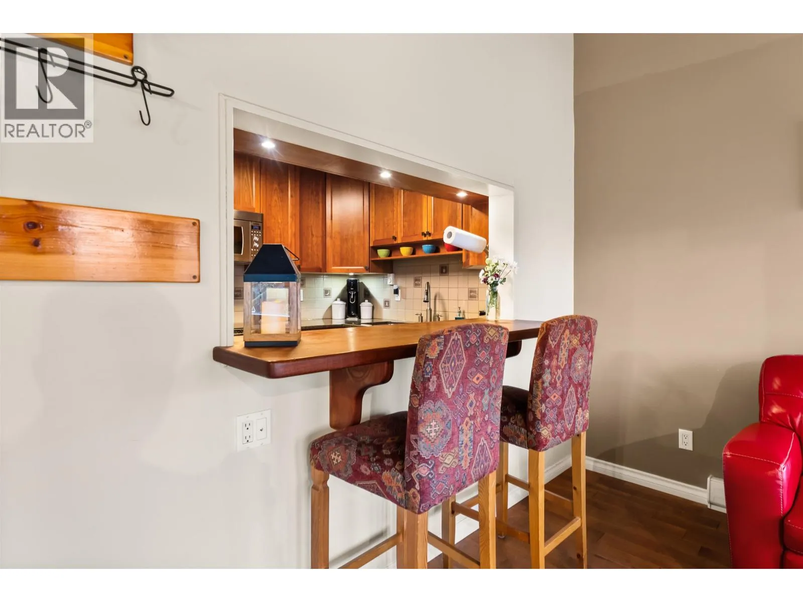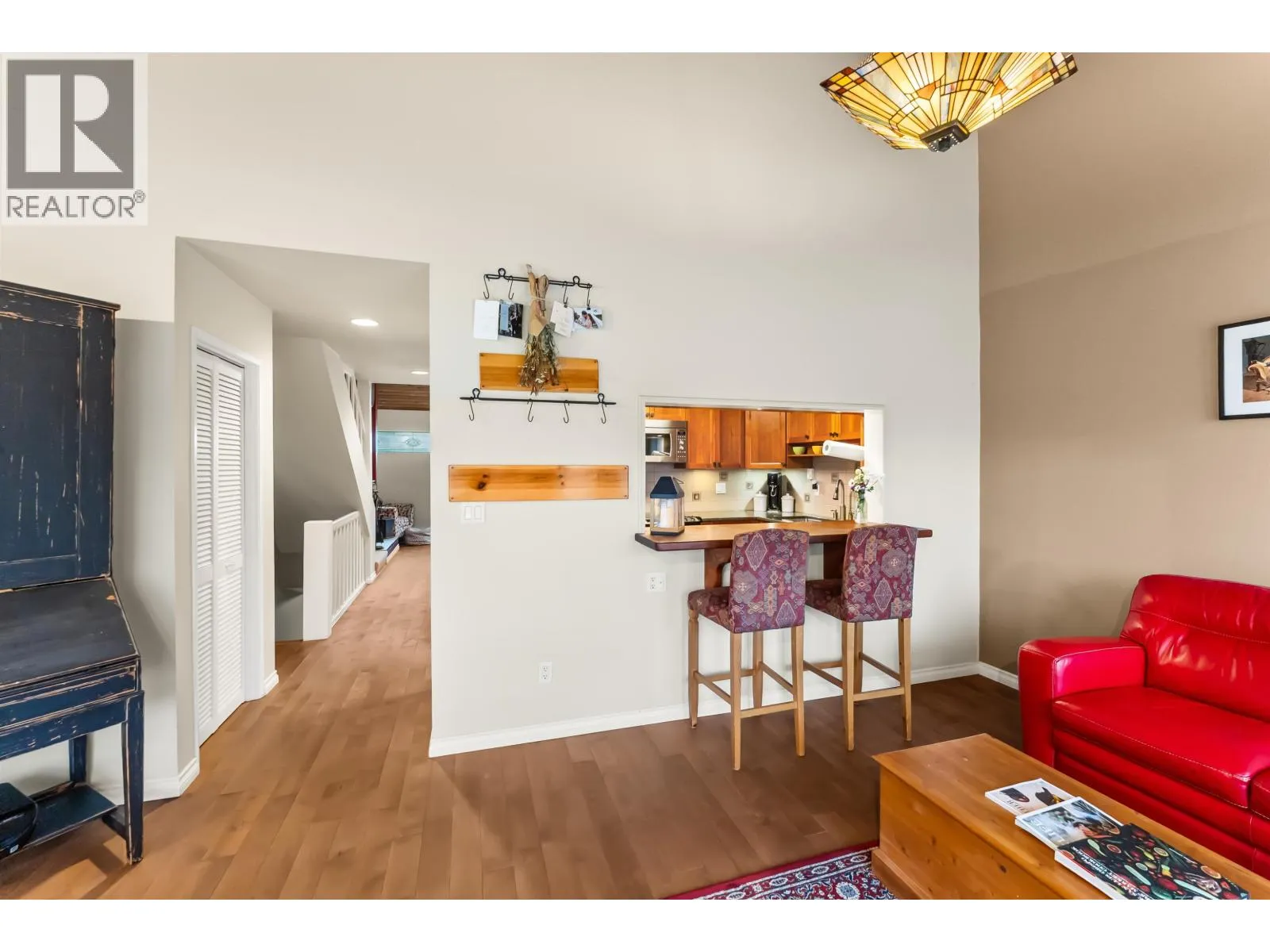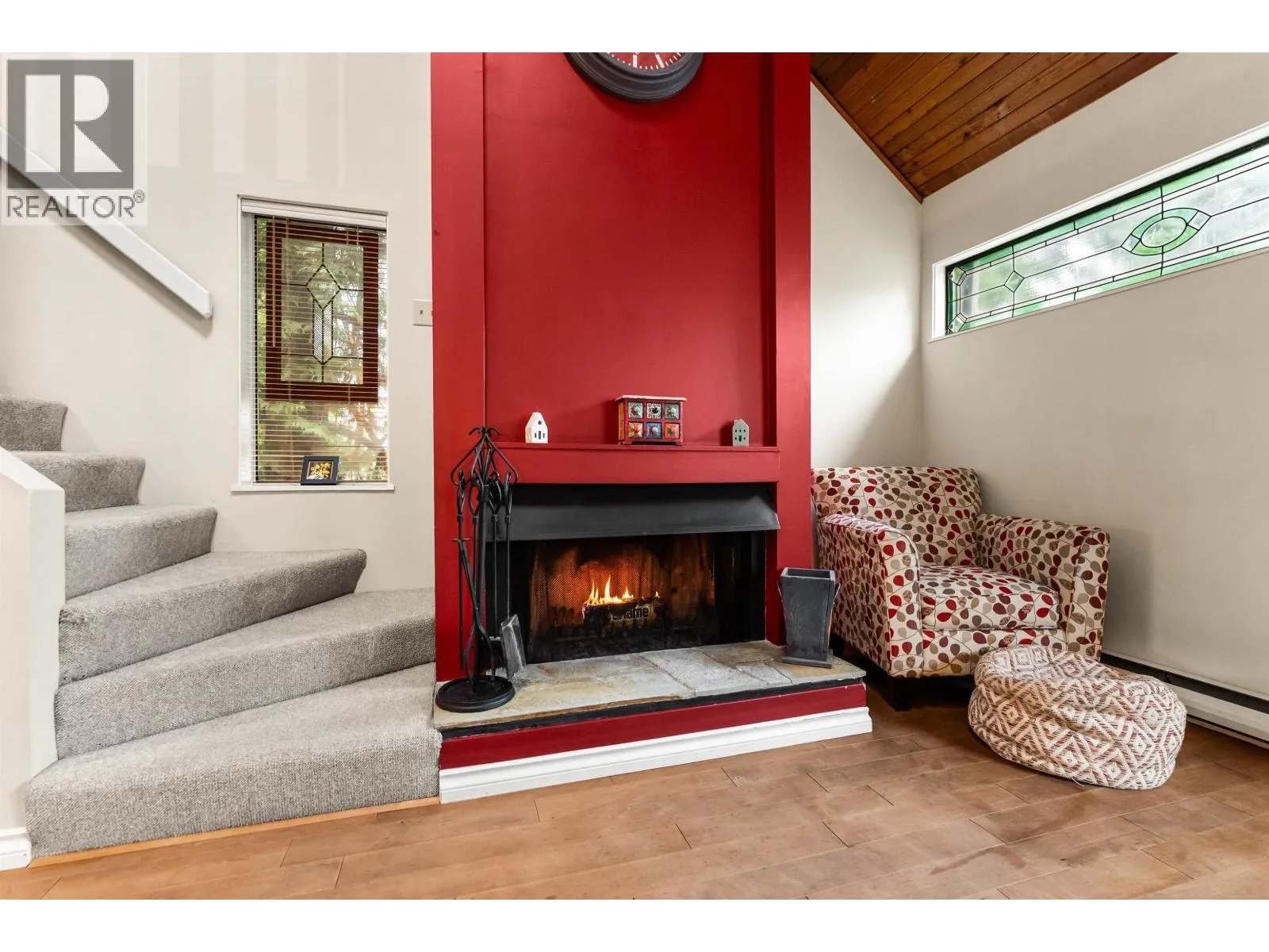 FAIRWAY VIEWS WYND! Private garden-view end-unit townhome offering 3 bedrooms and an exceptional sense of space and seclusion. The primary bedroom opens to a serene, treed patio, while a large fenced side yard provides rare outdoor flexibility for kids, pets, and entertaining. French doors and silver maple hardwood flooring add warmth and flow throughout. The well-appointed kitchen features extensive cabinetry and built-in storage - designed for real everyday living. Spa-inspired ensuite with soaker tub, rain shower, and radiant in-floor heat. The expansive living room is anchored by a wood-burning fireplace, creating an inviting gathering space. Generous upper bedroom adds versatility for guests, home office, or hobby area. Outstanding location just one block to the town centre. (id:27476)