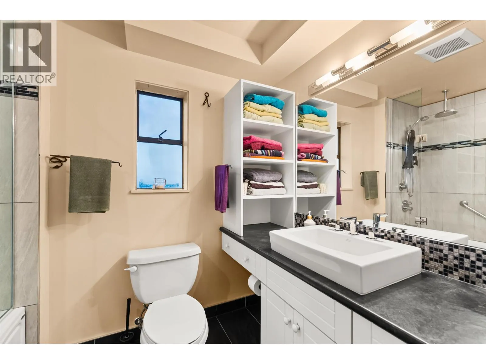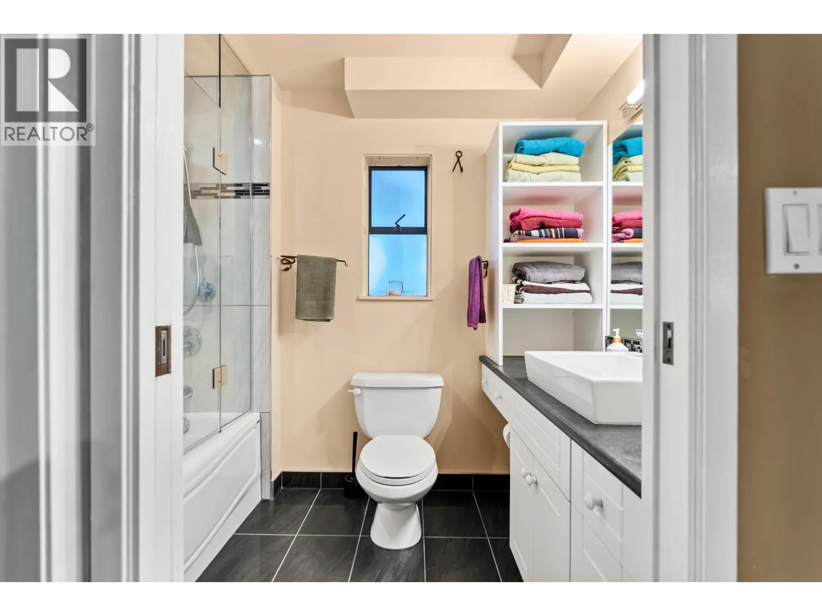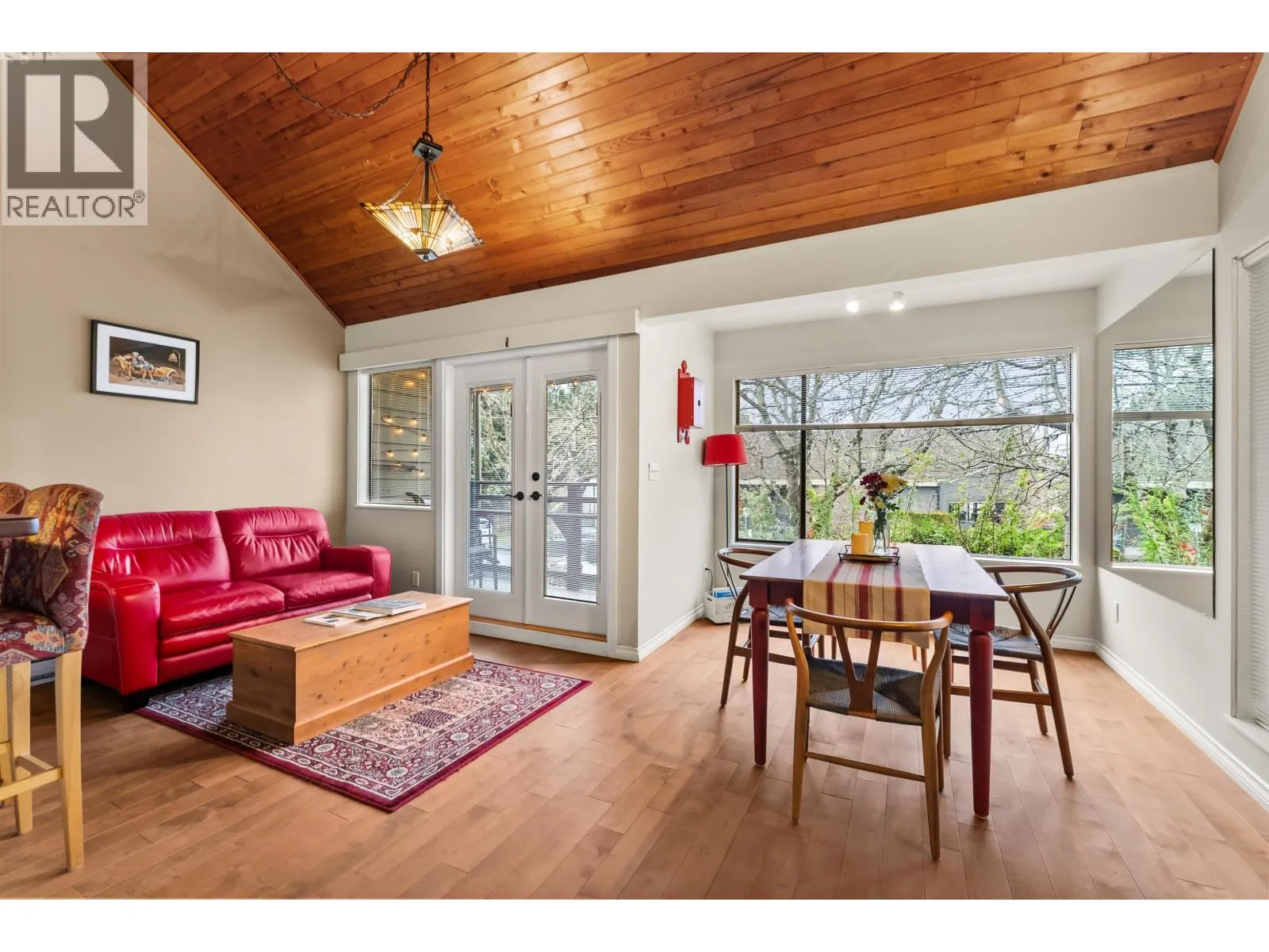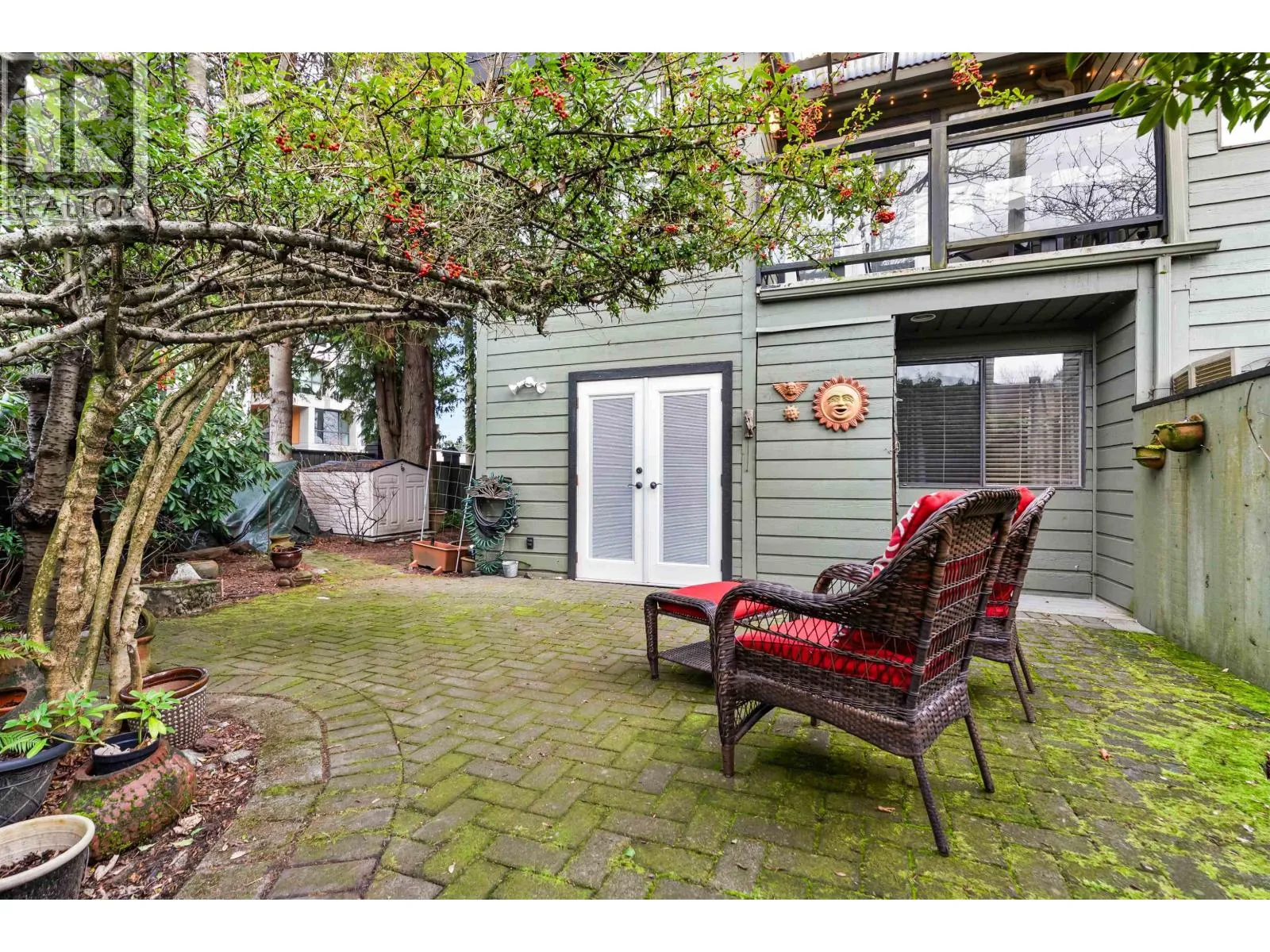 FAIRWAY VIEWS WYND! Private garden-view end-unit townhome offering 3 bedrooms and an exceptional sense of space and seclusion. The primary bedroom opens to a serene, treed patio, while a large fenced side yard provides rare outdoor flexibility for kids, pets, and entertaining. French doors and silver maple hardwood flooring add warmth and flow throughout. The well-appointed kitchen features extensive cabinetry and built-in storage - designed for real everyday living. Spa-inspired ensuite with soaker tub, rain shower, and radiant in-floor heat. The expansive living room is anchored by a wood-burning fireplace, creating an inviting gathering space. Generous upper bedroom adds versatility for guests, home office, or hobby area. Outstanding location just one block to the town centre. (id:27476)