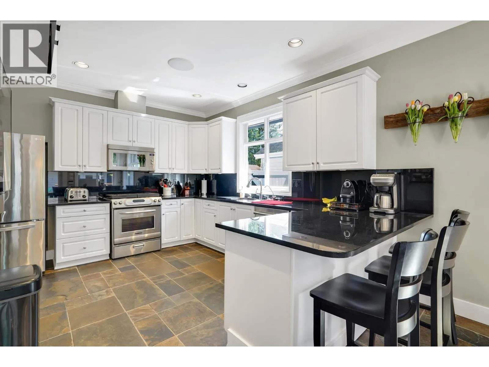 Beach Grove living! Beautifully maintained 2,374 square ft family home on a 5,783 square ft lot with sunny WEST exposure and a private deck with sunken hot tub - made for summer entertaining. Ideal layout with 4 bedrooms, 3 bathrooms, and a detached garage for hobbyists or car enthusiasts. Gourmet kitchen features shaker cabinetry, granite counters, and stainless steel appliances, open to the family room and outdoor space. Spacious primary suite with walk-in closet and 5-piece ensuite. Enjoy morning coffee on the charming front porch. Move in and enjoy summer in this sought-after neighbourhood!OPEN HOUSE / Realtor OPEN Friday February 6 from 10-11 AM (id:27476)
