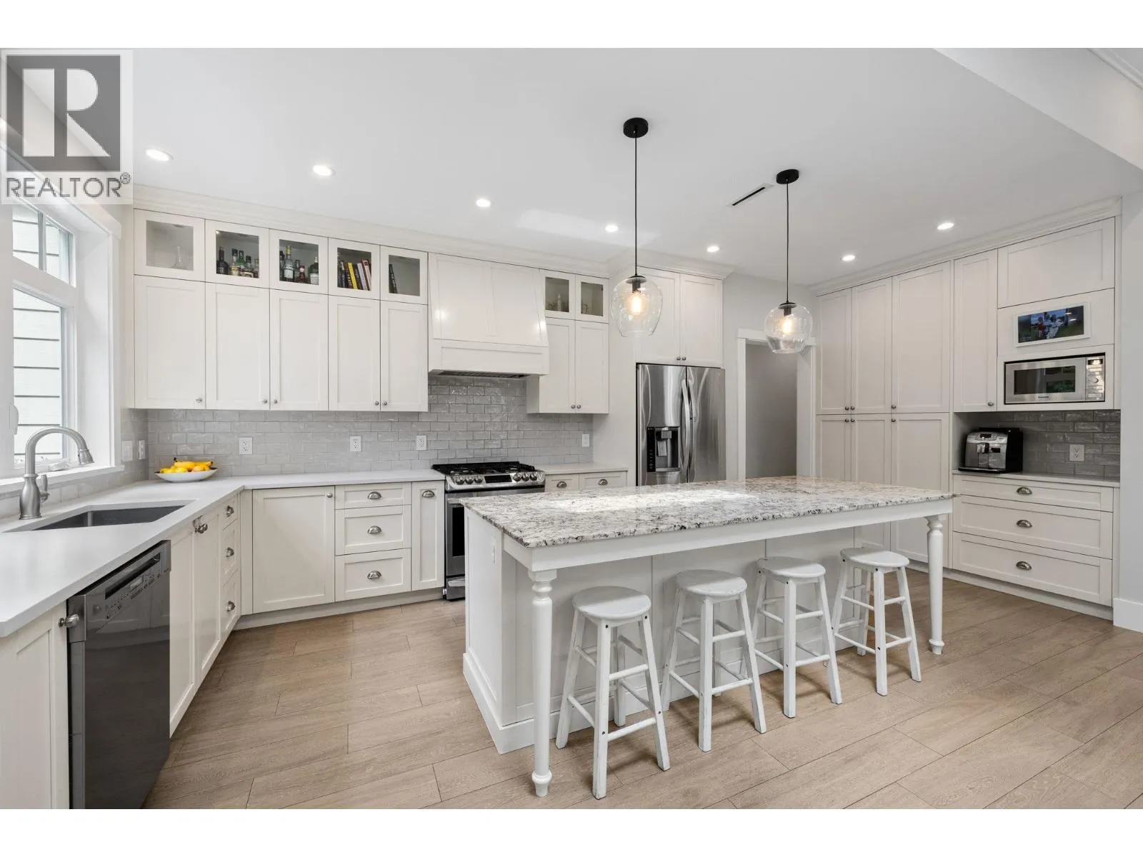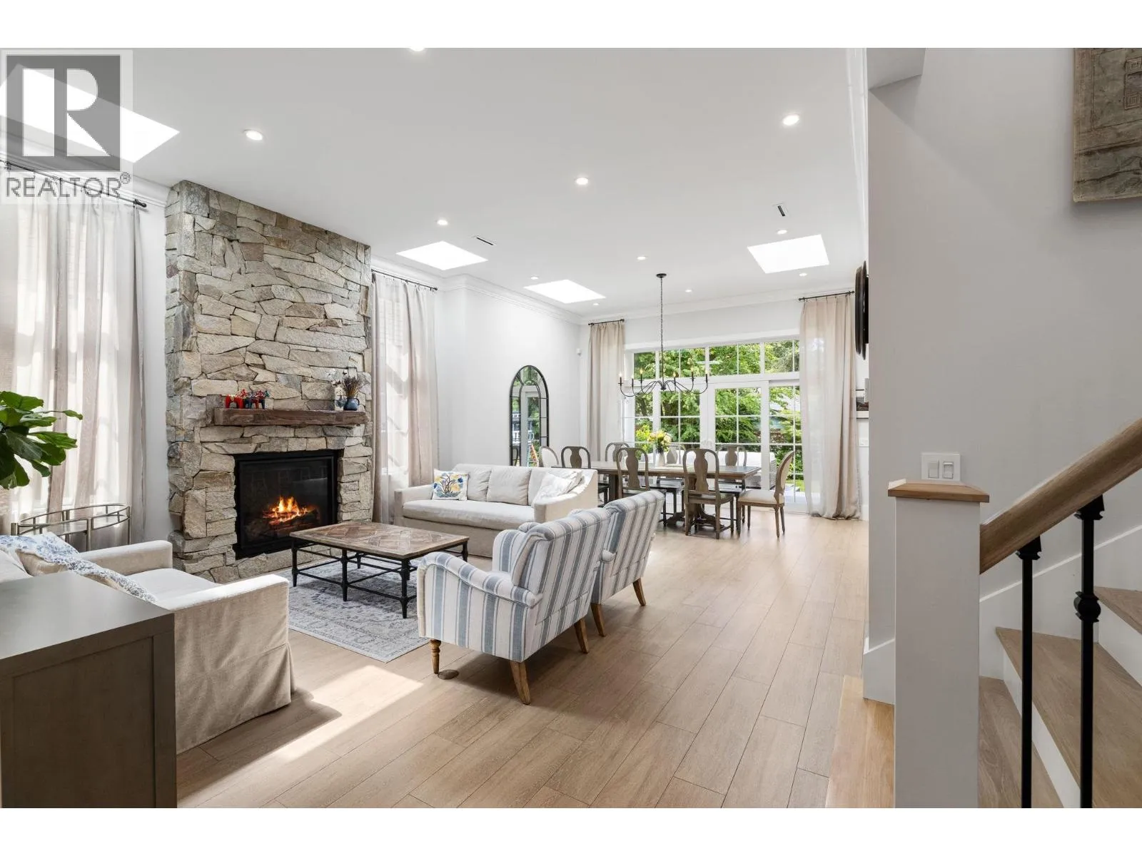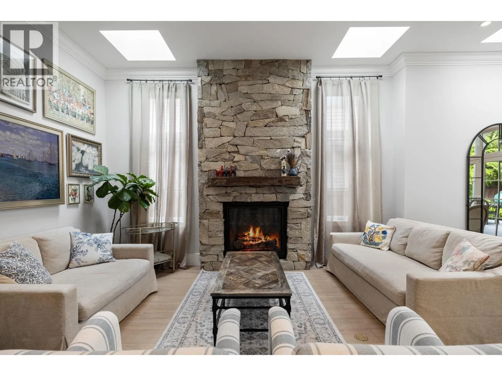 This one-of-a-kind residence offers exceptional craftsmanship and a seamless blend of indoor and outdoor living. Meticulously designed, this 2,731 sq. ft. home features an open-concept floor plan with soaring 11-ft ceilings, creating an airy and expansive atmosphere. Timeless stone finishes add elegance throughout. A large, covered deck off the living room extends the living space outdoors, perfect for entertaining or relaxing. Enjoy breathtaking ocean views stretching to White Rock from the private rooftop deck. The home offers two luxurious primary bedrooms, each with a spa-inspired ensuite. A striking floor-to-ceiling stone fireplace anchors the living area, while in-floor heating ensures year-round comfort. Downstairs guest/in-law suite with bathroom and separate entrance provides added flexibility. Double garage offers ample parking and storage. (id:27476)