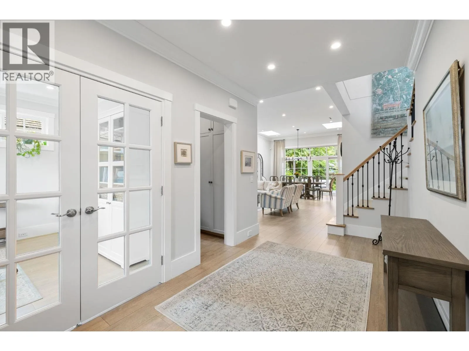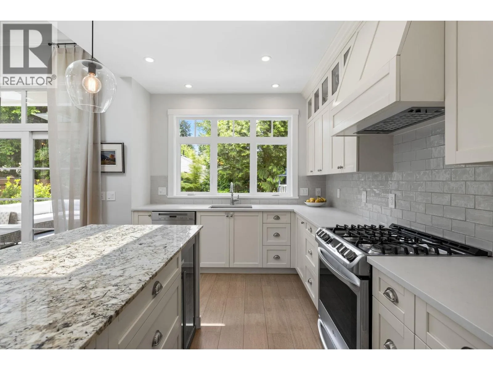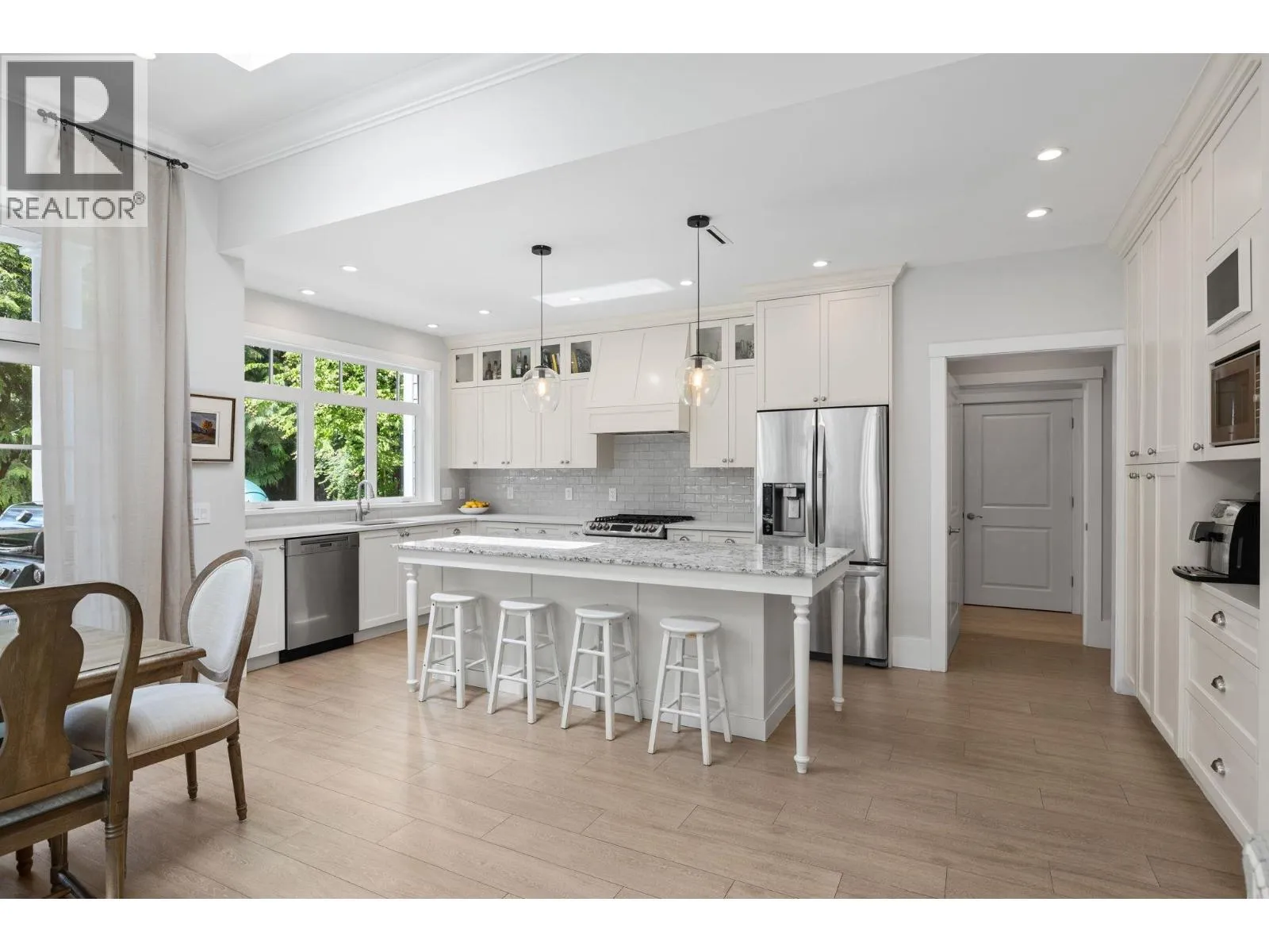 This one-of-a-kind residence offers exceptional craftsmanship and a seamless blend of indoor and outdoor living. Meticulously designed, this 2,731 sq. ft. home features an open-concept floor plan with soaring 11-ft ceilings, creating an airy and expansive atmosphere. Timeless stone finishes add elegance throughout. A large, covered deck off the living room extends the living space outdoors, perfect for entertaining or relaxing. Enjoy breathtaking ocean views stretching to White Rock from the private rooftop deck. The home offers two luxurious primary bedrooms, each with a spa-inspired ensuite. A striking floor-to-ceiling stone fireplace anchors the living area, while in-floor heating ensures year-round comfort. Downstairs guest/in-law suite with bathroom and separate entrance provides added flexibility. Double garage offers ample parking and storage. (id:27476)