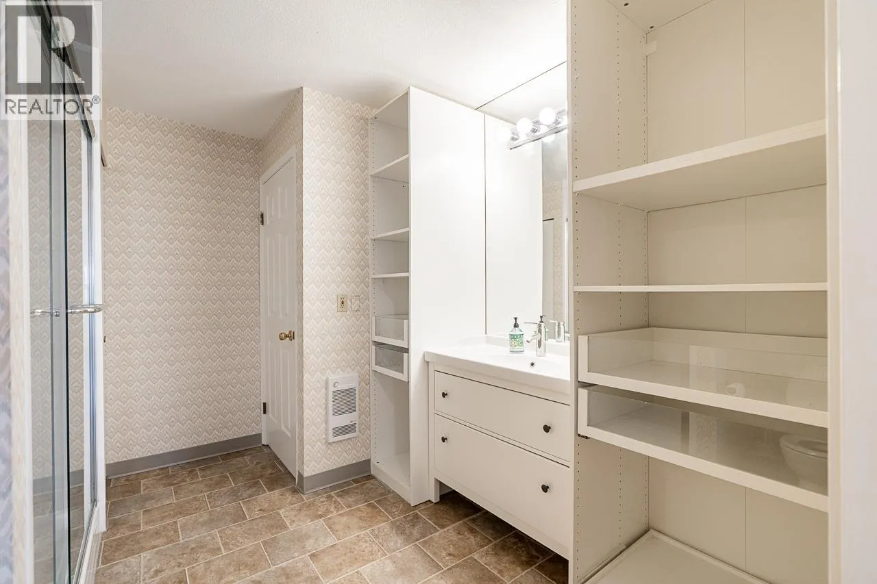 Welcome to the Warm and Charming Park regent Estates. This Oversized 1bdrm is waiting for its next owner. Enjoy the open layout with room for your house sized furniture, this is a rare offering. many updates incl. Custom walkin shower '21, Fresh paint '25, H/T water tank '20, Washer '25 and more. Cozy gas fireplace, covered balcony, insuite laundry room, parking and storage what more can you ask for. This exceptionally well maintained self-managed building is centrally located in walking distance to shopping, transportion, amenities and more. Book your viewing today! (id:27476)