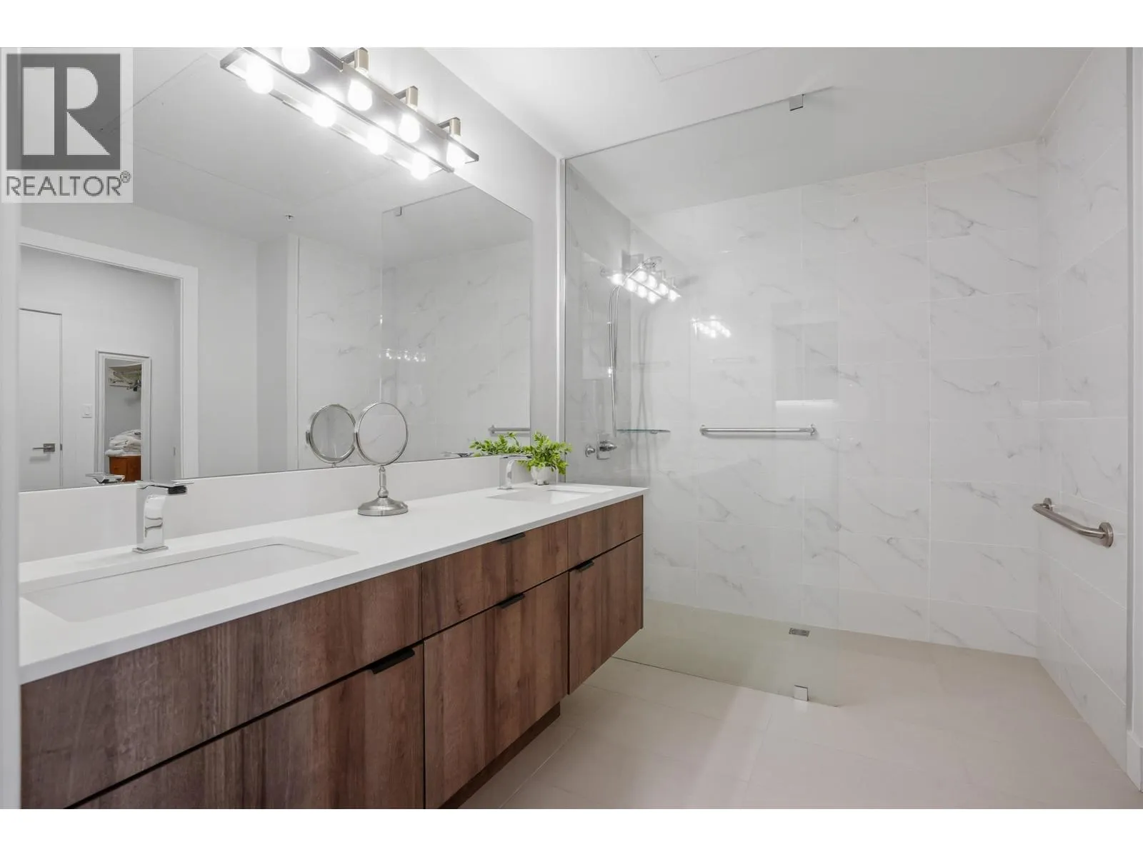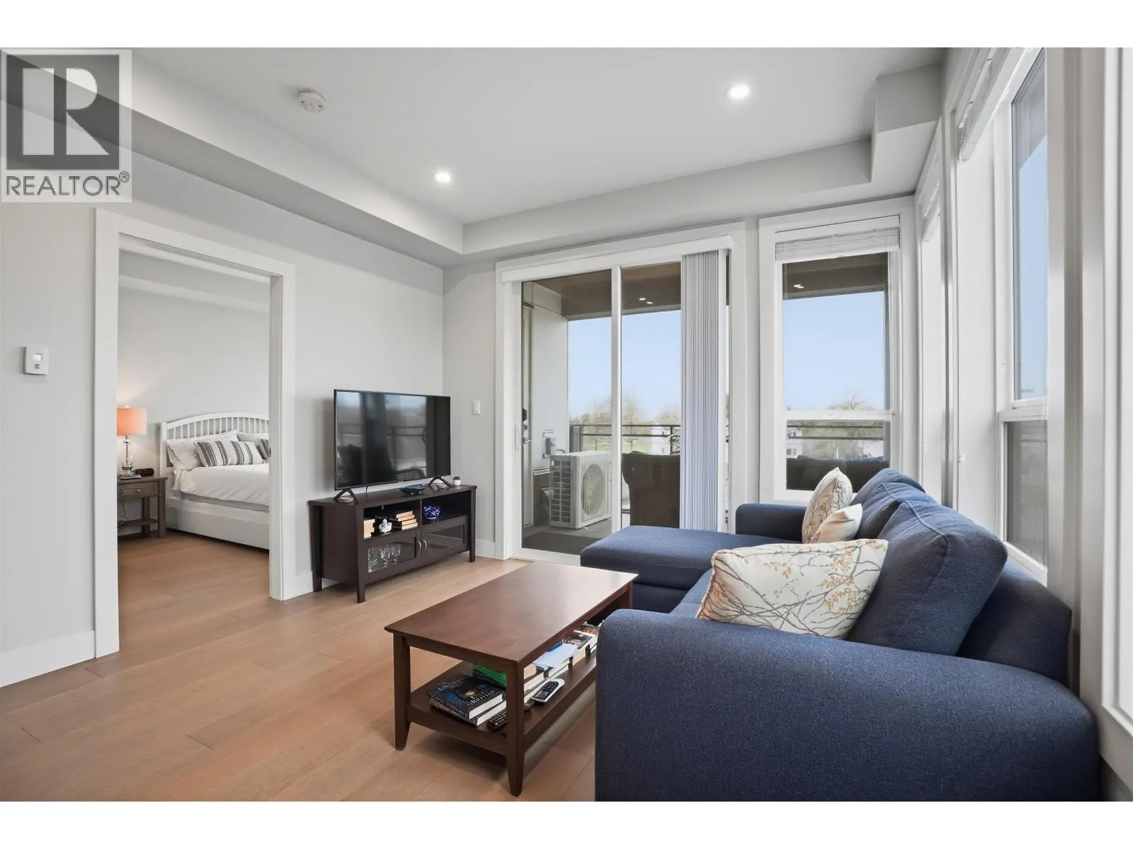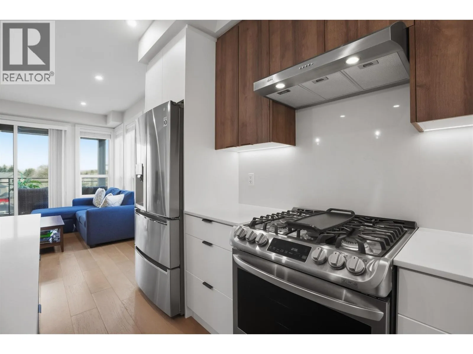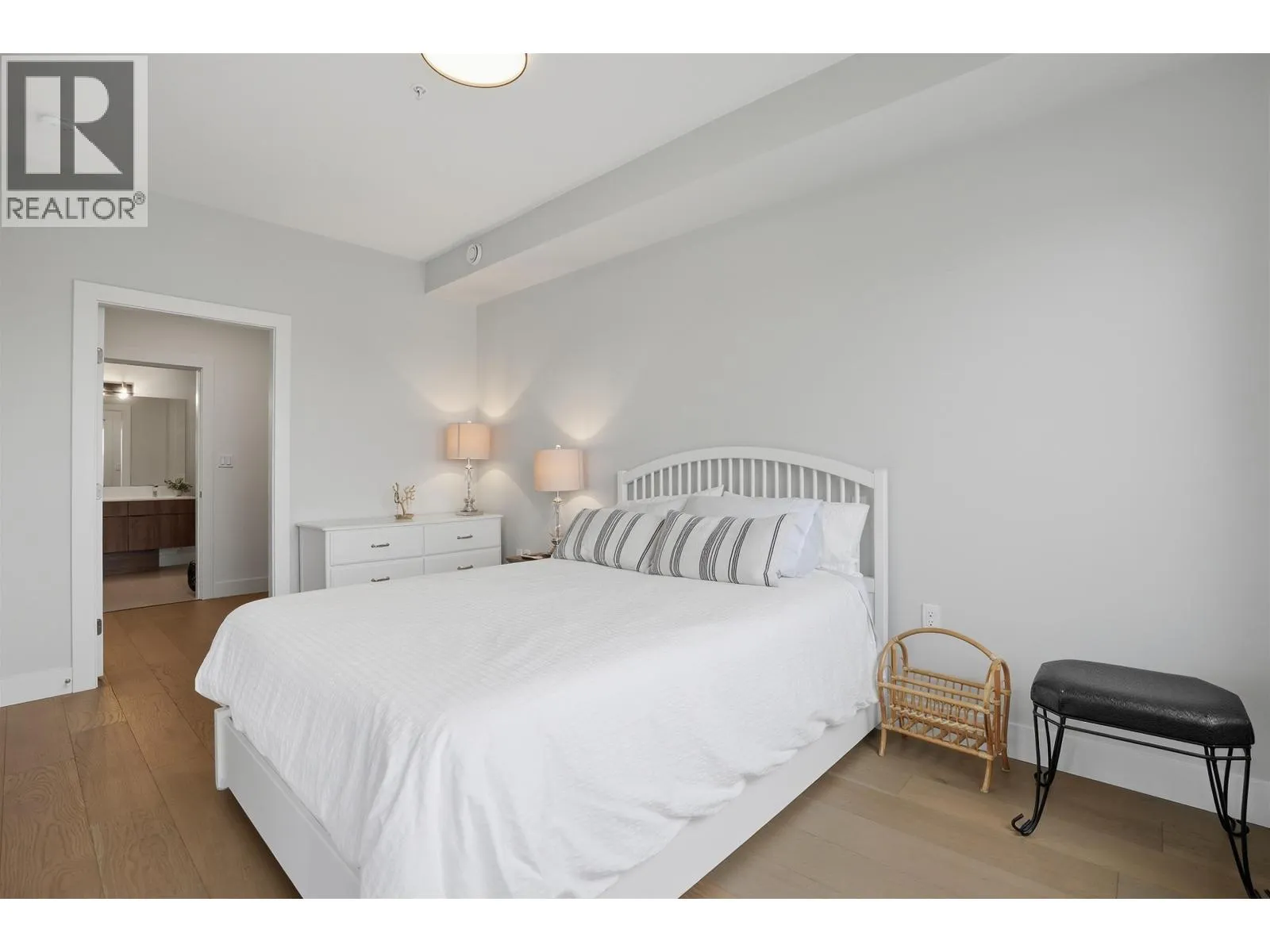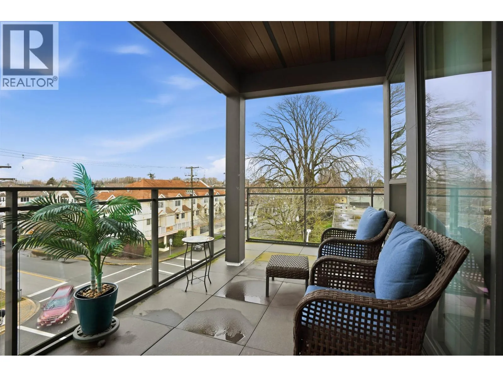 CORNER PENTHOUSE at Delta Green! Premier 55+ living in the heart of Ladner Village, directly across from Memorial Park & the Library. This Bright, private corner home features 9' ceilings, radian in-floor heating, air conditioning & a sun-filled open plan. Sleek gourmet kitchen with quartz countertops & quality finishes is perfect for hosting. Generous in-suite storage adds everyday convenience. Residents enjoy an impressive rooftop deck with garden boxes & BBQ area designed for social gatherings, plus a fitness gym & secure bike room. Steps to shops, dining & all village amenities - the ultimate walkable lifestyle. (id:27476)